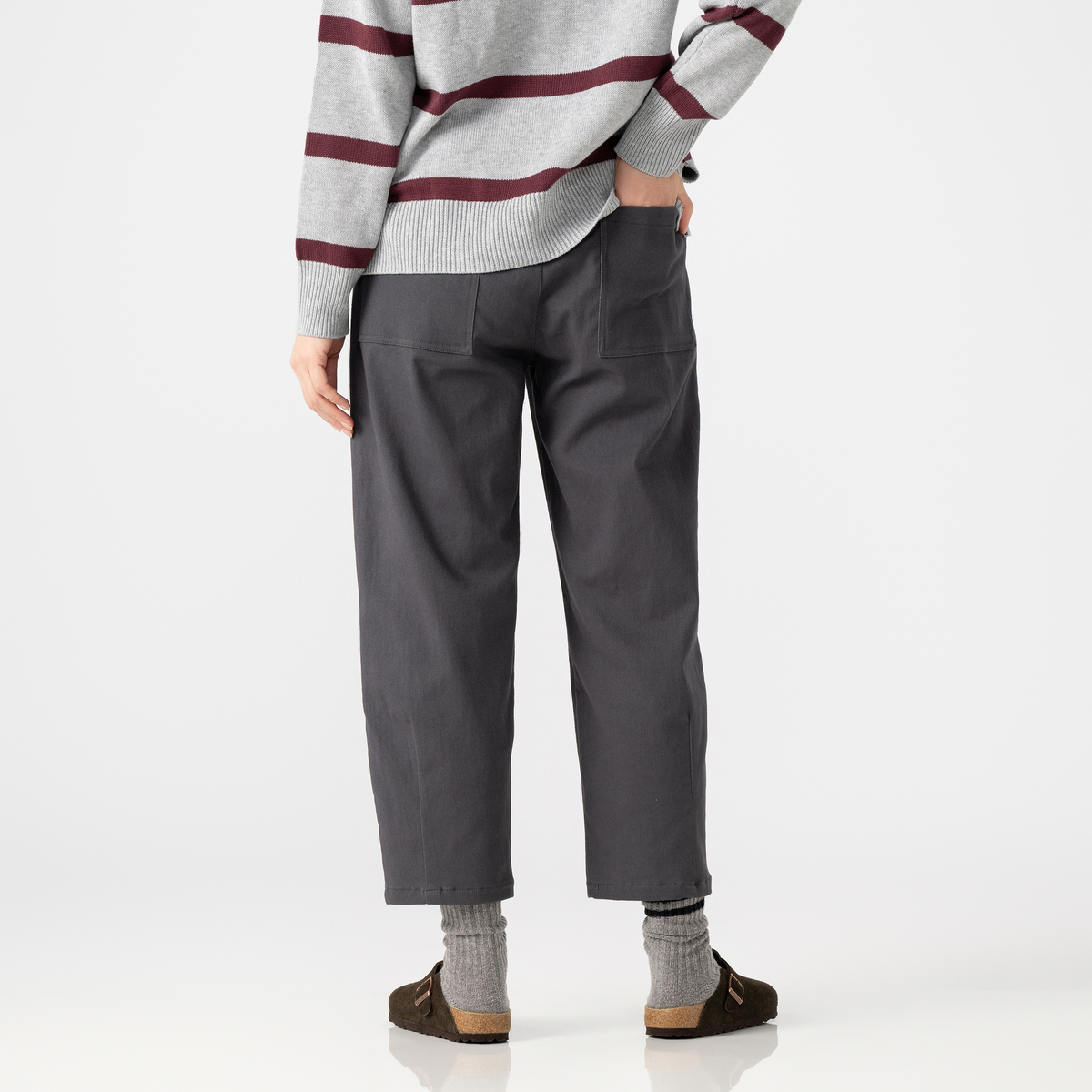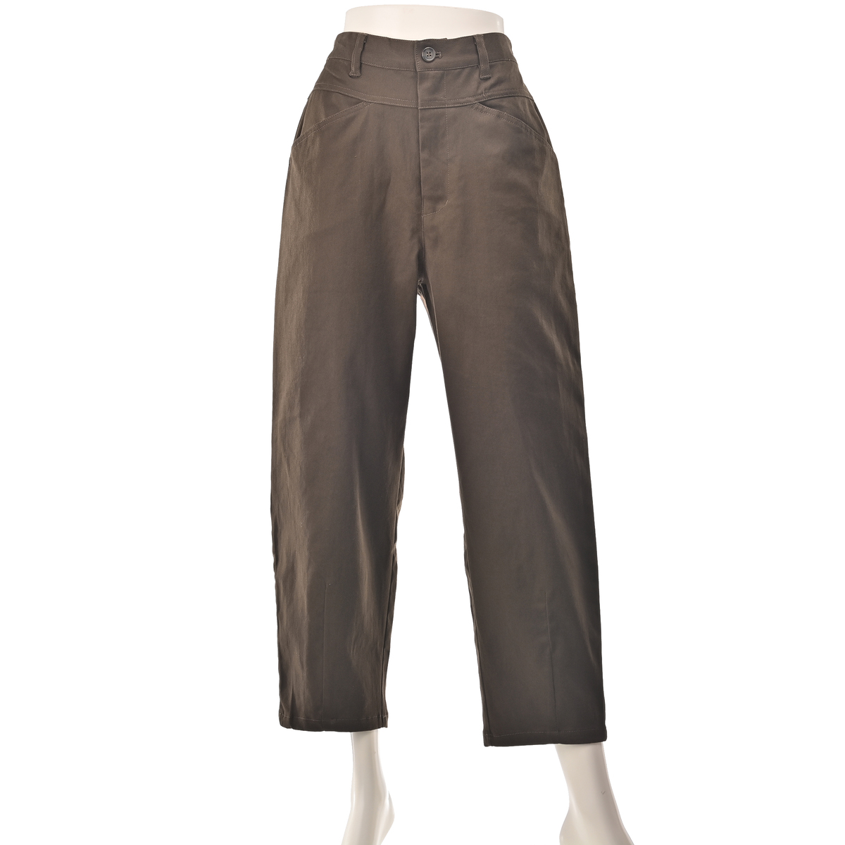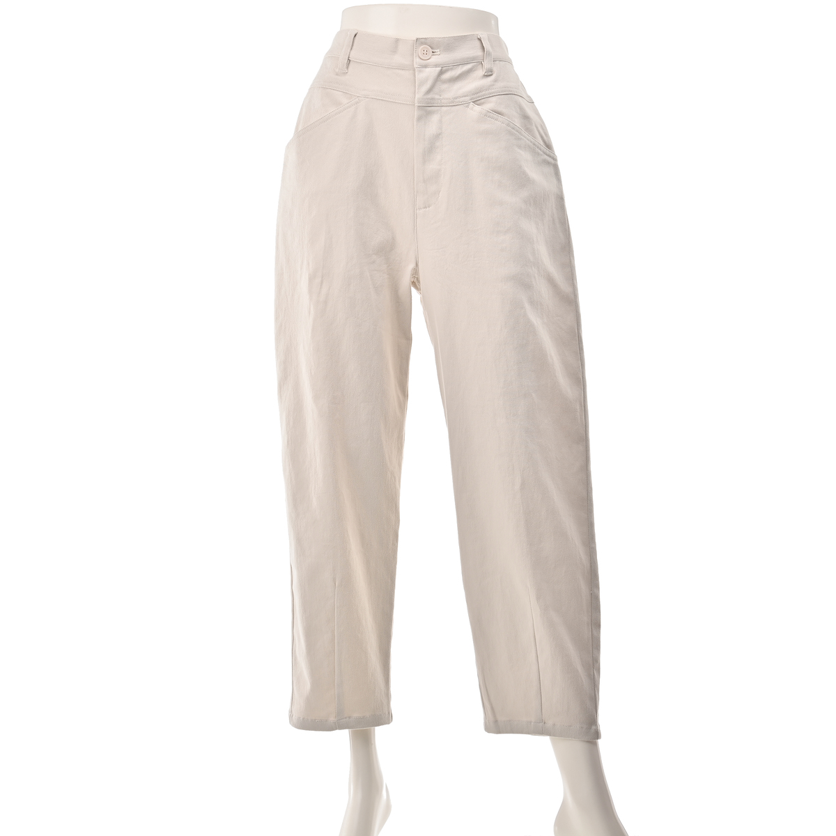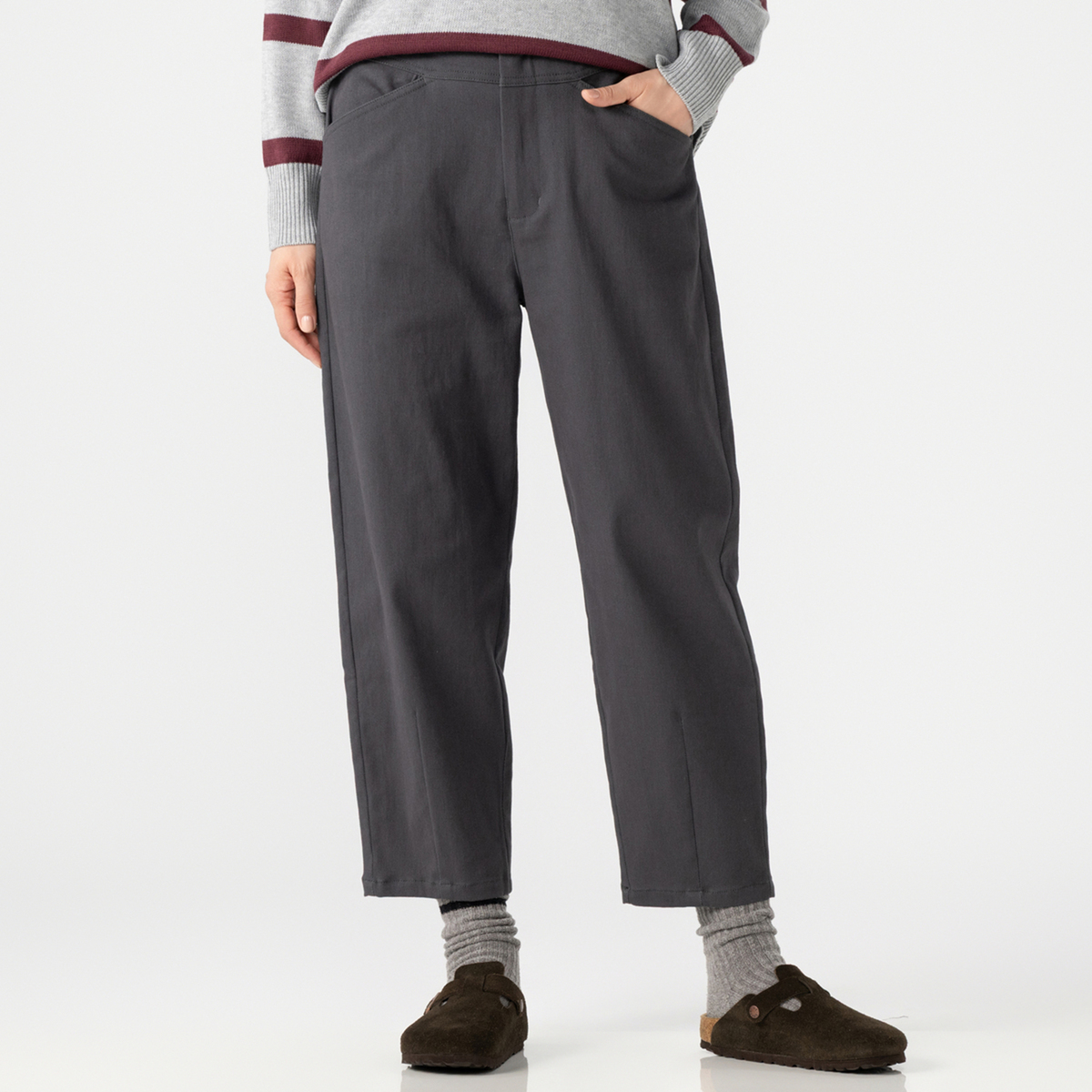 裾に向かって丸みを持たせたクロップドワークパンツ。ボリューム控えめなセミワイドシルエットで腰周りはすっきりとノータック仕上げ。股上は深めでハイウエストスタイルも楽しめます。フロントはジップフライ仕様で着脱もスムーズです