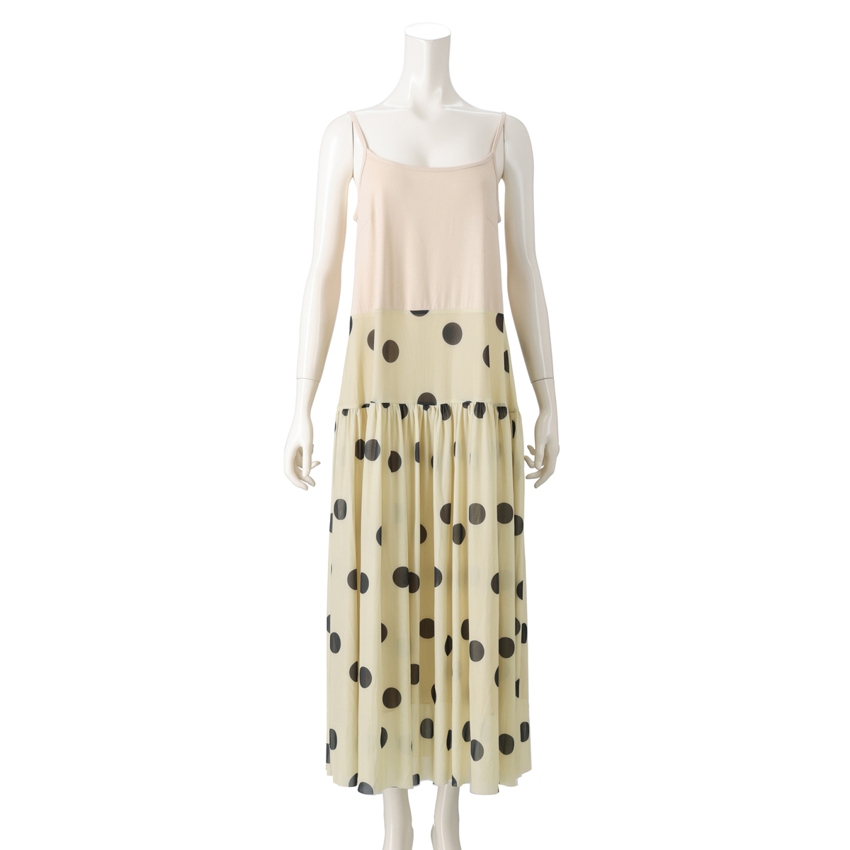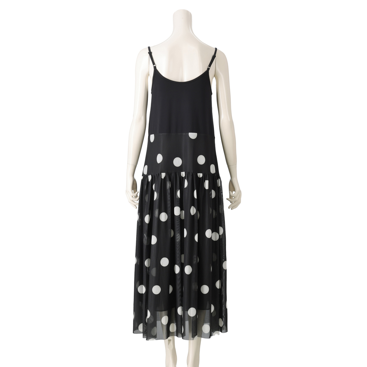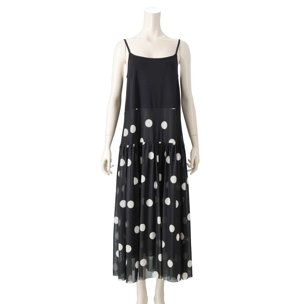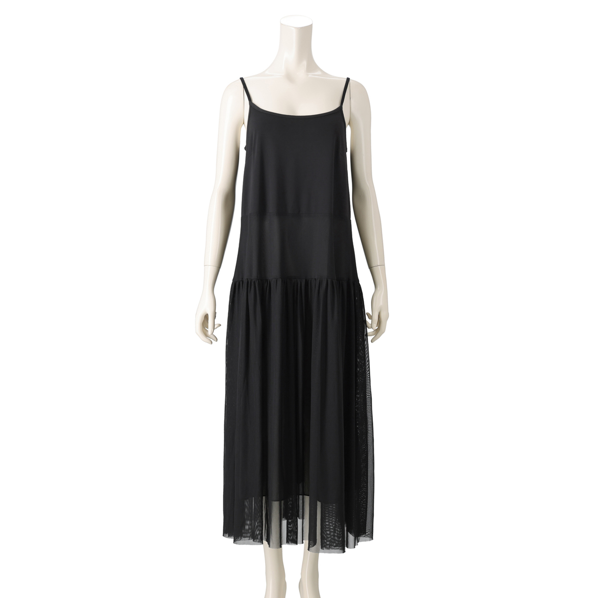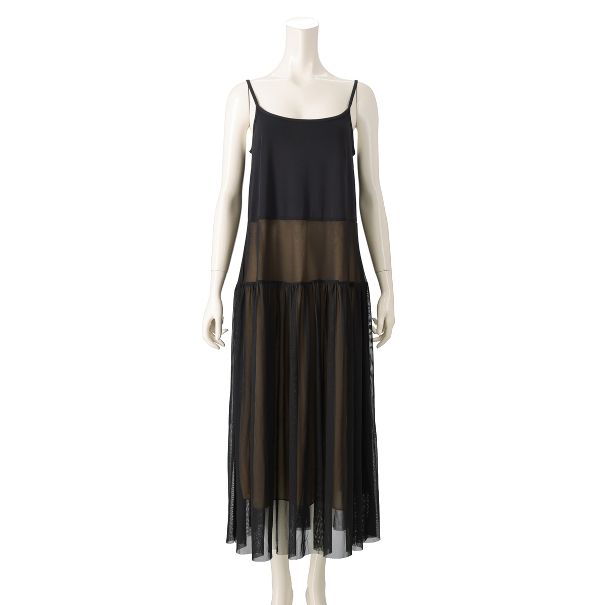 チュール素材で仕立てたキャミソールワンピース。シンプルながら華やかな一枚で、ポリエステルの裏地が付いています
