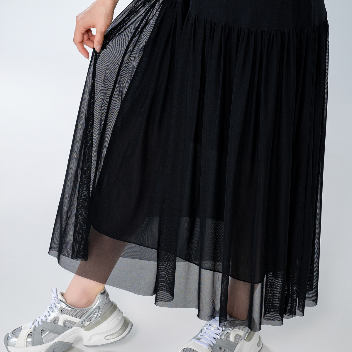 チュールが上質で柔らかく、生地・フォルム・軽さ、全部良かったです。先生のオススメ通り、同時にご紹介があったシアーのトップスと重ね着したら本当にカッコ可愛いかった。優勝です。