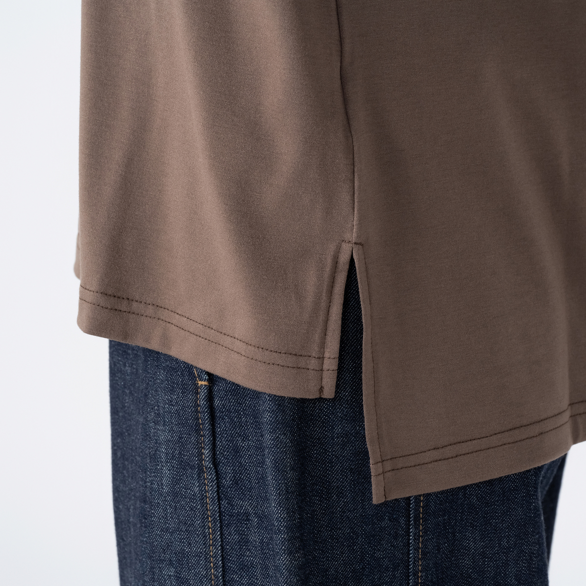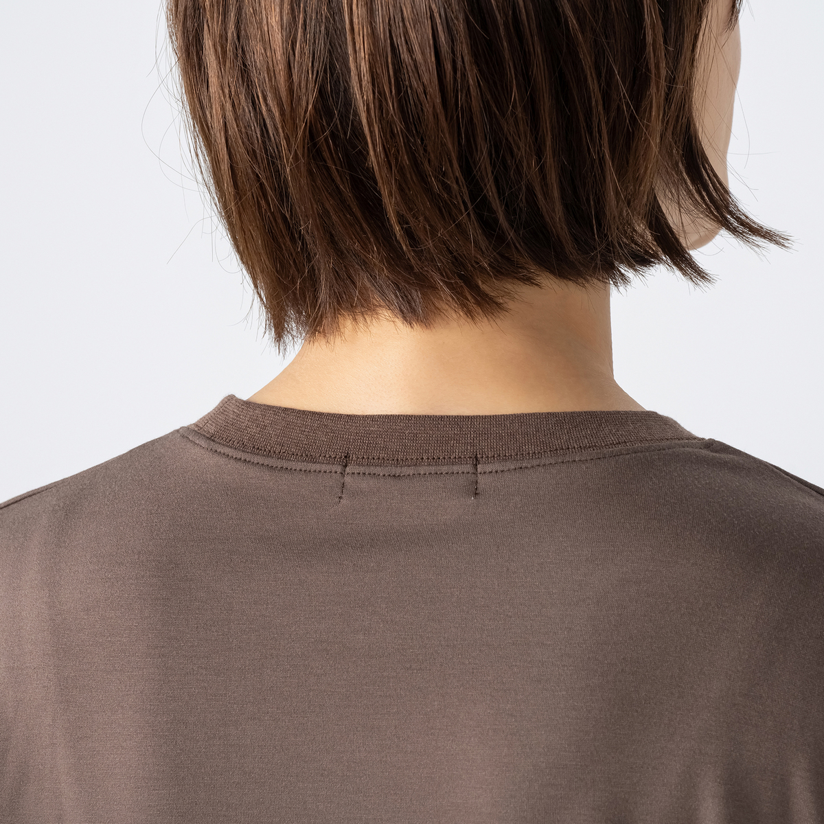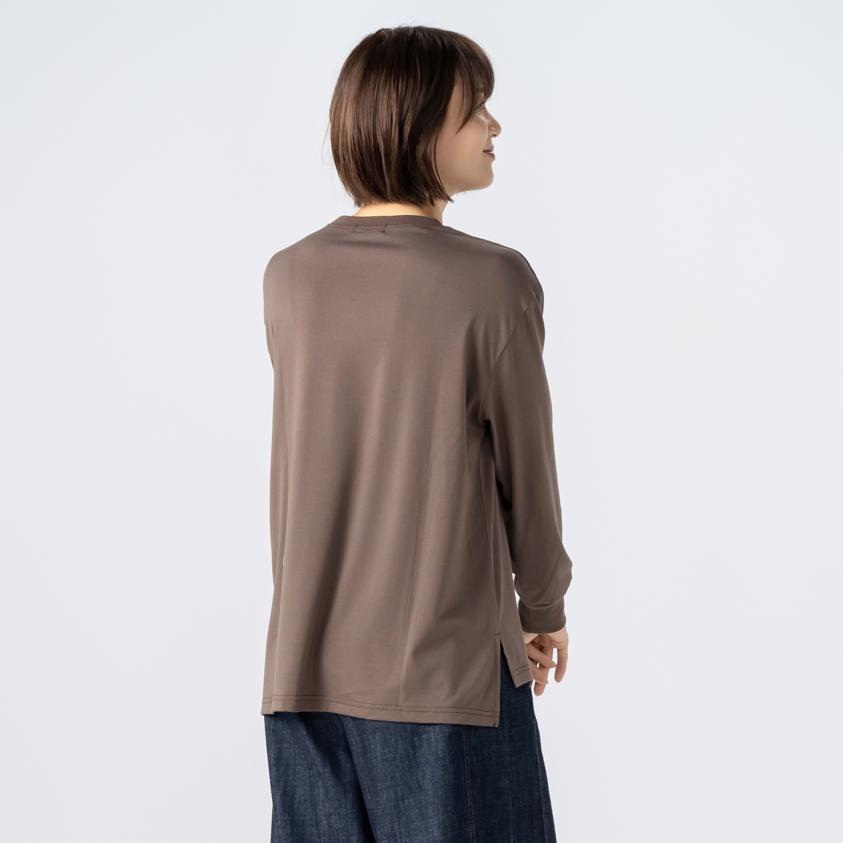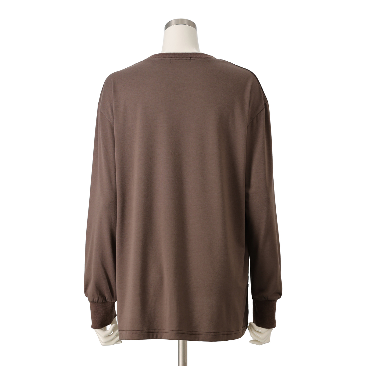 適度にオーバーサイズの長袖プルオーバー。大きすぎない衿ぐりと袖口には、しっかりとしたスパンフライスを使用しました