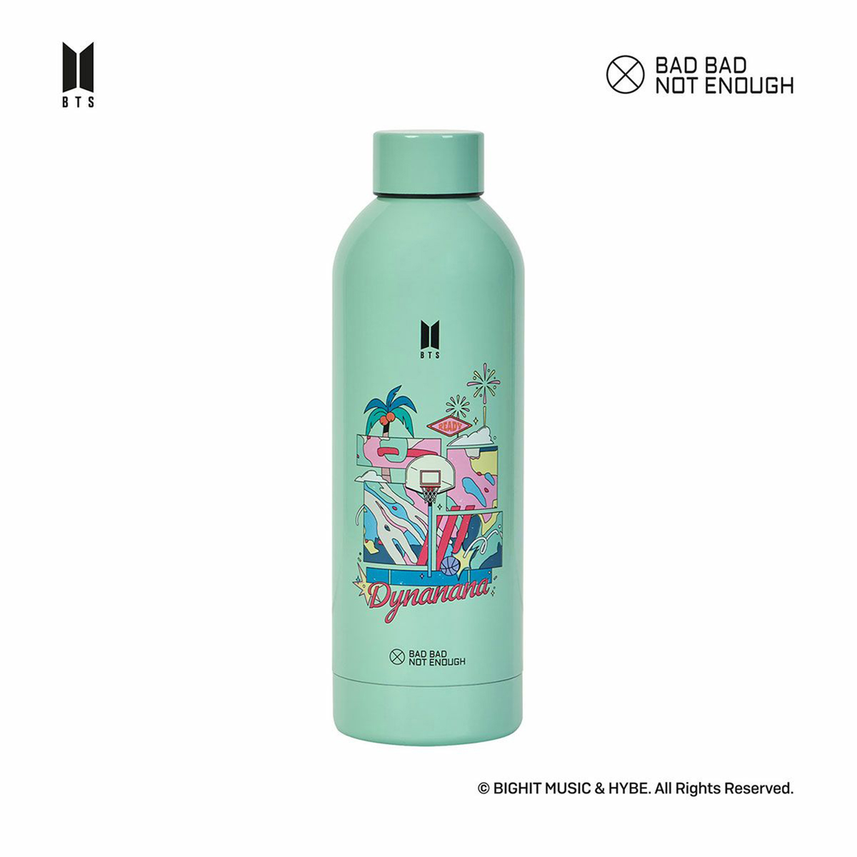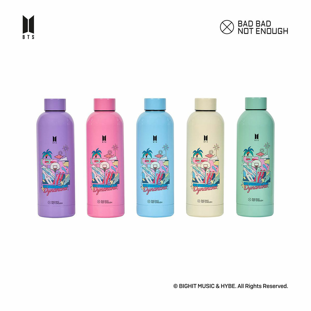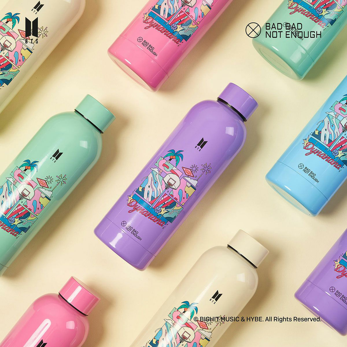 BTS「Dynamite」のミュージックビデオの世界観を再現した、500mlサイズのドリンクボトル。韓国「Bad Bad Not Enough」とのコラボアイテムです