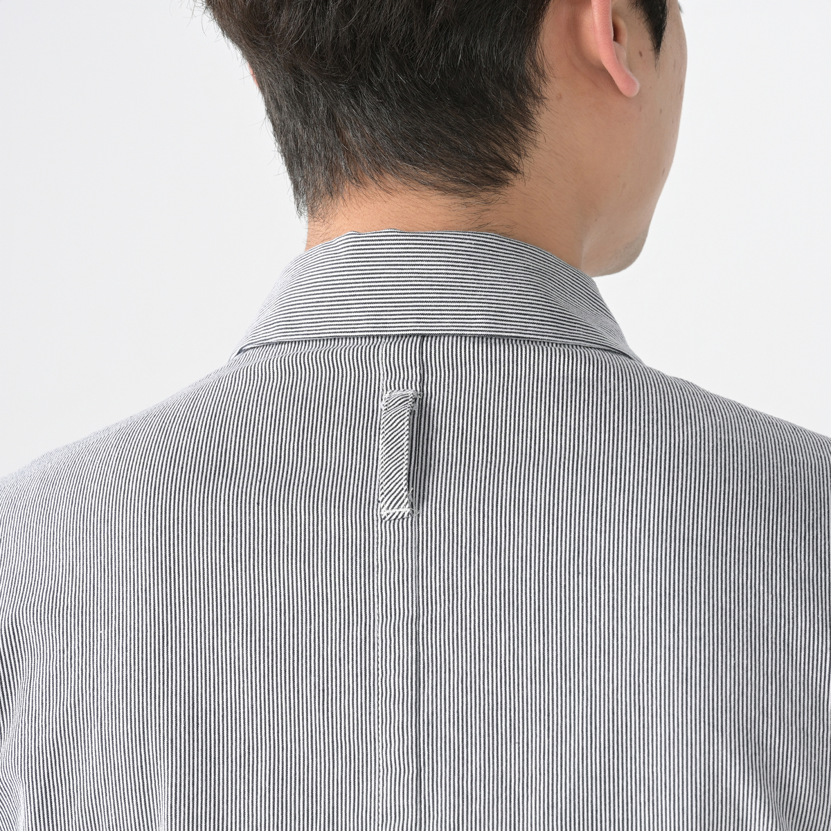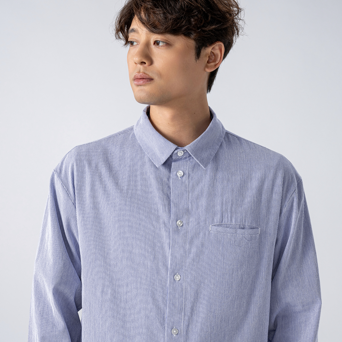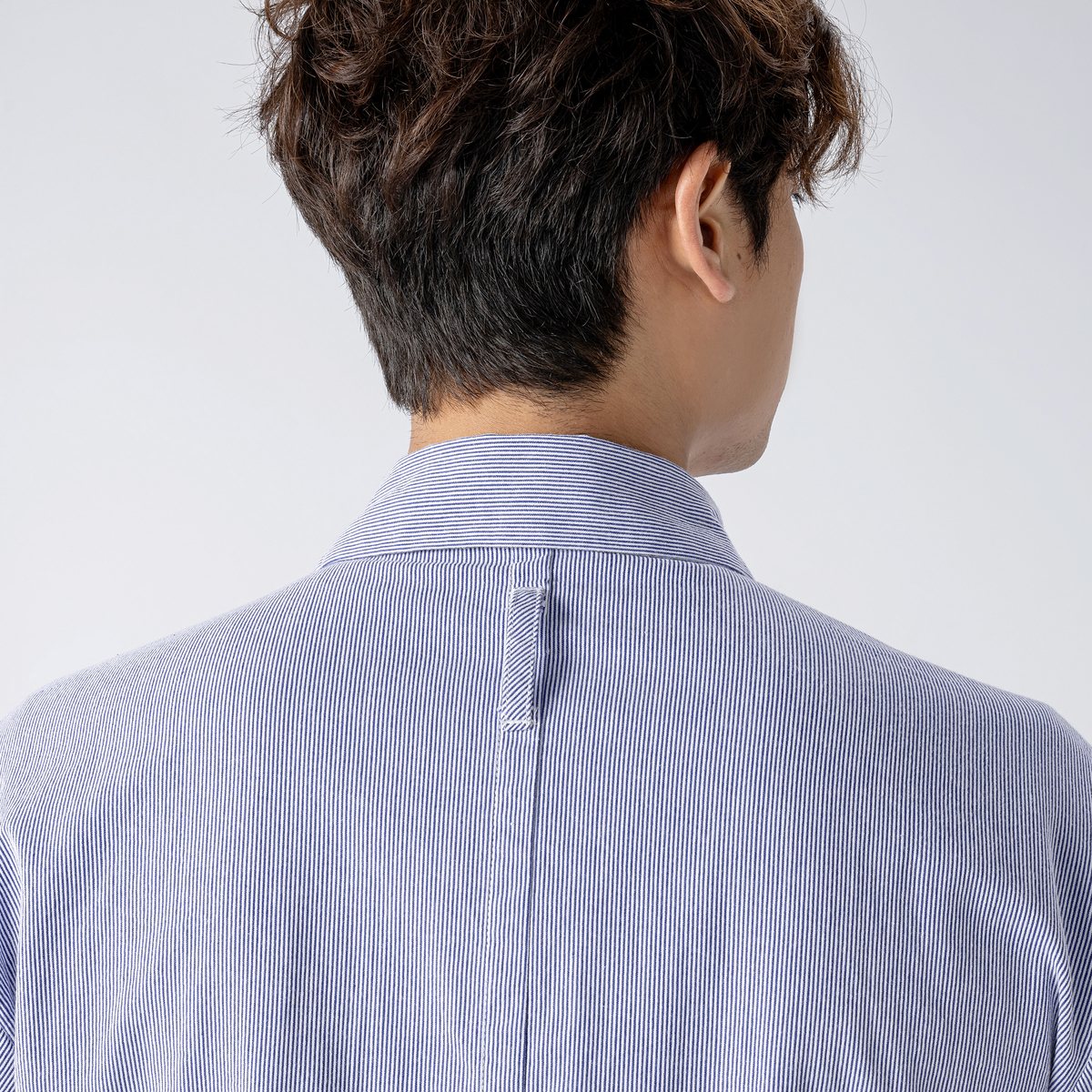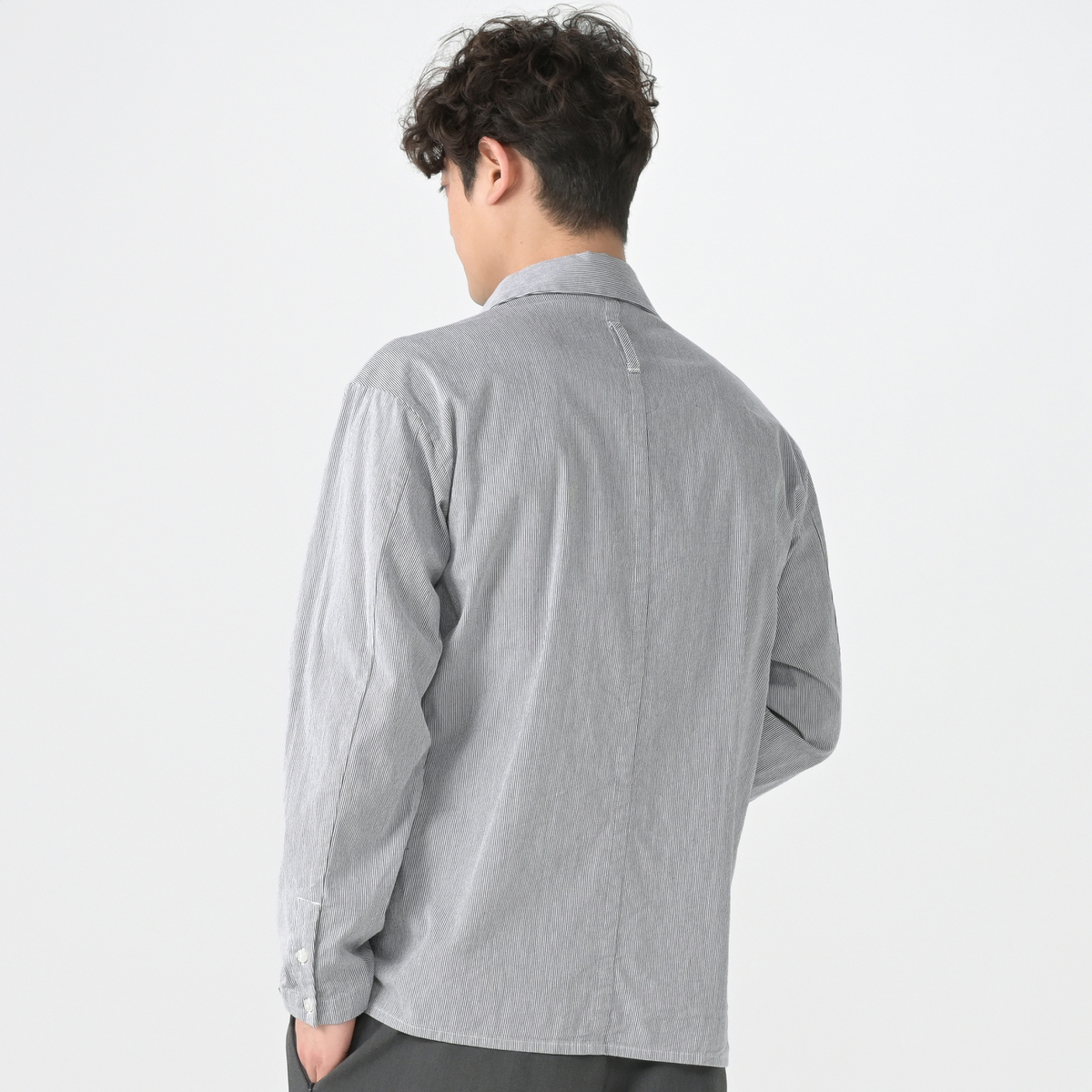 コードレーン素材で仕立てたシャツ。しっかりとした生地で爽やかな着心地です。羽織りとしても使用でき、さまざまなシーンで活躍します