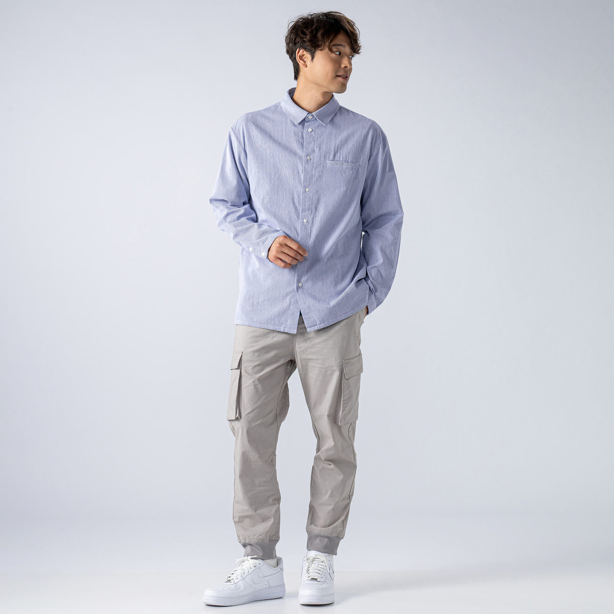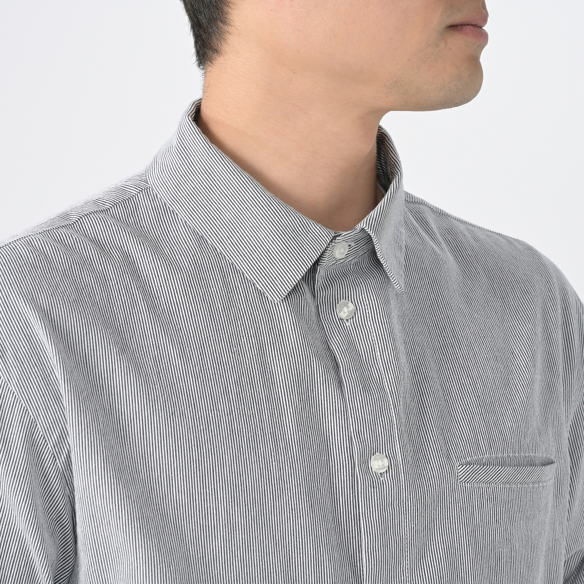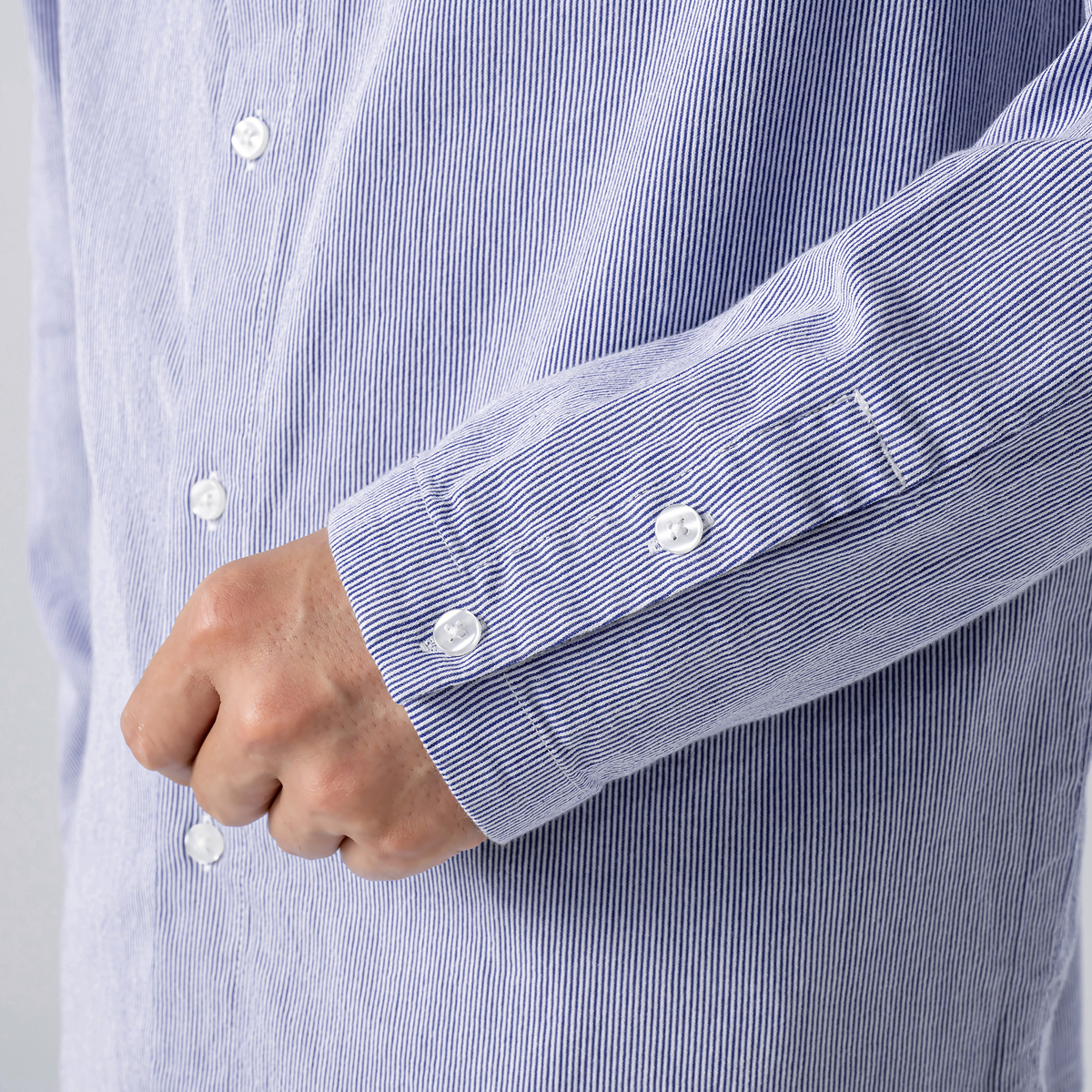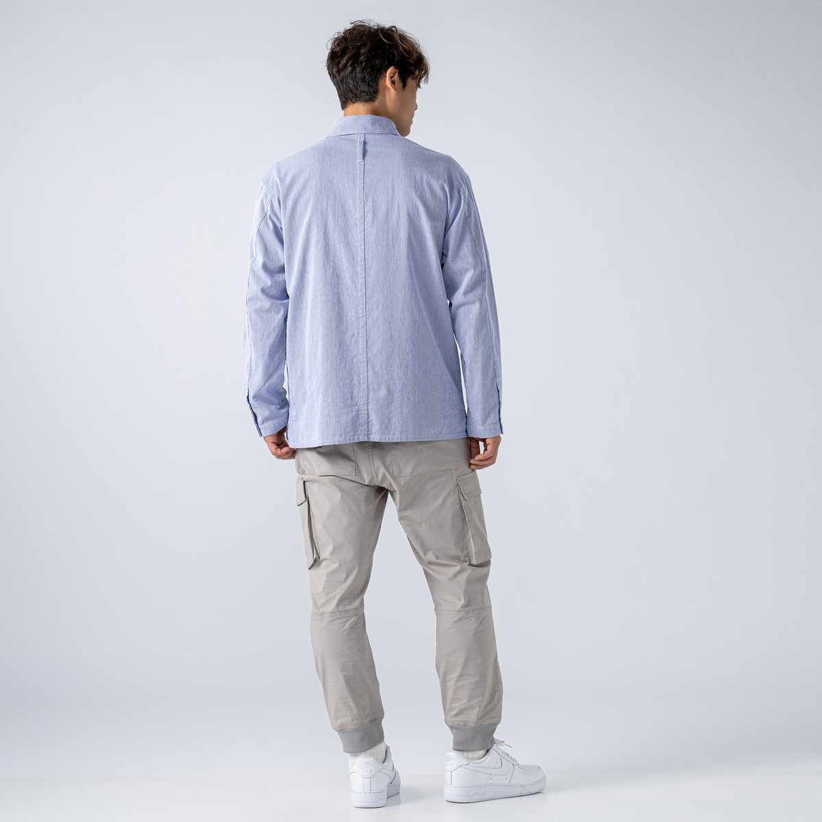 コードレーン素材で仕立てたシャツ。しっかりとした生地で爽やかな着心地です。羽織りとしても使用でき、さまざまなシーンで活躍します