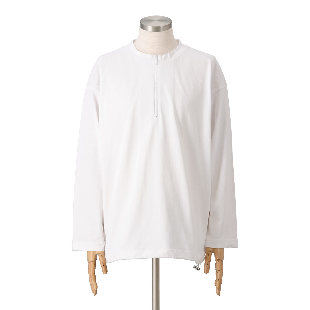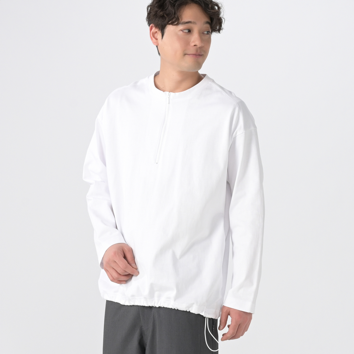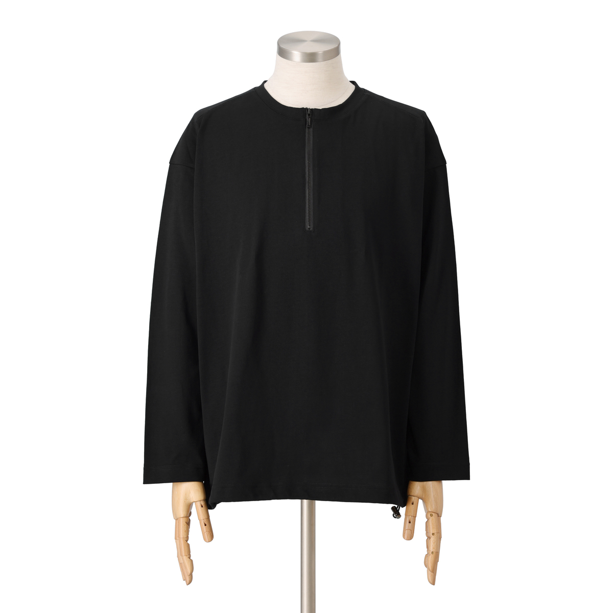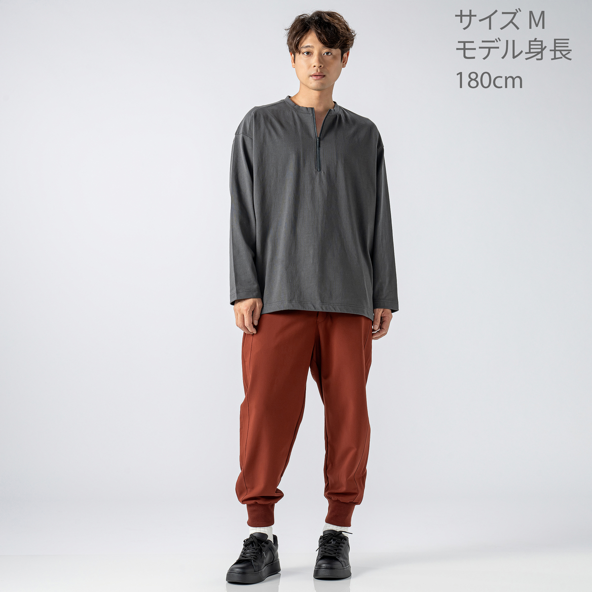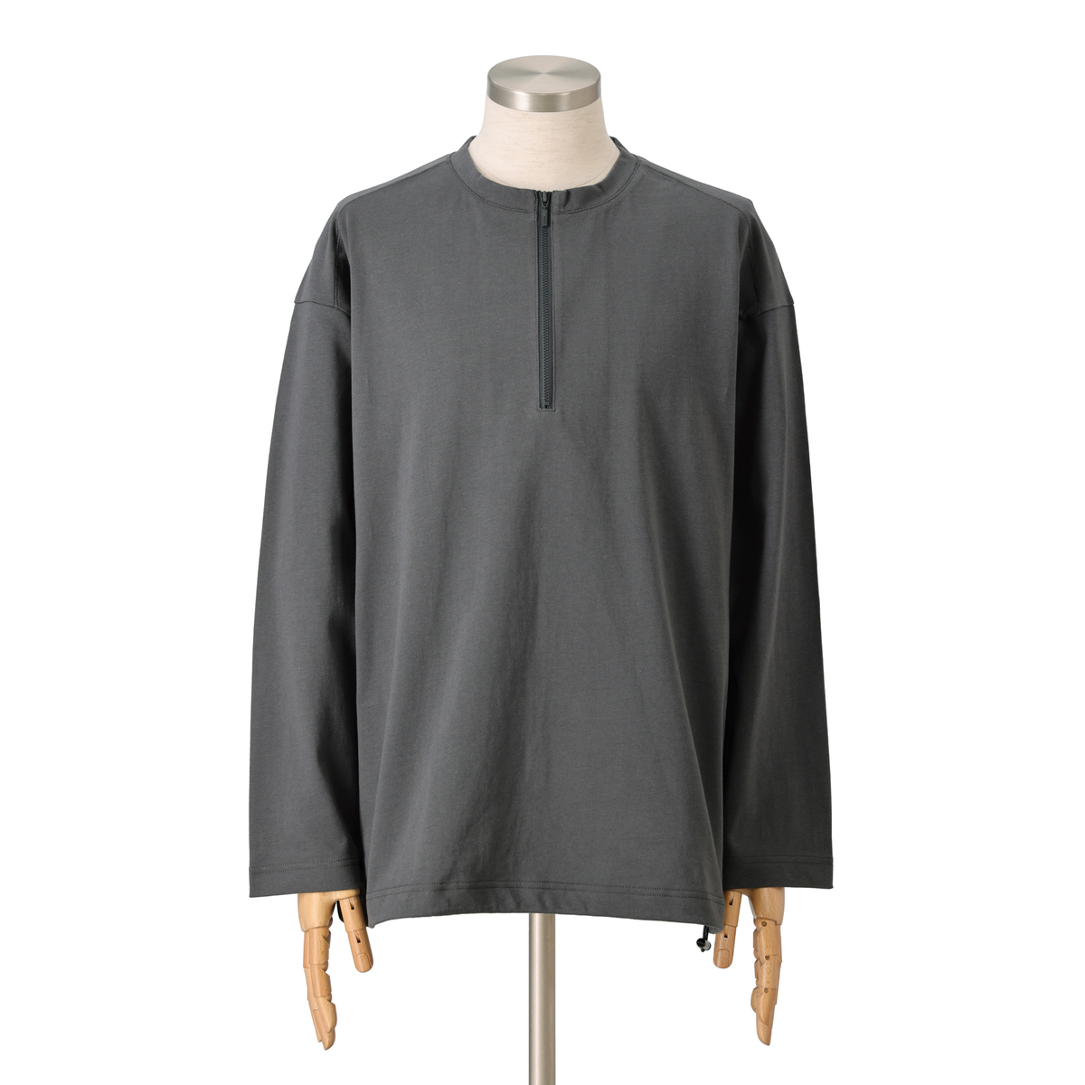 フロントファスナーが印象的な長袖Tシャツ。ヘンリーネックにファスナーをプラスすることで、トレンド感とスポーティーさがあります