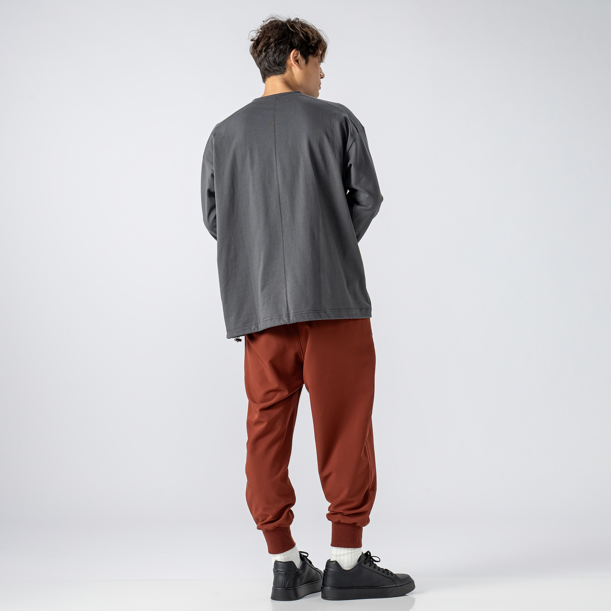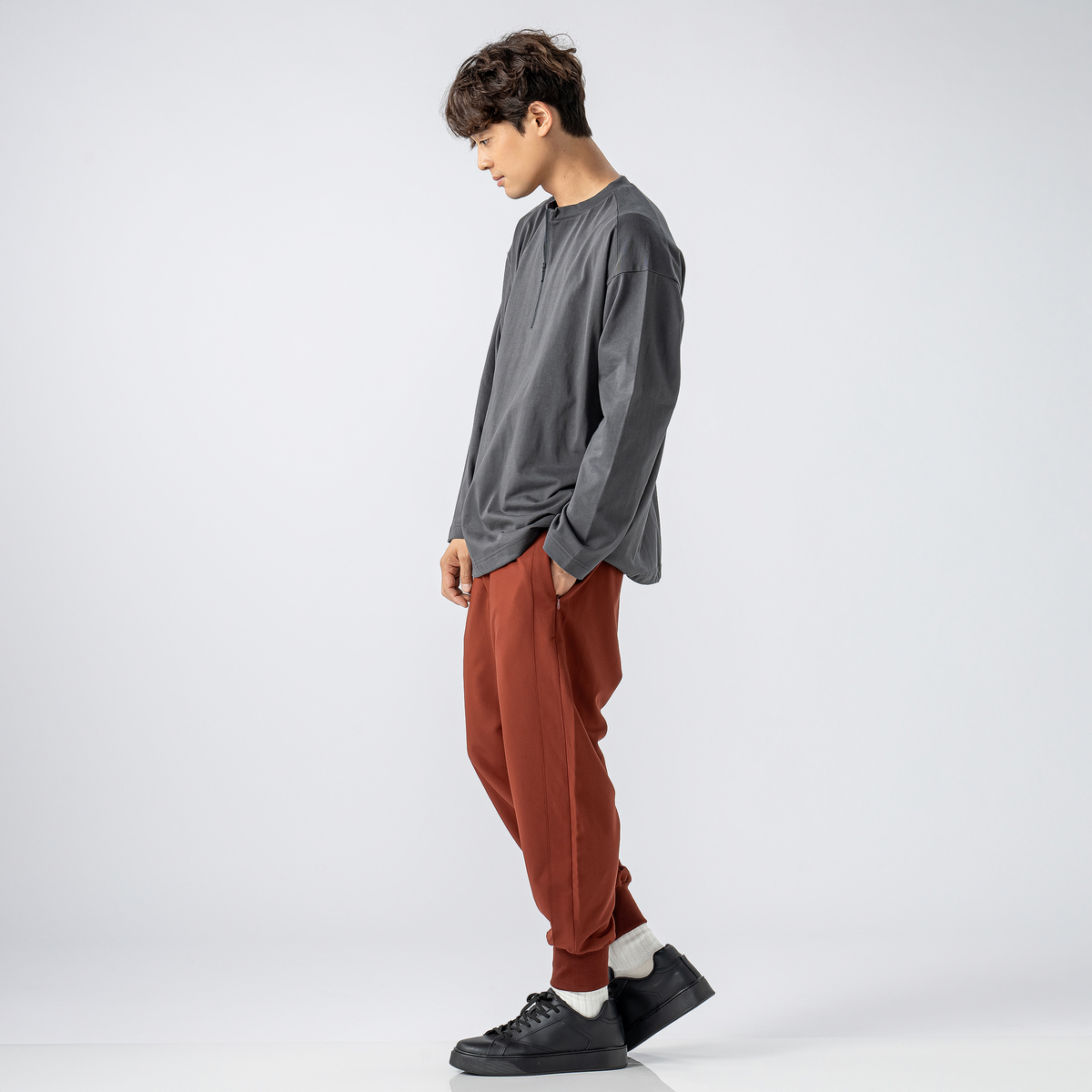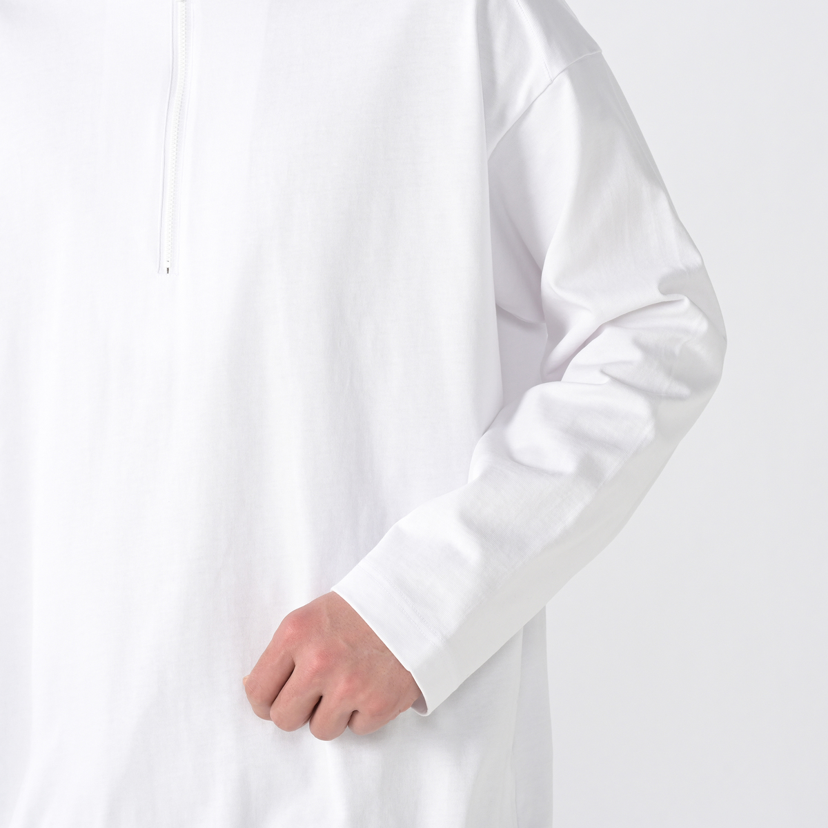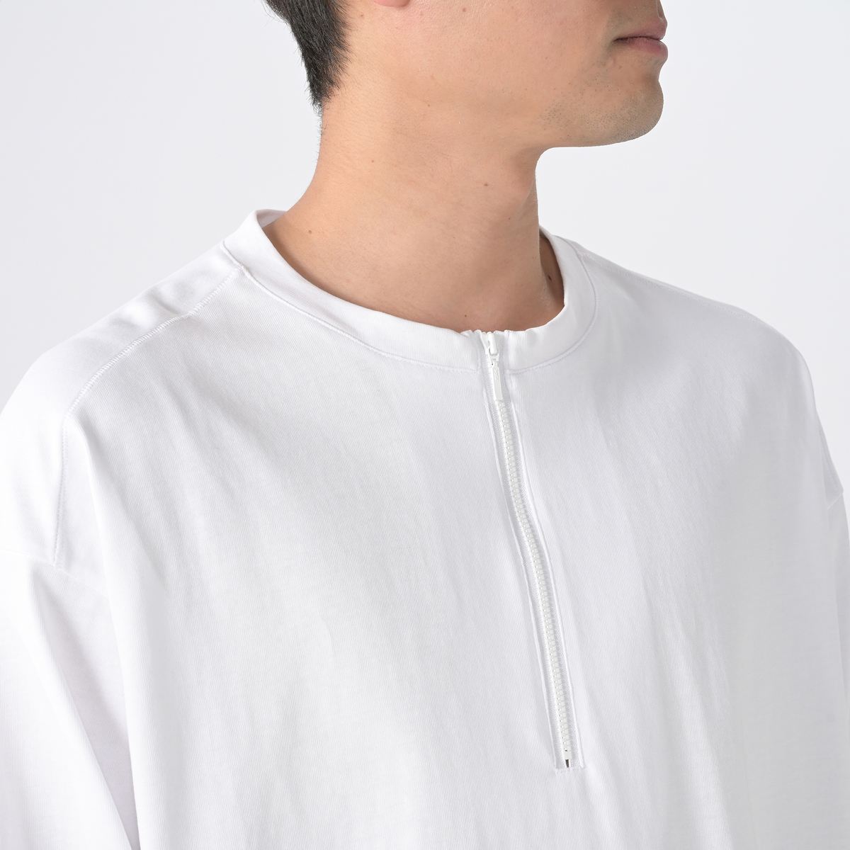 フロントファスナーが印象的な長袖Tシャツ。ヘンリーネックにファスナーをプラスすることで、トレンド感とスポーティーさがあります