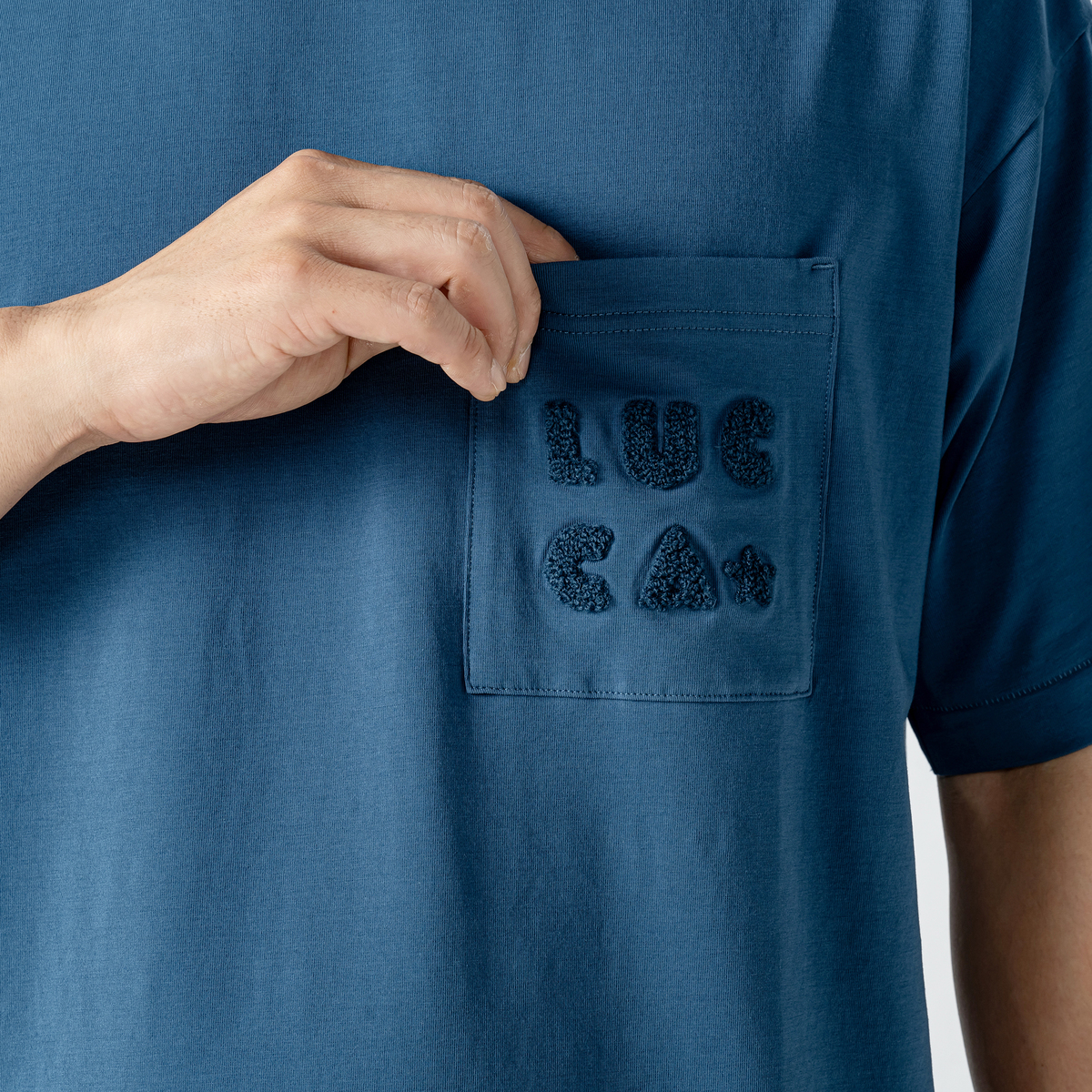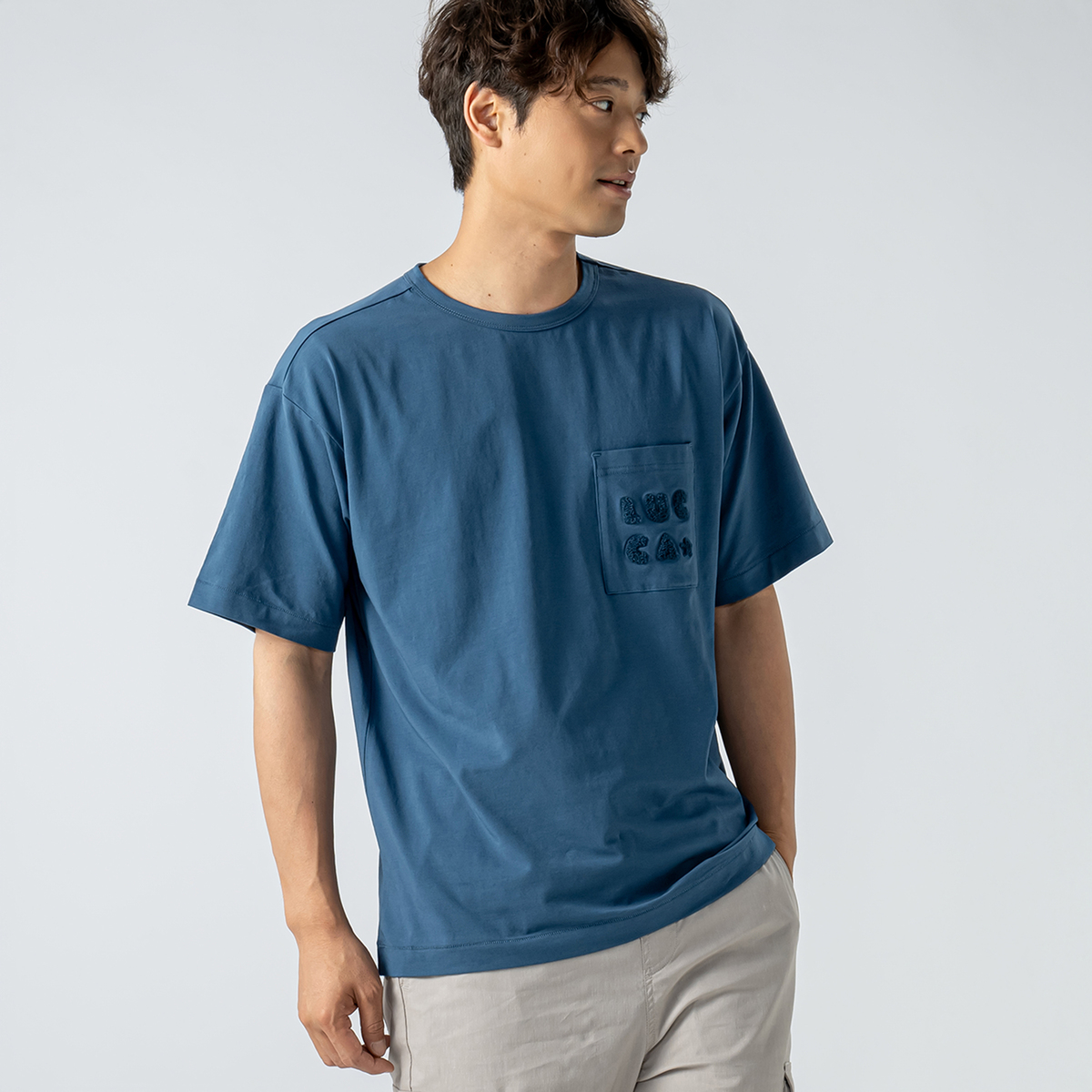 刺繍をあしらったポケットがアクセントの半袖Tシャツ。シンプルながらもディテールにこだわり、日常のスタイルに個性をプラスします