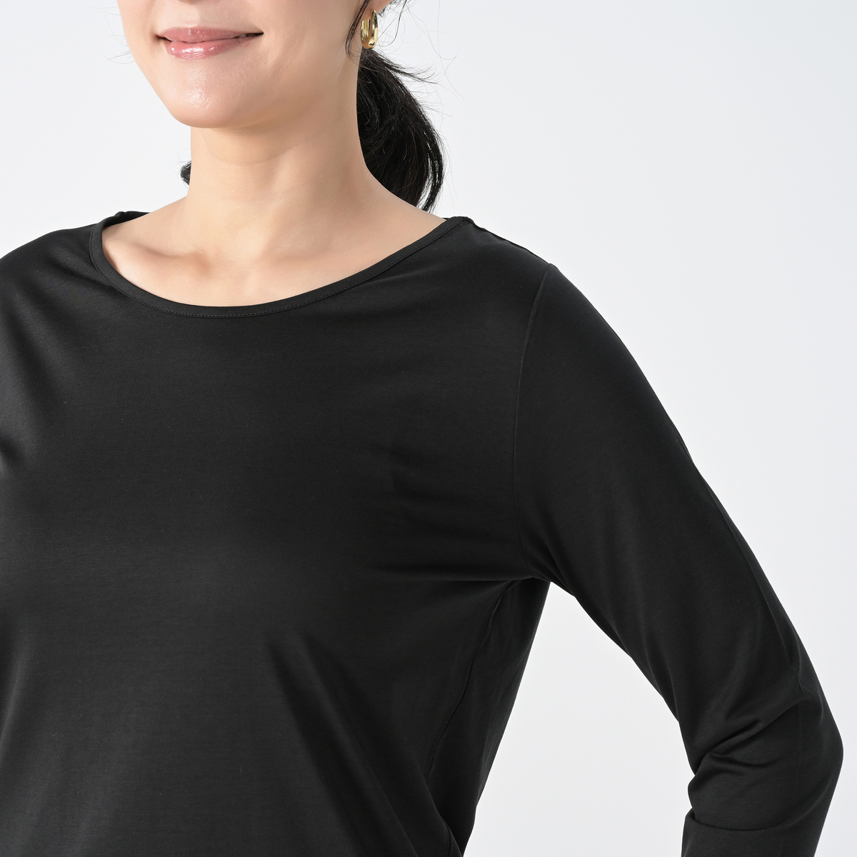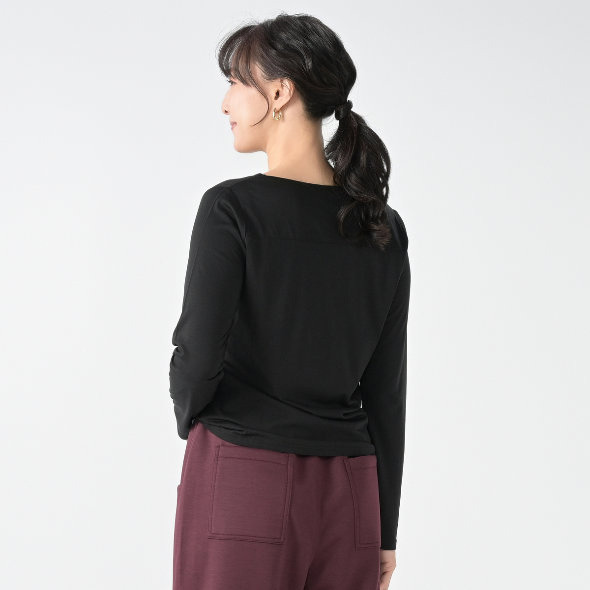 様々なコーデに活躍してくれる、定番のプルオーバー。綿レーヨンの混紡で、肌触りが良い素材をセレクトしています