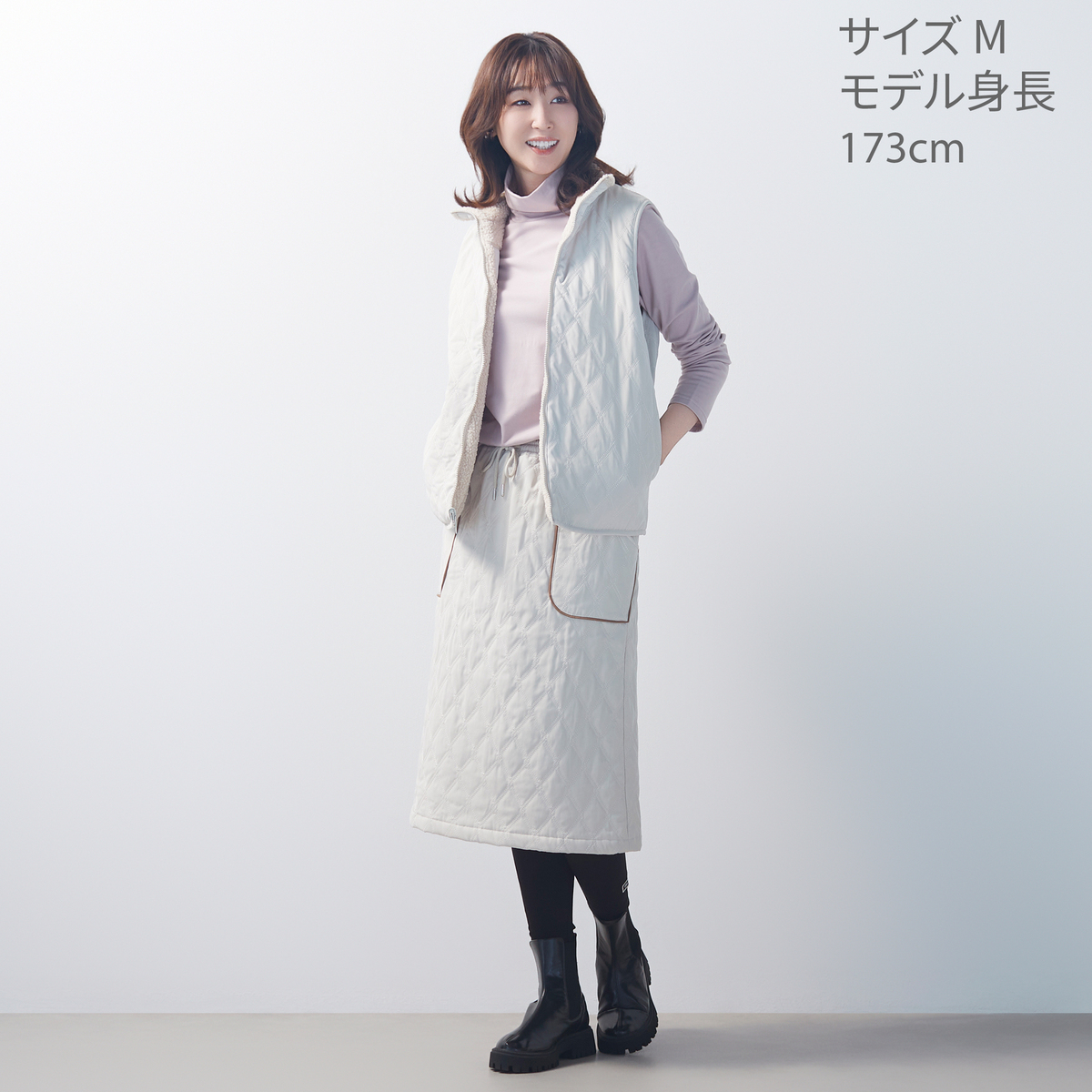 「爆熱」生地を使ったレギンス。保温性に優れ、抗ピリング性で毛玉ができにくく、外側はつるっと上品、内側は微起毛でやわらかな肌ざわり。綿混ならではの心地よさに加え、光を吸収して熱に変換する特殊素材が身体の放射熱を保ち、暖かさをキープします