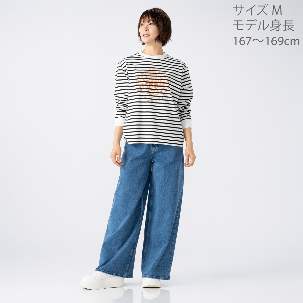 [商品寸法(ヌード)cm] サイズ バスト 着丈 S : 102(72〜80) 59.5 M : 106(79〜87) 59.5 L : 110(86〜94) 59.5 LL : 116(93〜101) 60.5 3L : 122(100〜108)60.5 サイズ 裄丈 S : 76 M : 76.5 L : 77 LL : 78.5 3L : 79 [素材] 本体:綿 100% リブ部分:綿 95% ポリウレタン 5% [お手入れ] 洗濯機洗い可 [注意事項] ※商品寸法の誤差は多少発生します。ご了承下さい ※無蛍光洗剤使用 ※洗濯ネット使用 ※あて布使用 ※プリント部分アイロン禁止 ※着用時の摩擦(特に雨や汗により湿った状態での摩擦)で他の衣料やバッグ、椅子やソファー、車のシート等に色が移る場合がありますのでご注意下さい。万が一移染した場合は、移染した衣類等の早めのお手 入れをお願いします。また、濃色は水洗いで色落ちや色移りの恐れがありますので淡色との洗濯は避け、洗濯後は速やかに干して下さい。長時間のつけ置き洗いや濡れたままの重ね置きはお避け下さい ※この商品は長時間日光に当たり続けると色あせの恐れがあります。ご注意下さい。洗濯後は必ず陰干しして下さい ※素材の特性上、長時間の摩擦や揉み作用等で毛玉や毛羽立ちが起きやすいのでご注意下さい。目立つ毛玉はハサミや毛玉取り器で取り除くなどし、飛び出した毛玉や毛羽を引っ張ったりしないで下さい ※着用や洗濯の繰り返しで、プリント部分がひび割れたり脱落したりすることがあります。また、保管の際はプリント部分にものが触れないようにご注意下さい 【中国製】