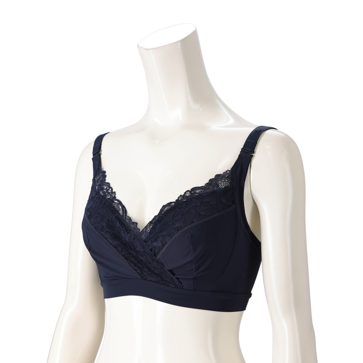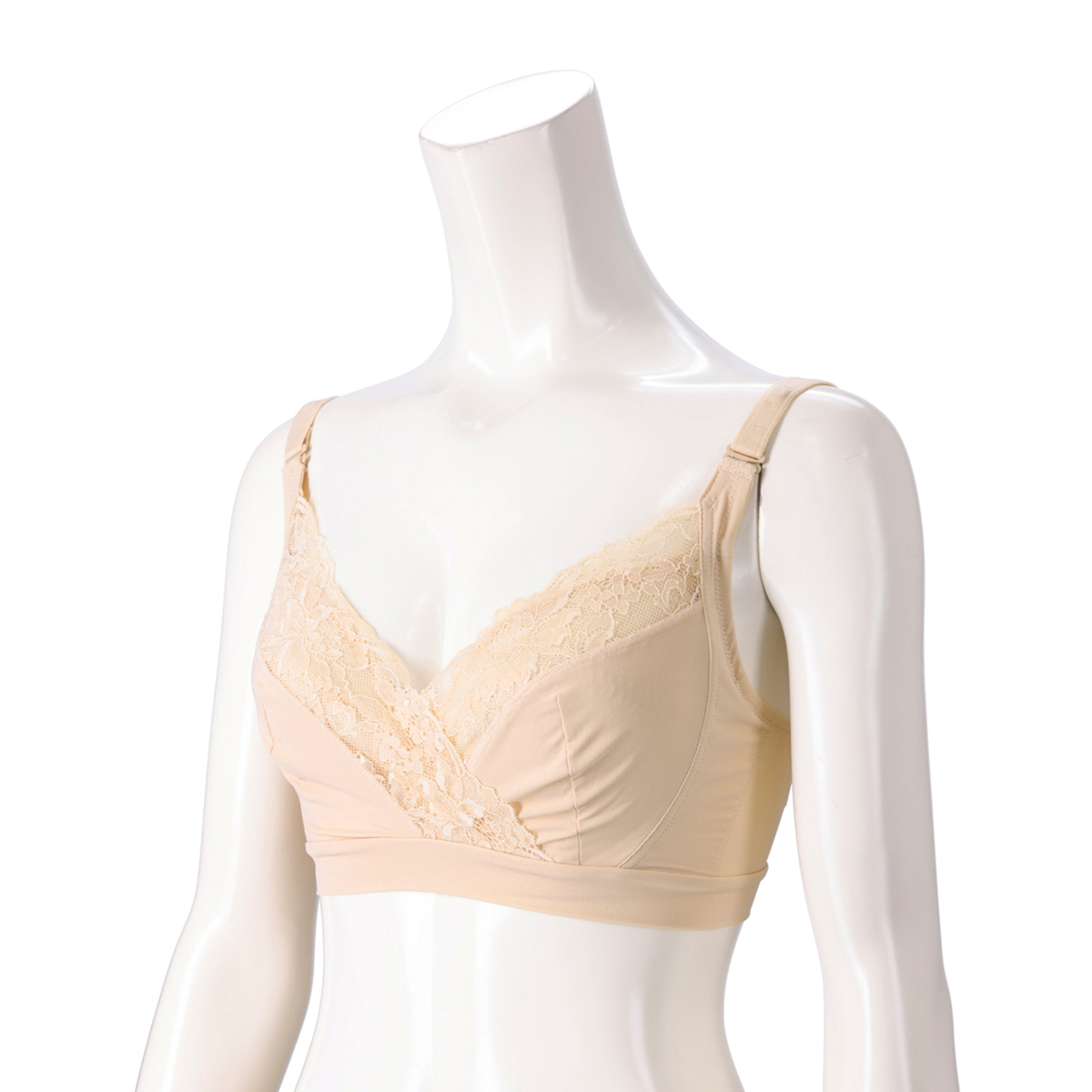 ノンワイヤーで後ろにホックもないため、肌当たりや引き締め感がソフト。長時間の着用やリラックスシーンでも使いやすく、足元から穿きあげるので、簡単に着脱できます。生地はよく伸びてフィットし、サラリとしていて長時間着けても心地良いです