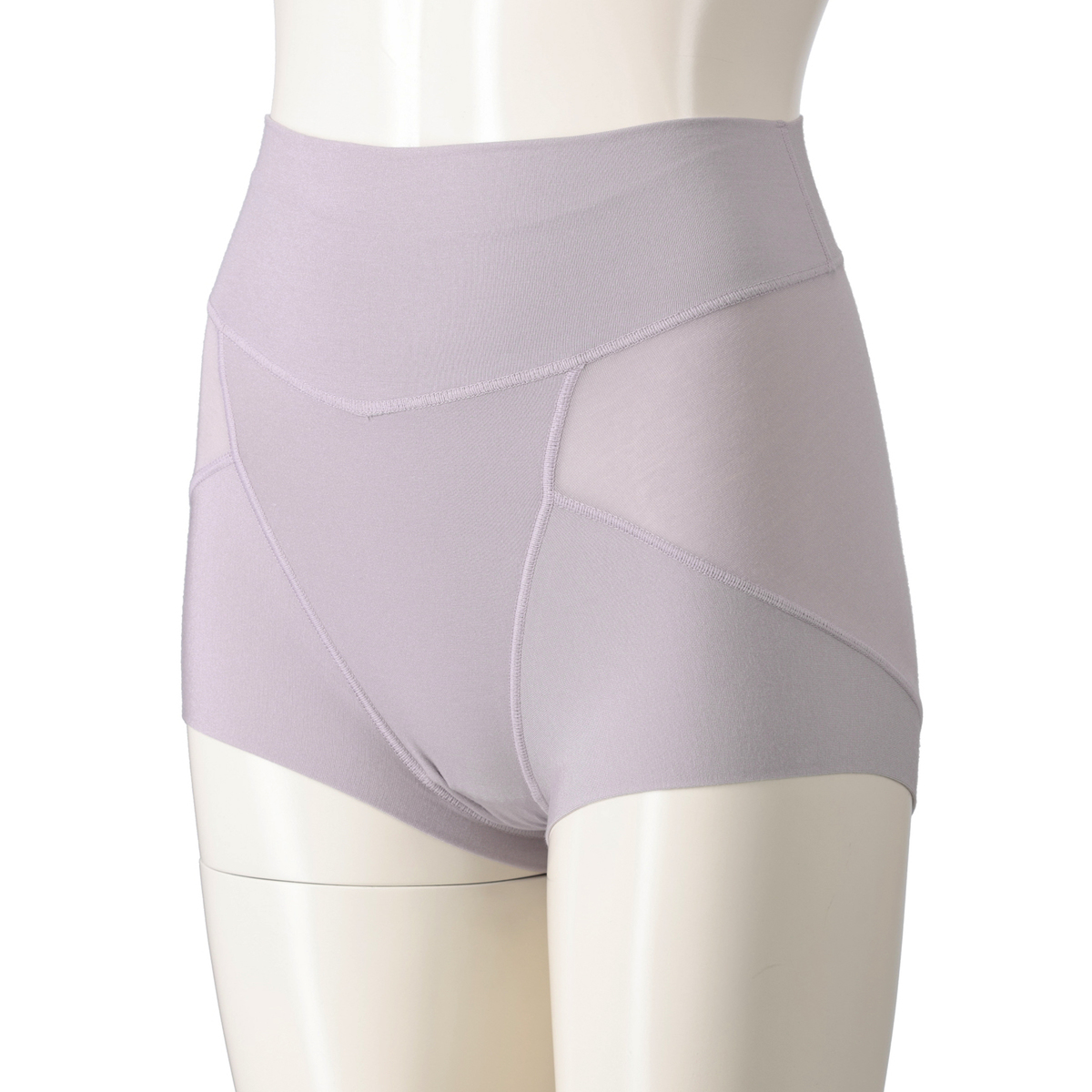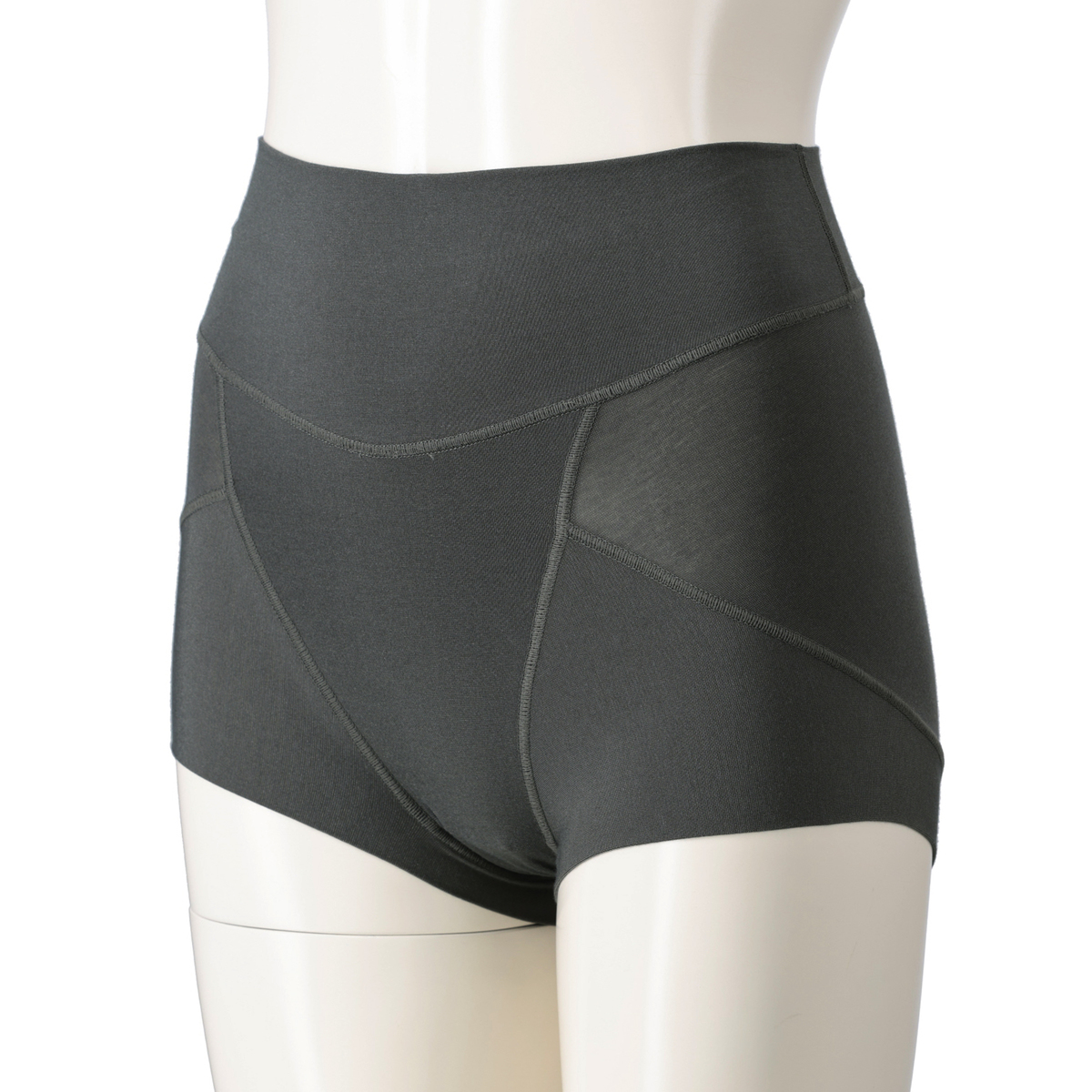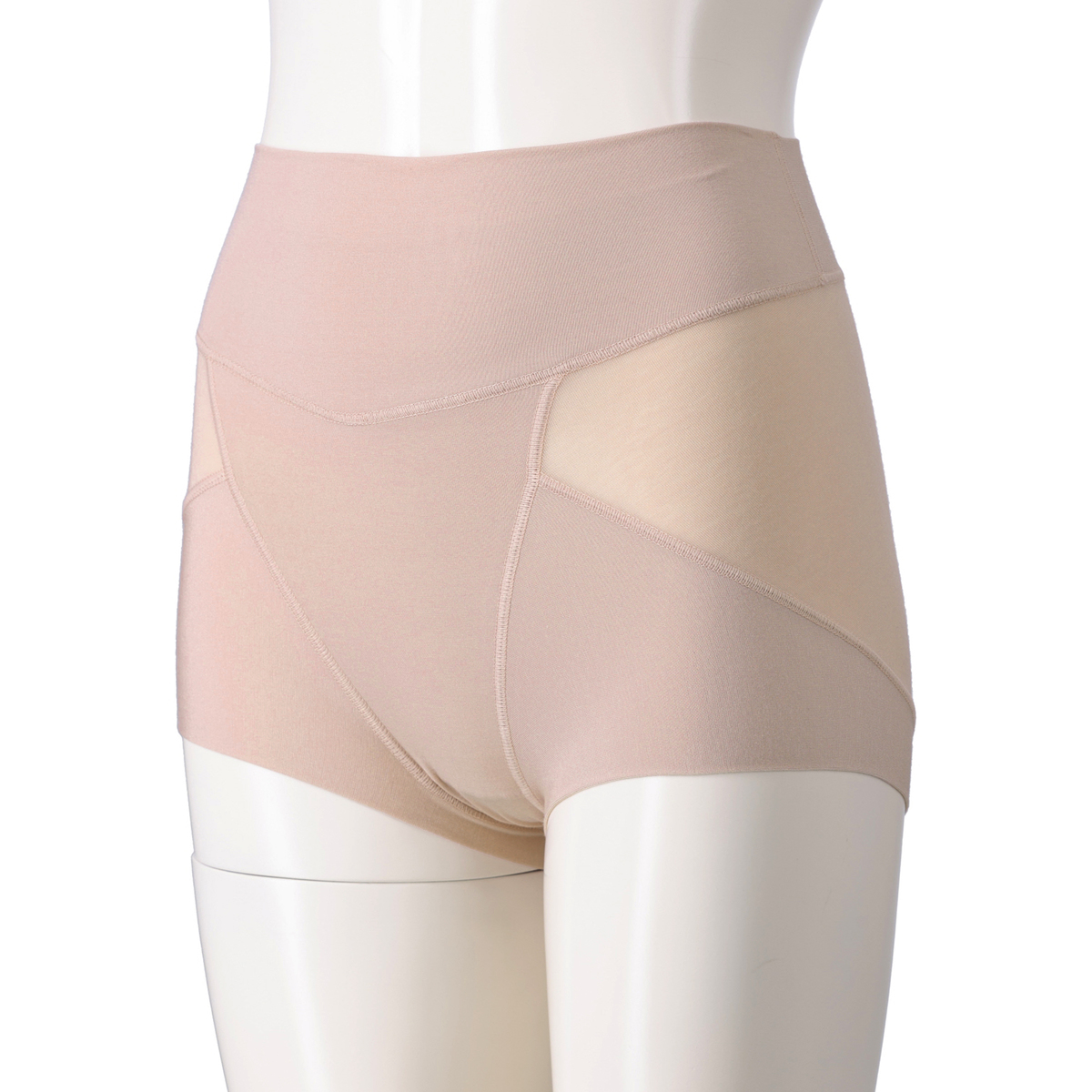 おへそまですっぽりカバーする深めの穿き込み丈で、パーツを減らしたスムーズ仕様のシンプルなデザインです。ヒップ全体をすっぽり包みながら締め付け感を軽減したオリジナルパターンを採用しました