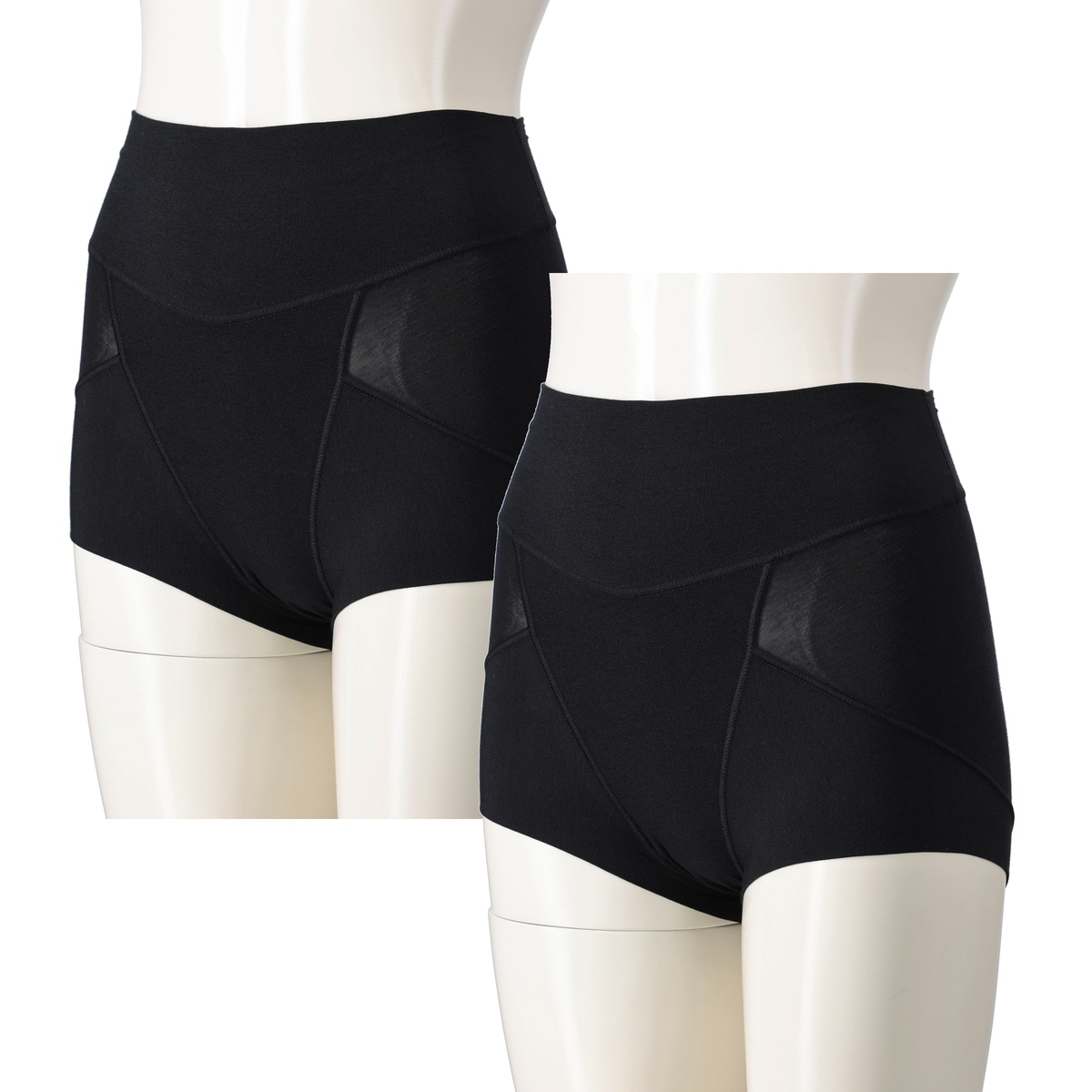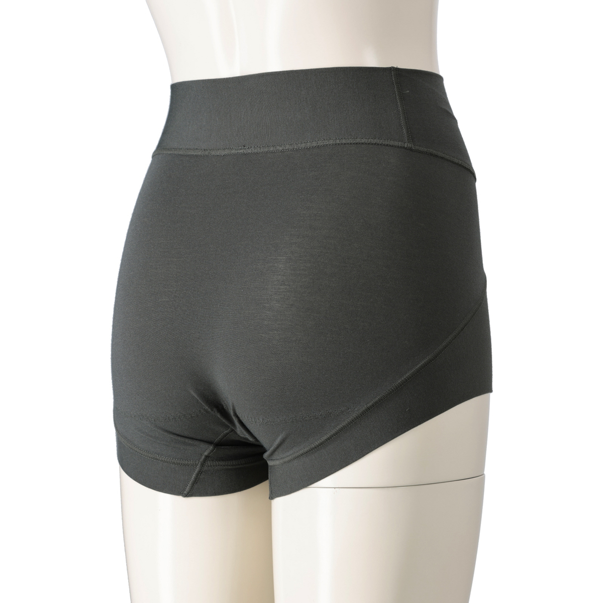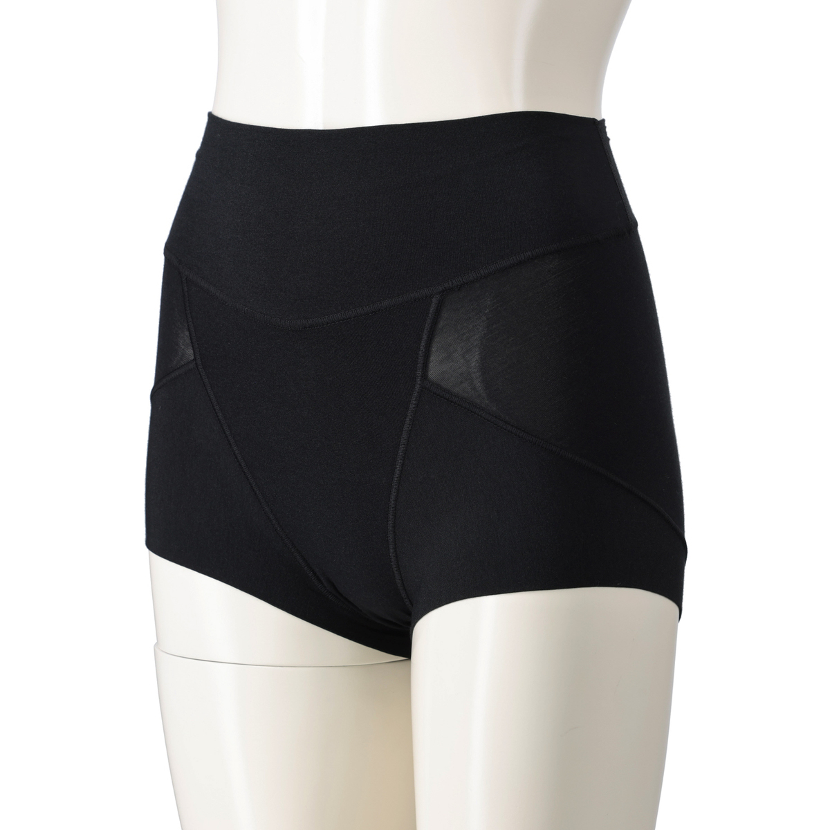 おへそまですっぽりカバーする深めの穿き込み丈で、パーツを減らしたスムーズ仕様のシンプルなデザインです。ヒップ全体をすっぽり包みながら締め付け感を軽減したオリジナルパターンを採用しました