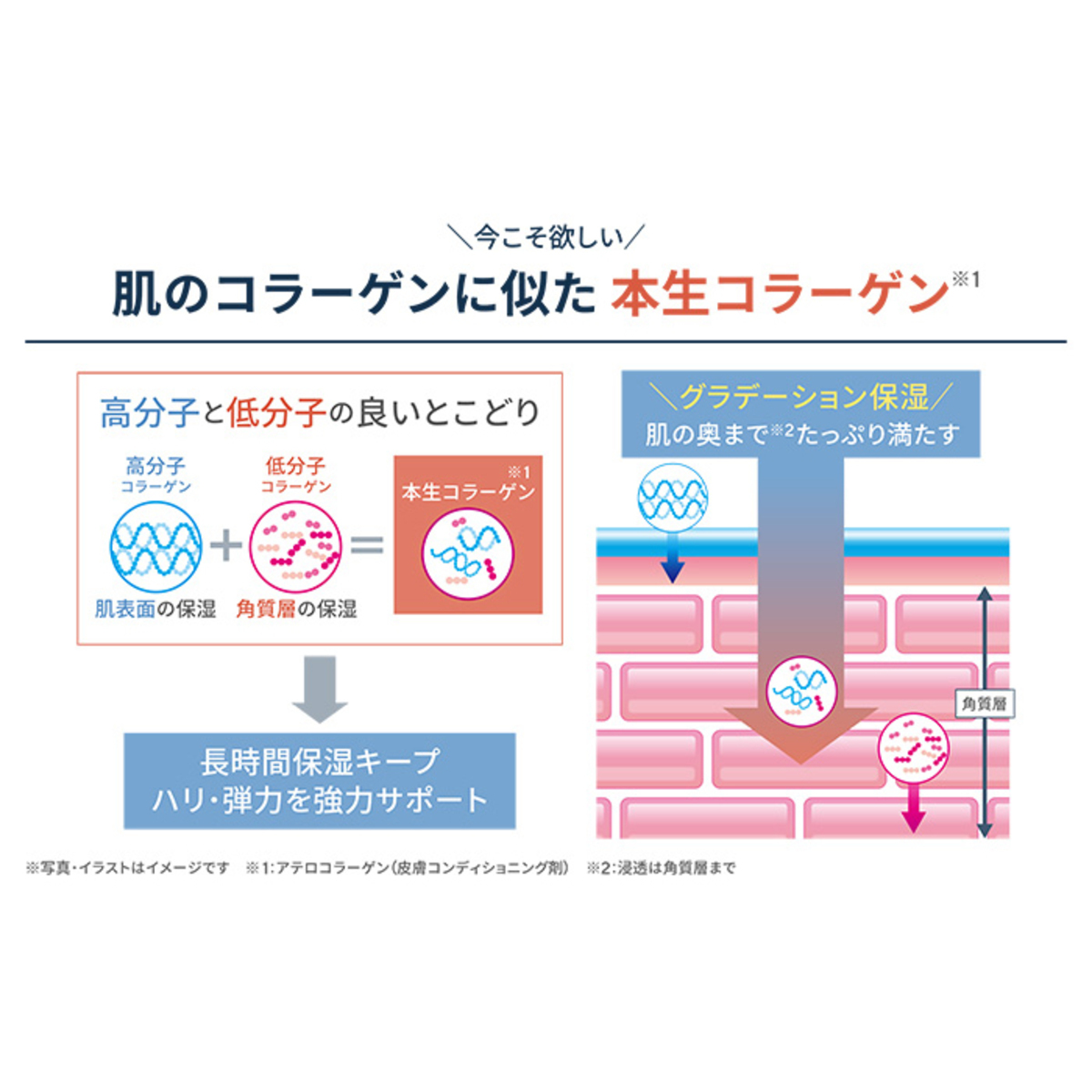 ソルージュ(本生コラーゲン)*9)の、様々なサイズのコラーゲンで保湿する"グラデーション保湿機能"で、長時間保湿をキープし、ハリ・弾力をサポートします