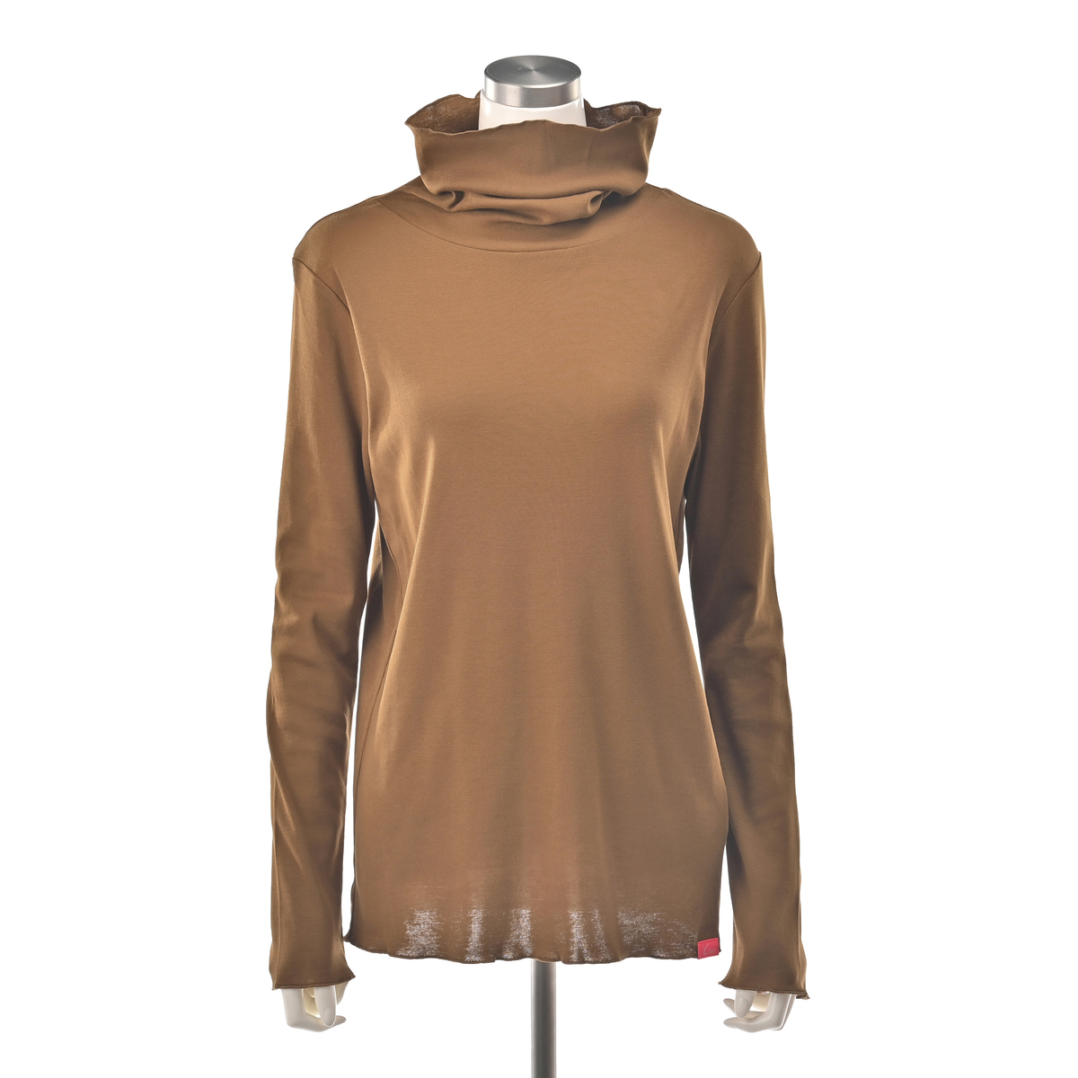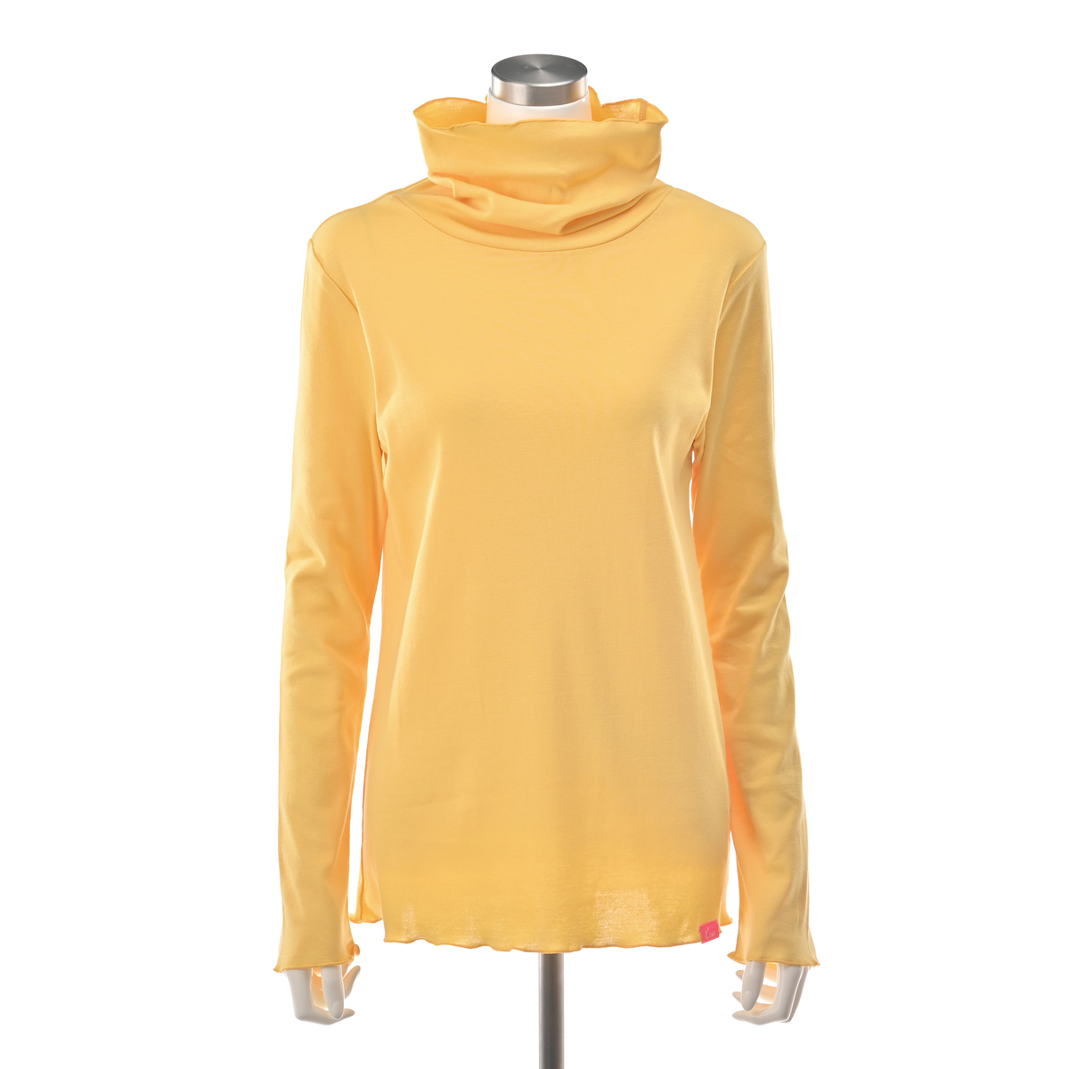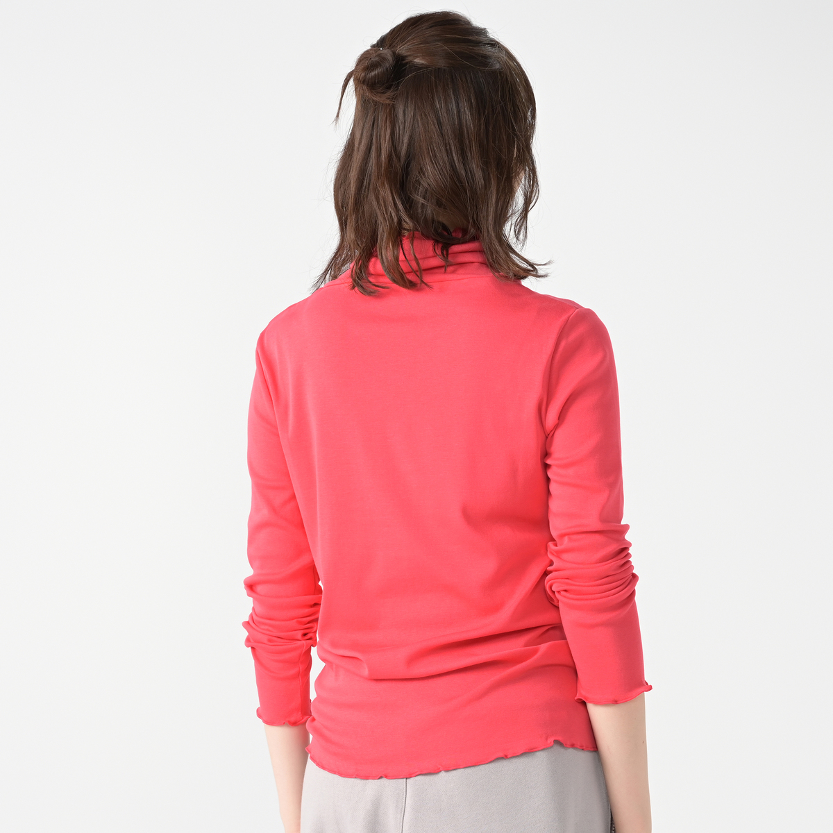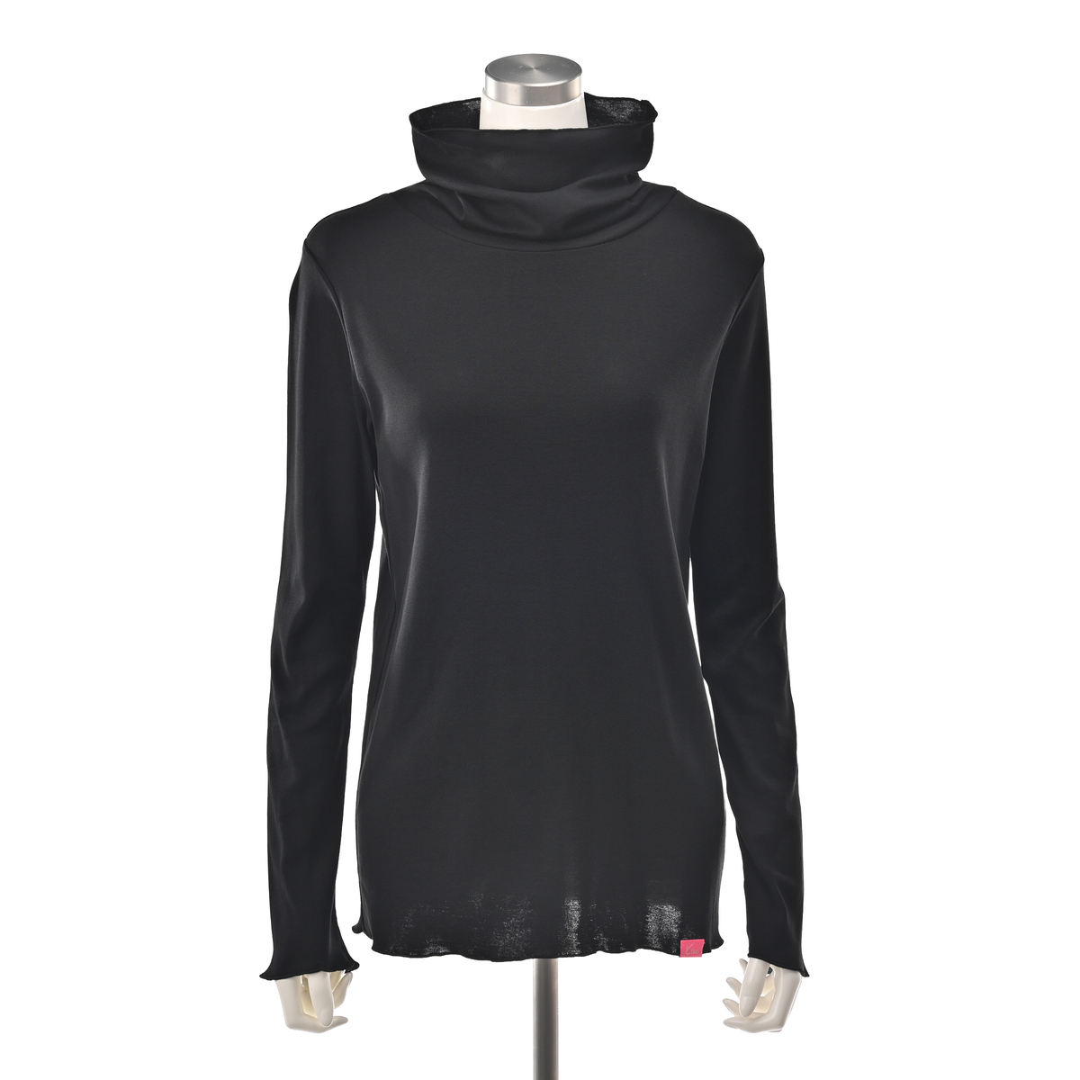 綿100%フライス素材で仕立てた、定番のハイネックインナー。甘撚りのフライスを編み、端を甘いメローロックで仕上げています