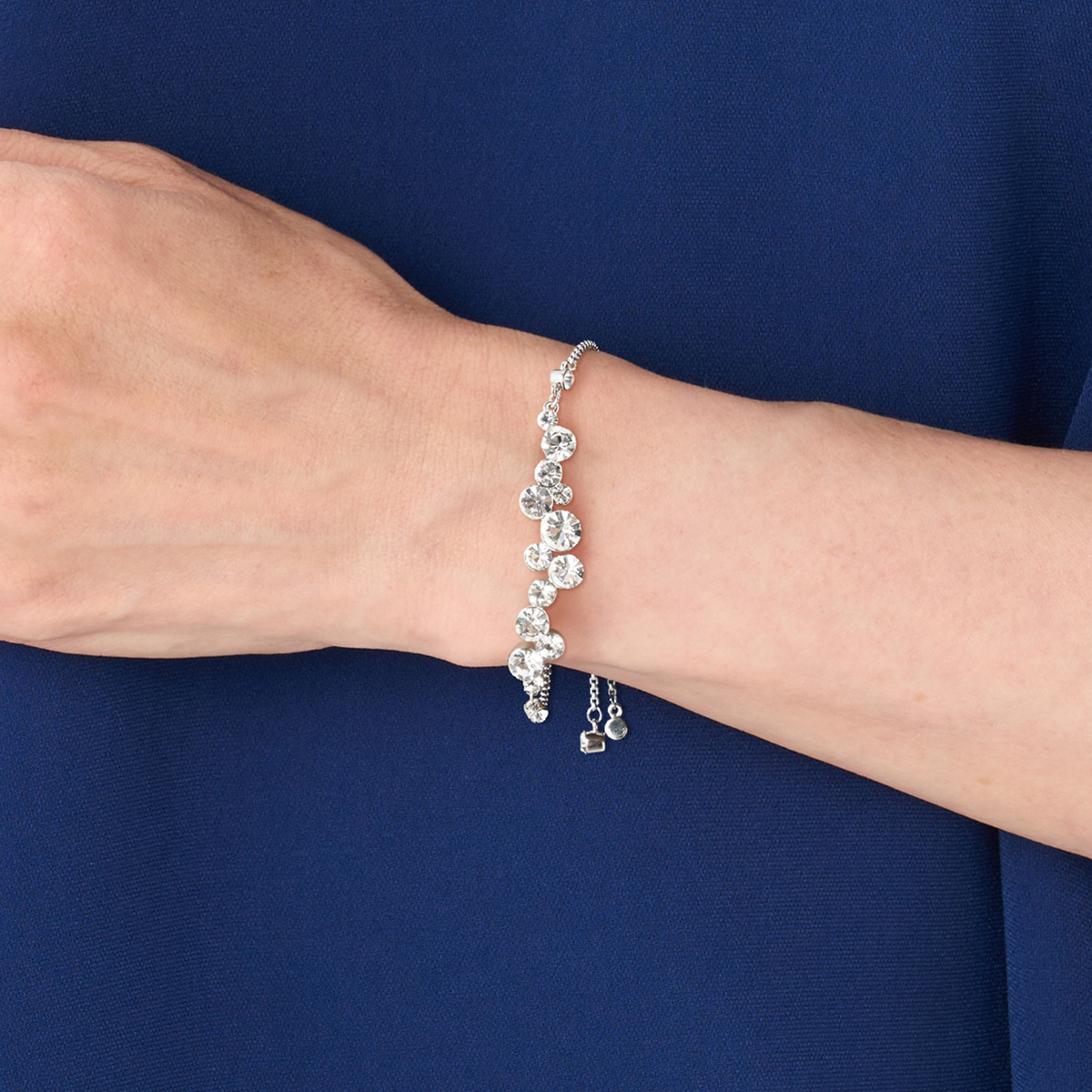 まるでシャンパンの泡がはじけるようなイメージでデザインしたブレスレット。やわらかく煌めく泡の集まりを、美しいクリスタルガラスで表現しました。スライド調節で着脱は簡単。ふとした日常やお出かけコーデに、洗練された印象を添えてくれます