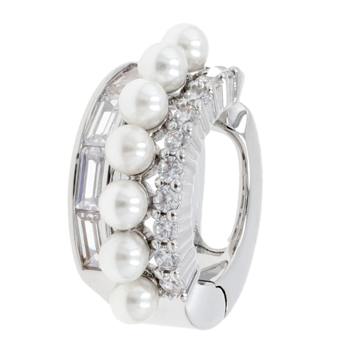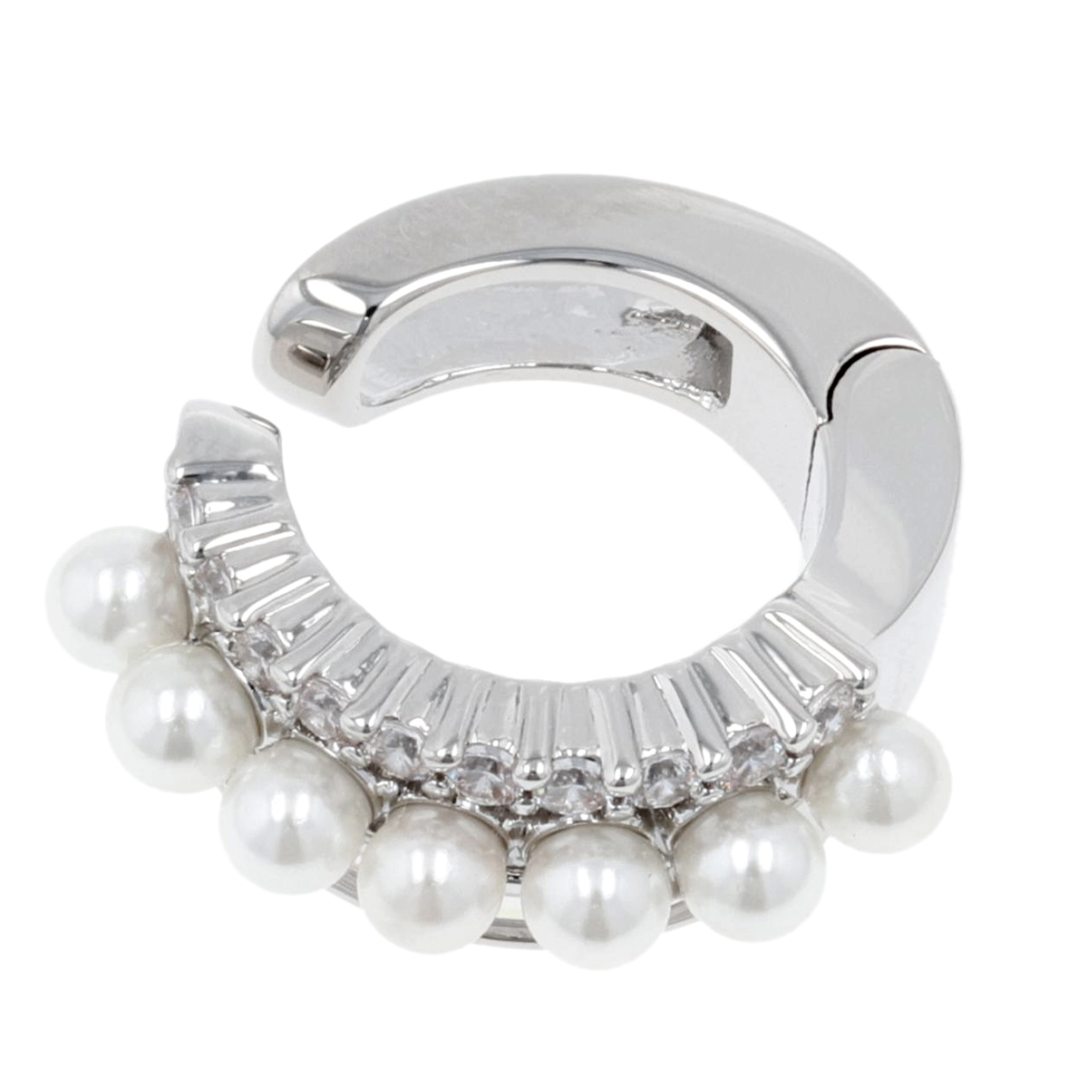 素材:[キュービックジルコニア] バゲットシェイプ レール留め、 ラウンドシェイプ 爪留め [樹脂パール(人工)] 縦×横(約) 19.0×8.0mm 総重量(約) 3.6g 留具の形状 イヤーカフス(開閉式) [地金] 合金 [メッキ] シルバーカラーメッキ ■素材の大きさ・形・色合い、製品のサイズは1点1点多少異なります ■イヤカフ金具はバネ性のある開閉式です 【中国製】