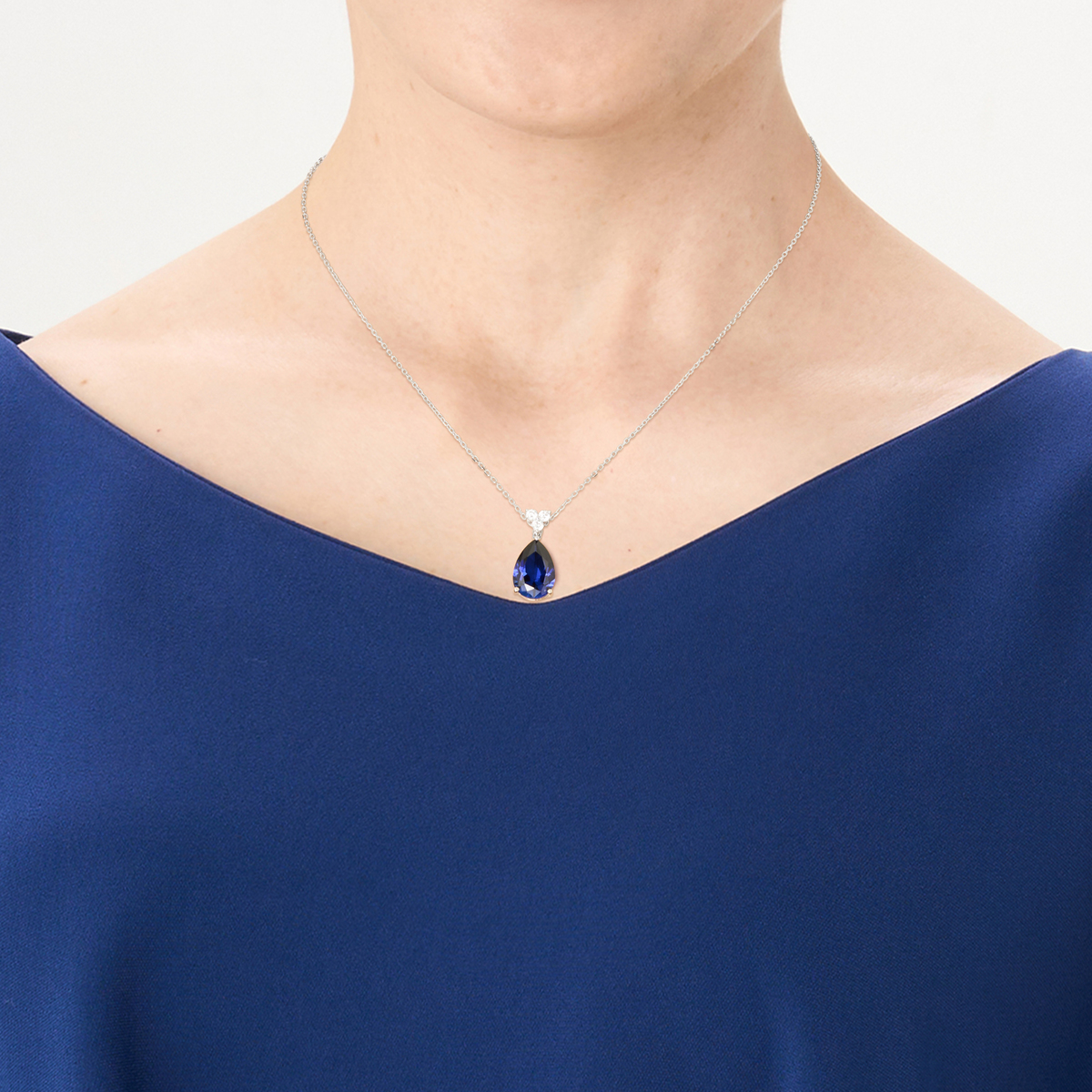 大粒の合成サファイヤを贅沢に使用したシルバーペンダントです。存在感のあるメインストーンの合成サファイヤは、ハートシェイプとペアシェイプの2種類のカットをご用意しました