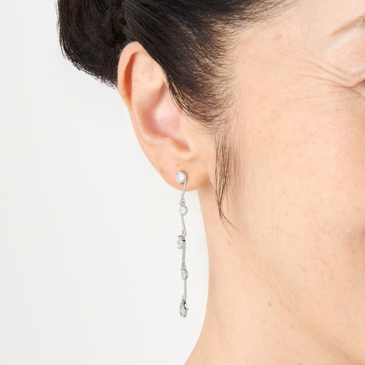 素材: [キュービックジルコニア] ラウンドシェイプ 爪留め/ベゼルセッティング [地金] イヤリング:合金 ピアス:合金、ステンレス [メッキ] シルバーカラーメッキ(ピアスポスト除く) <イヤリング> 縦X横(約) 68.0×6.0mm 総重量(約) 5.1g 留具の形状 ミックス <ピアス> 縦X横(約) 68.0×6.0mm 総重量(約) 3.8g 留具の形状 ポスト&シリコンキャッチ ■素材の大きさ・形・色合い、製品のサイズは1点1点多少異なります 【中国製】