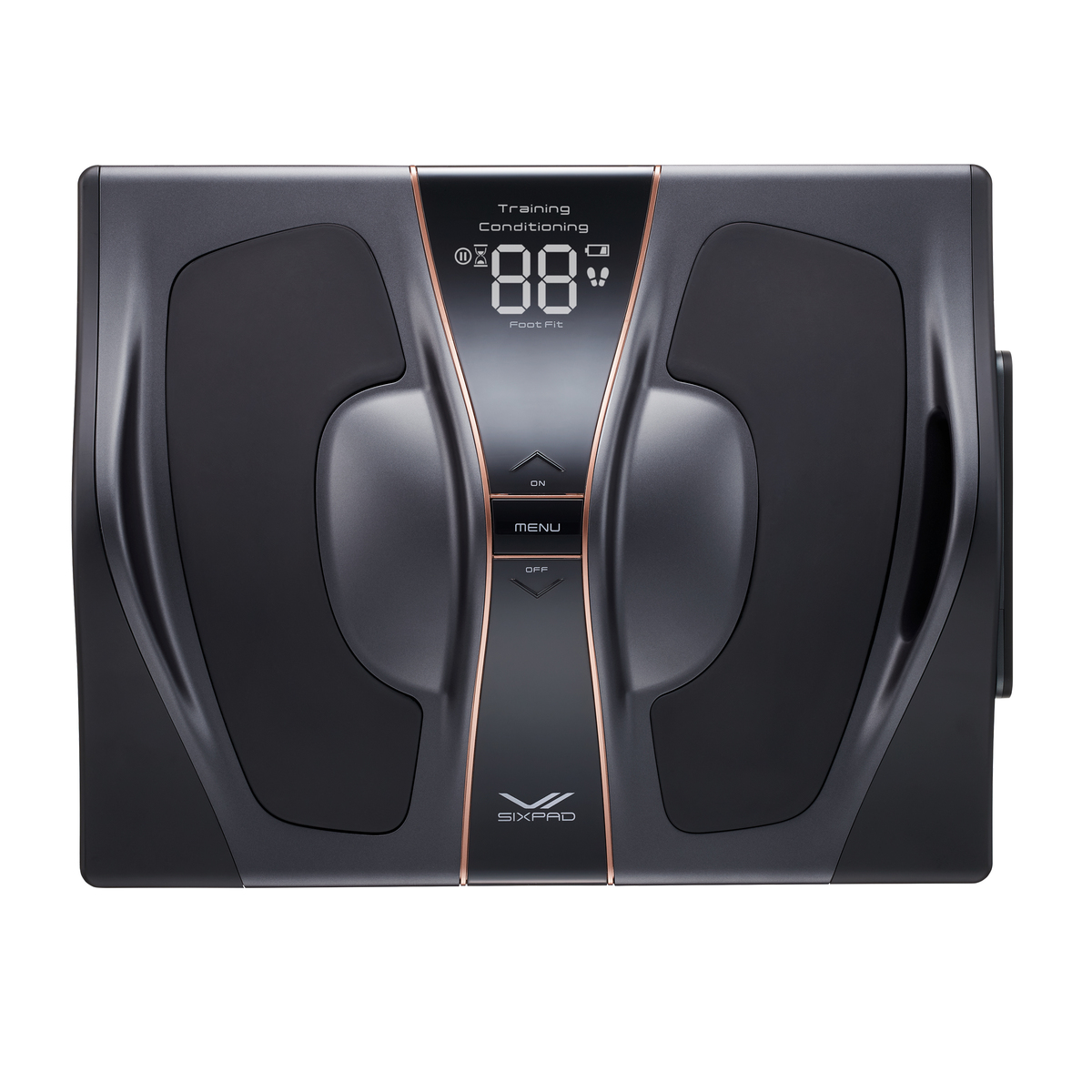 座ったまま足を乗せるだけでトレーニングできる「SIXPAD Foot Fit 3」。電気刺激が足裏、前すね、ふくらはぎの歩行に使う3つの筋肉にアプローチします