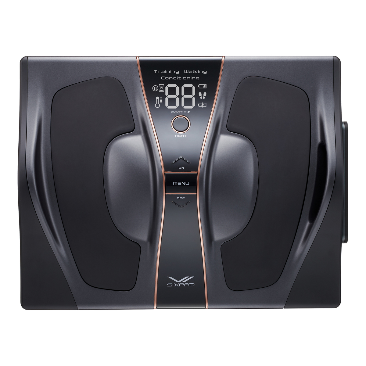 ヒーター機能を搭載したSIXPAD Foot Fit 3 Heat。座ったまま足を乗せるだけで、電気刺激が足裏、前すね、ふくらはぎの3つの筋肉にアプローチ。ヒーター機能で足元を温めながらトレーニングできます