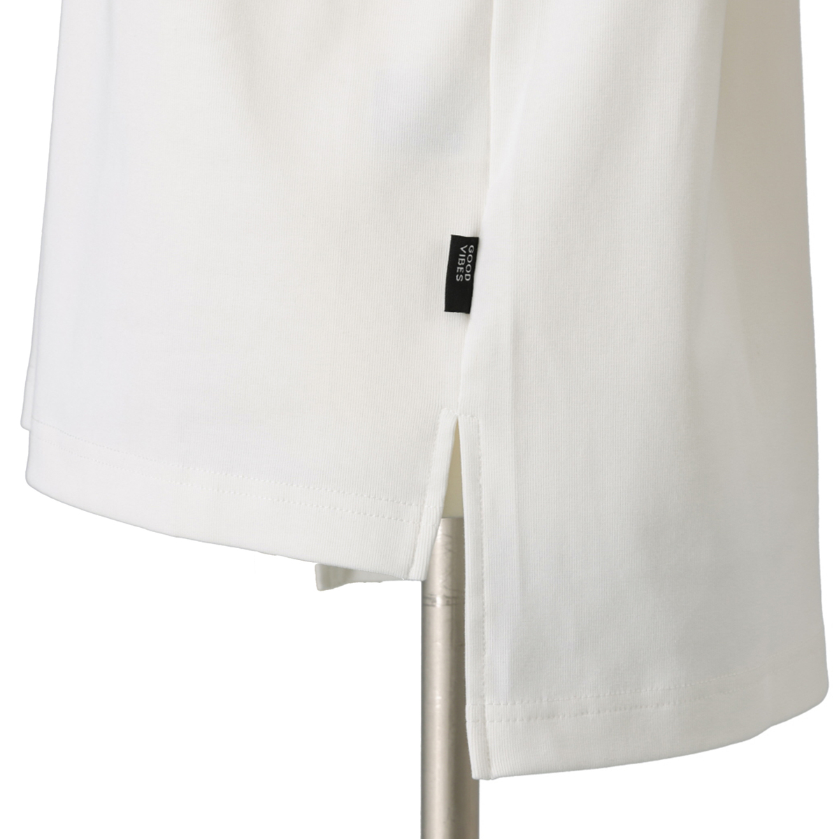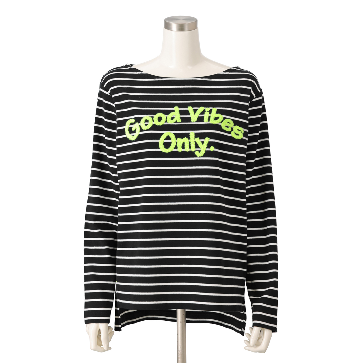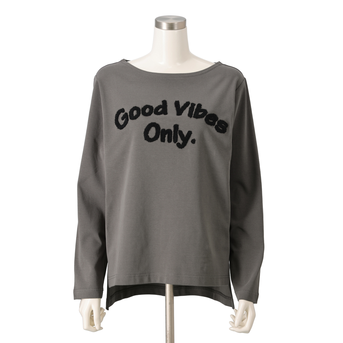 前身頃には「GOOD VIBES ONLY」の刺繍をデザイン。デニムやスカートと組合せて普段使いをより楽しく彩ります