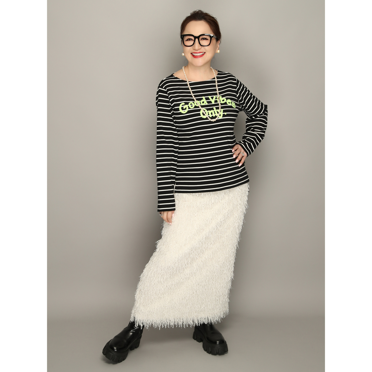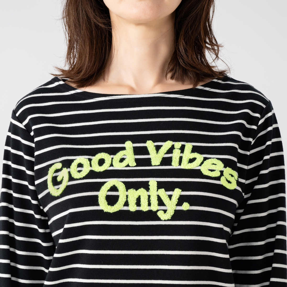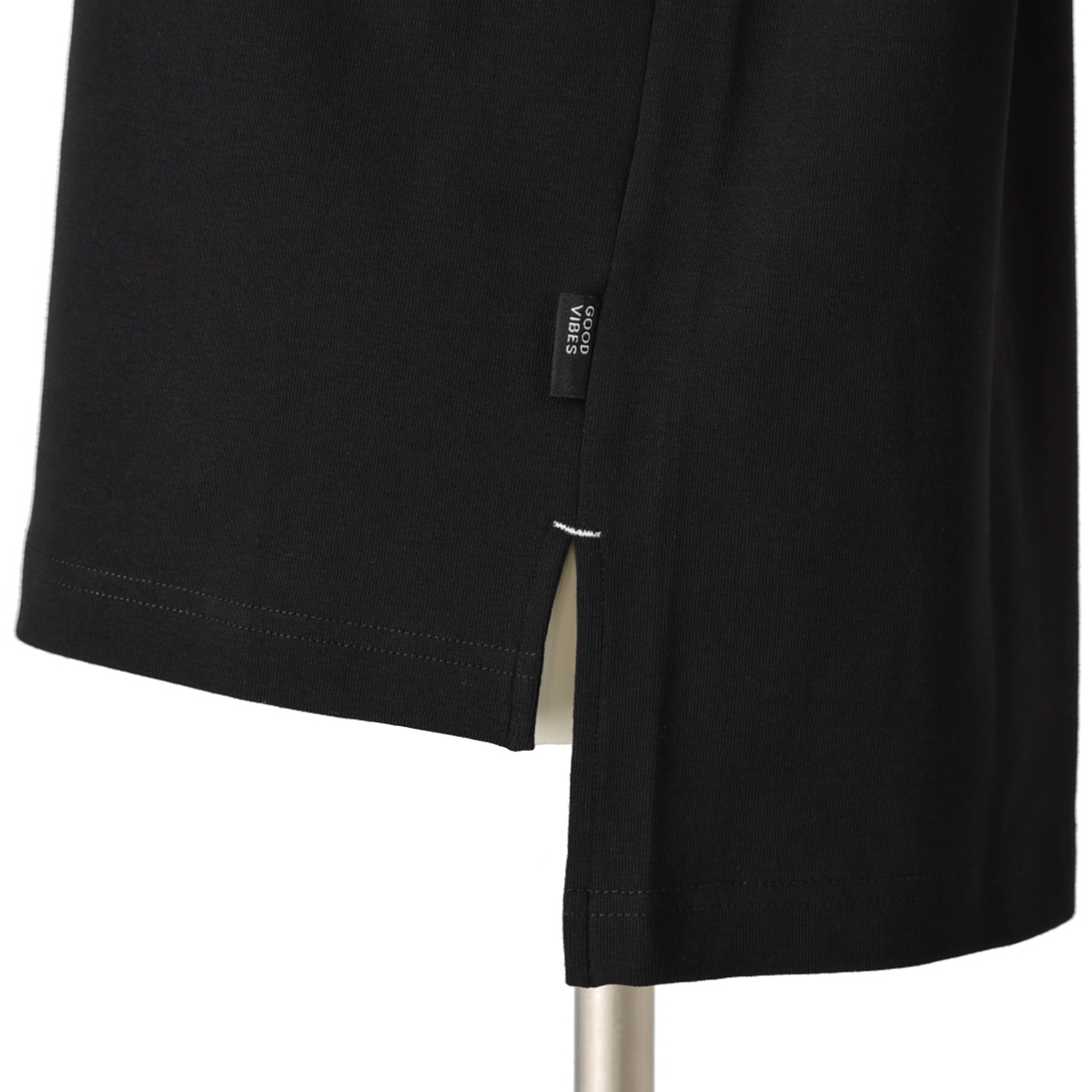 前身頃には「GOOD VIBES ONLY」の刺繍をデザイン。デニムやスカートと組合せて普段使いをより楽しく彩ります