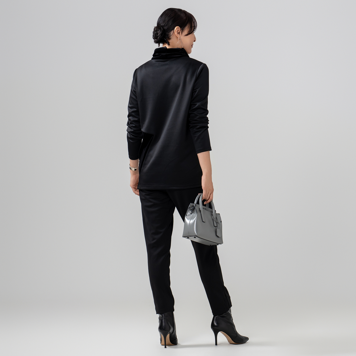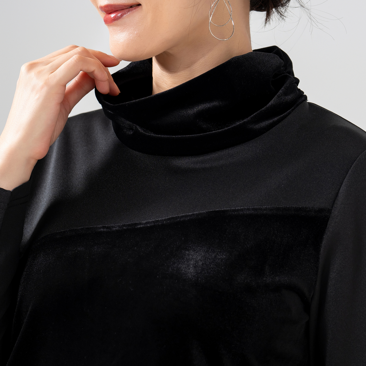大胆なベロア切替が目を惹くトップス。エレガントな異素材使いのデザインです