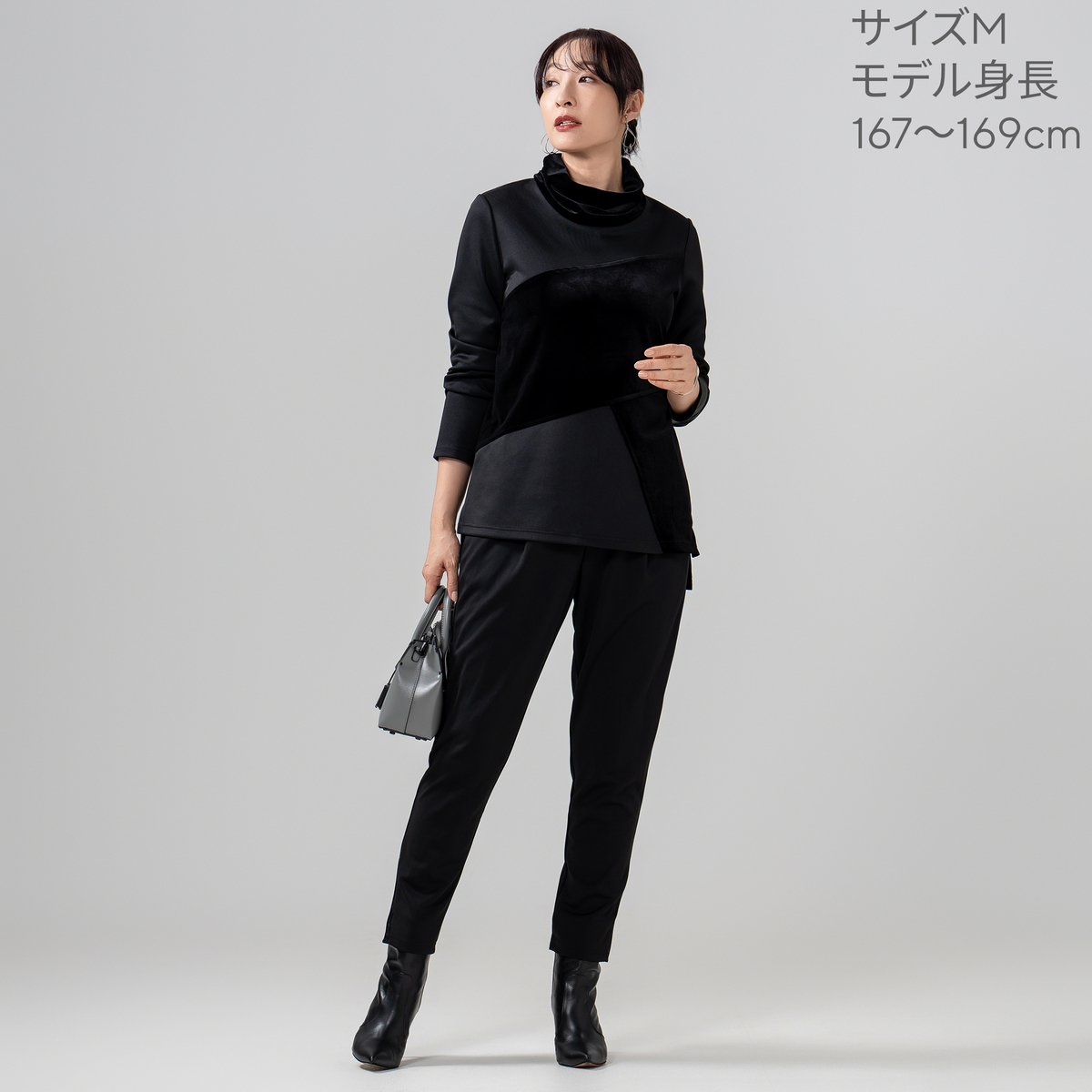 No. 745896 BOUTIQUE JUNKO ベロア切替タートルネックプルオーバー
