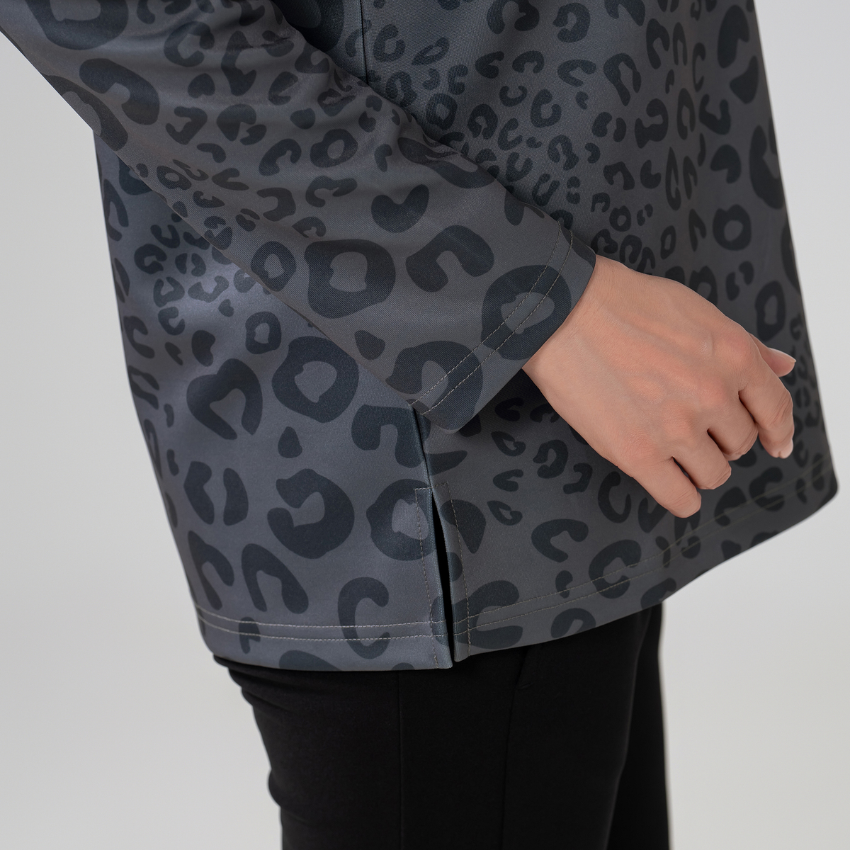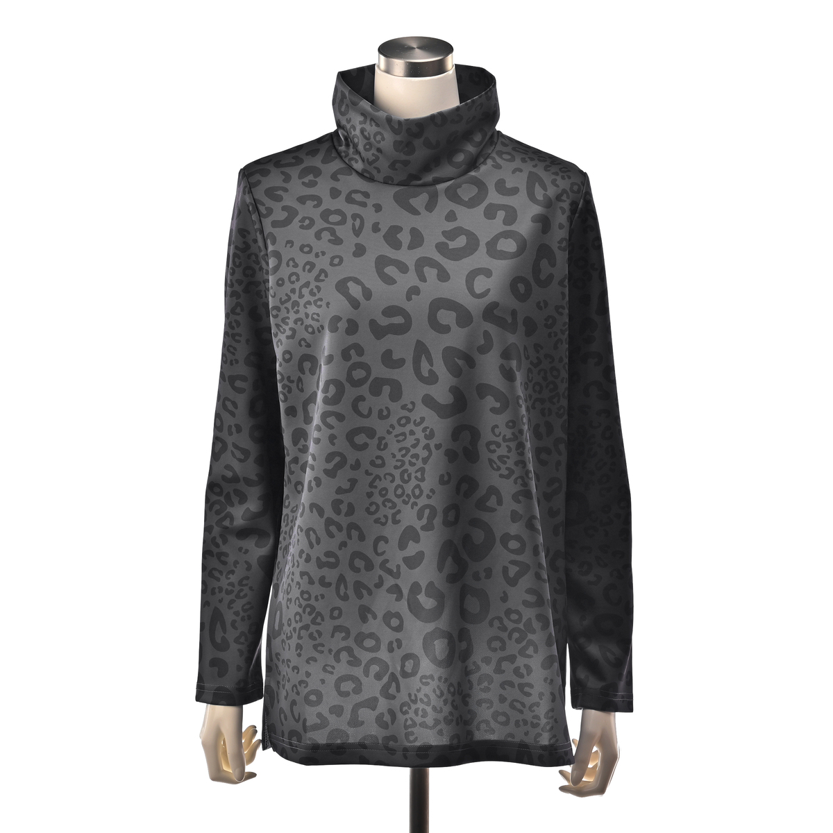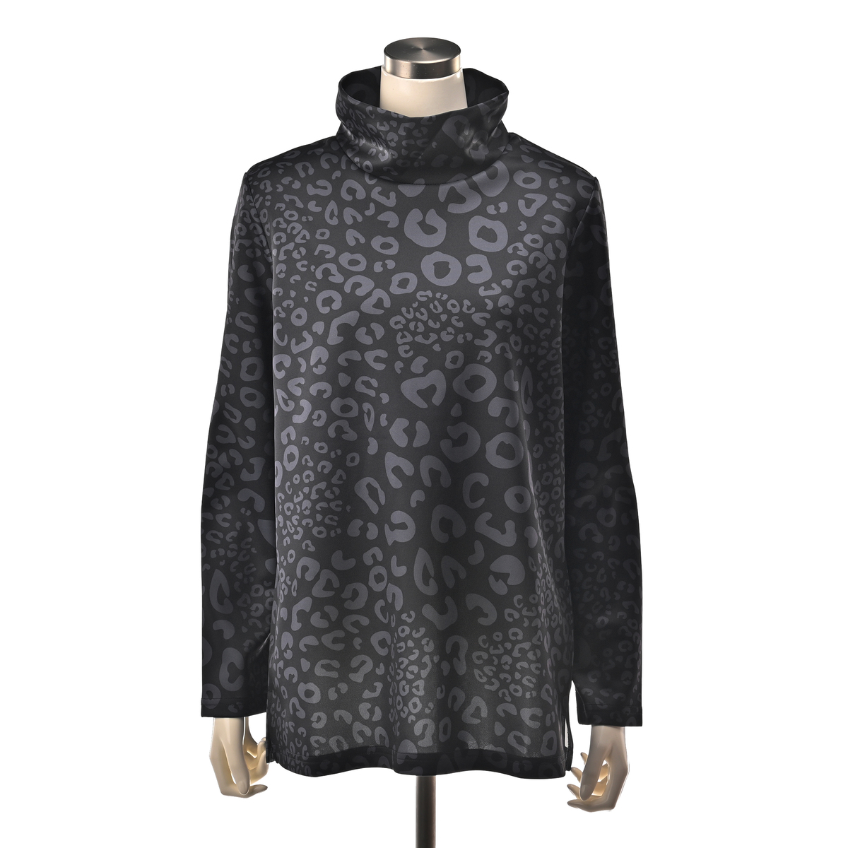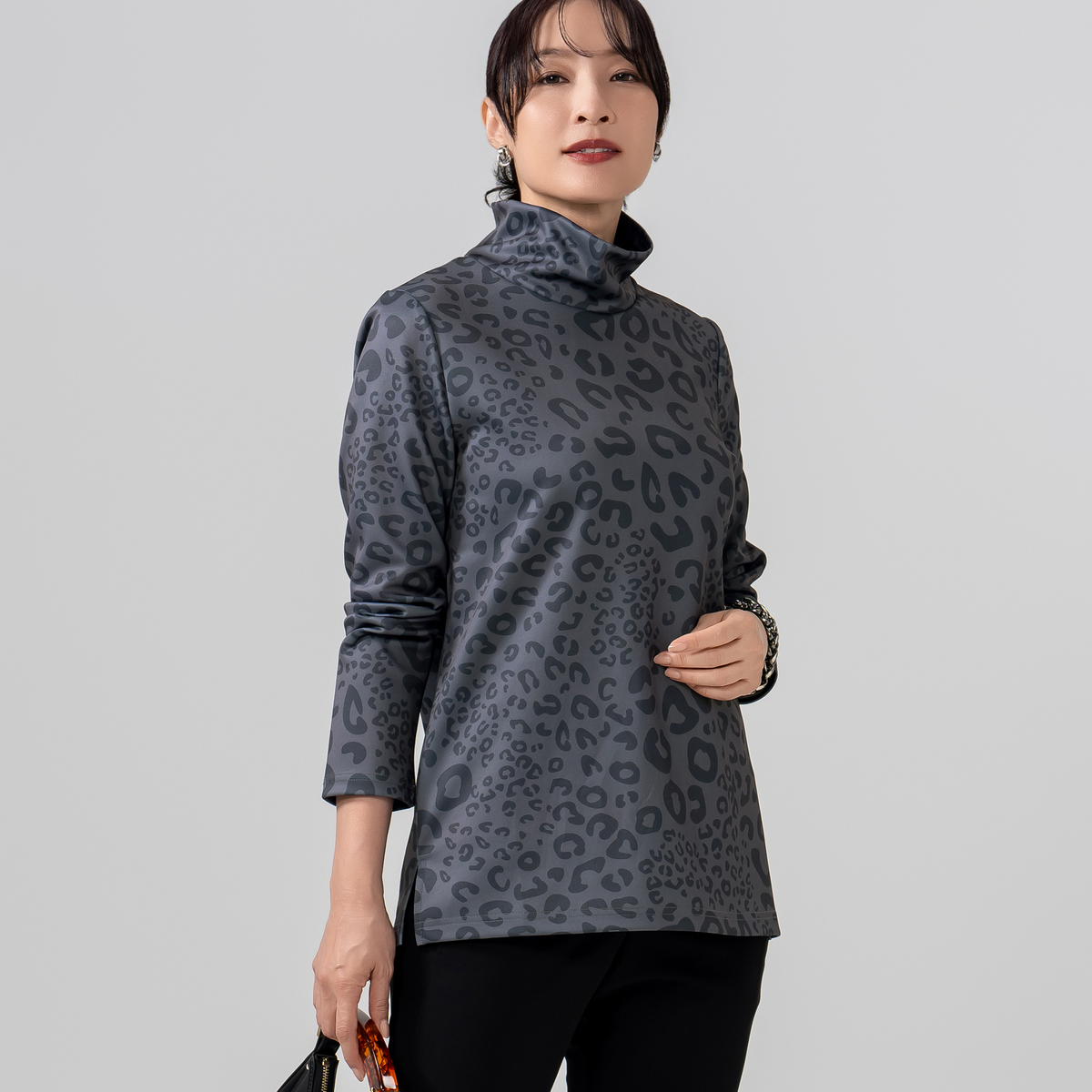 シックなレオパード柄が印象的なプルオーバー。重ね着しても衿や袖口から柄がさりげなくのぞき、コーディネートにアクセントをプラスしてくれます