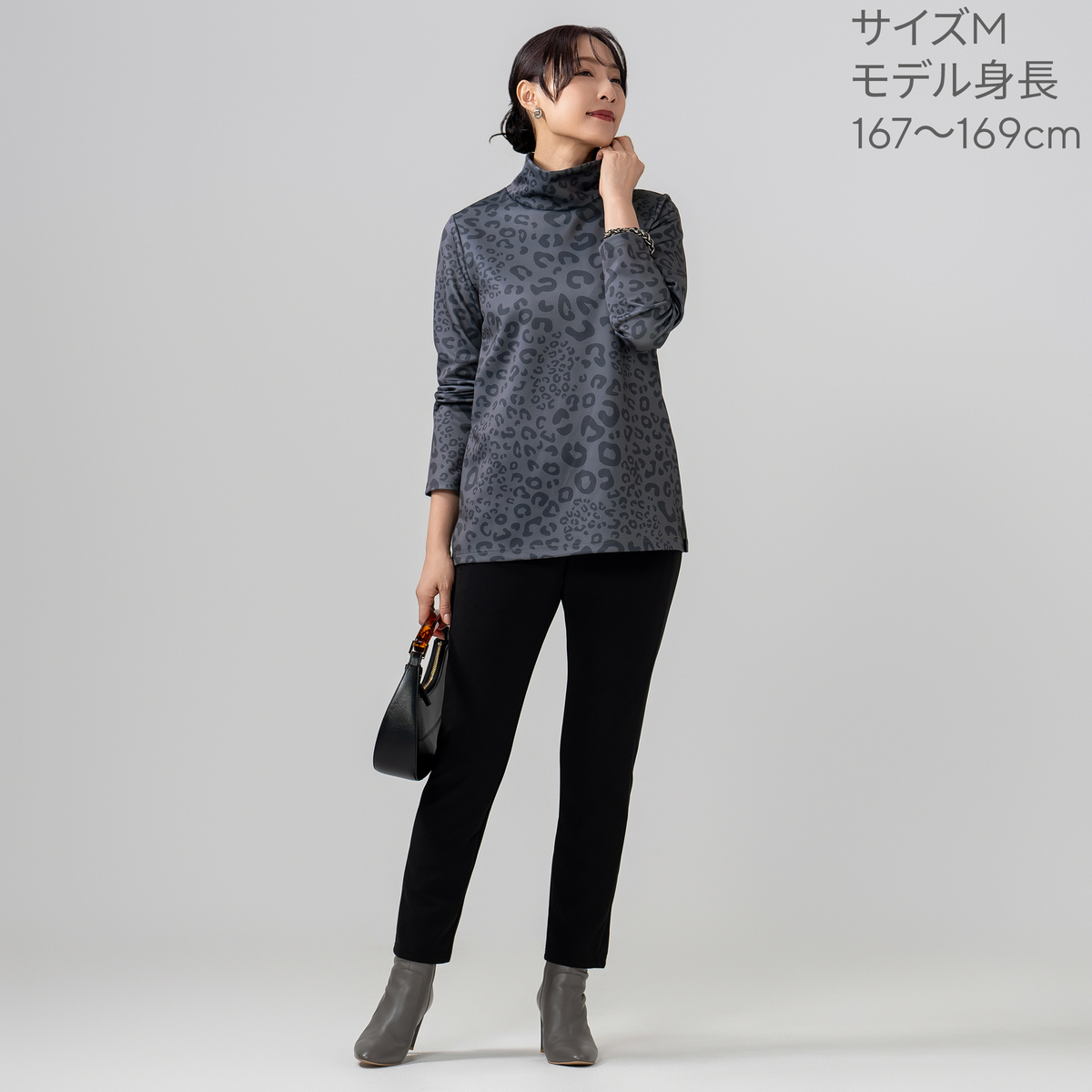シンプルなボトムスと合わせるだけで、レオパード柄が個性を引き立て、華やかな雰囲気に。普段使いからお出かけスタイルにも活躍します