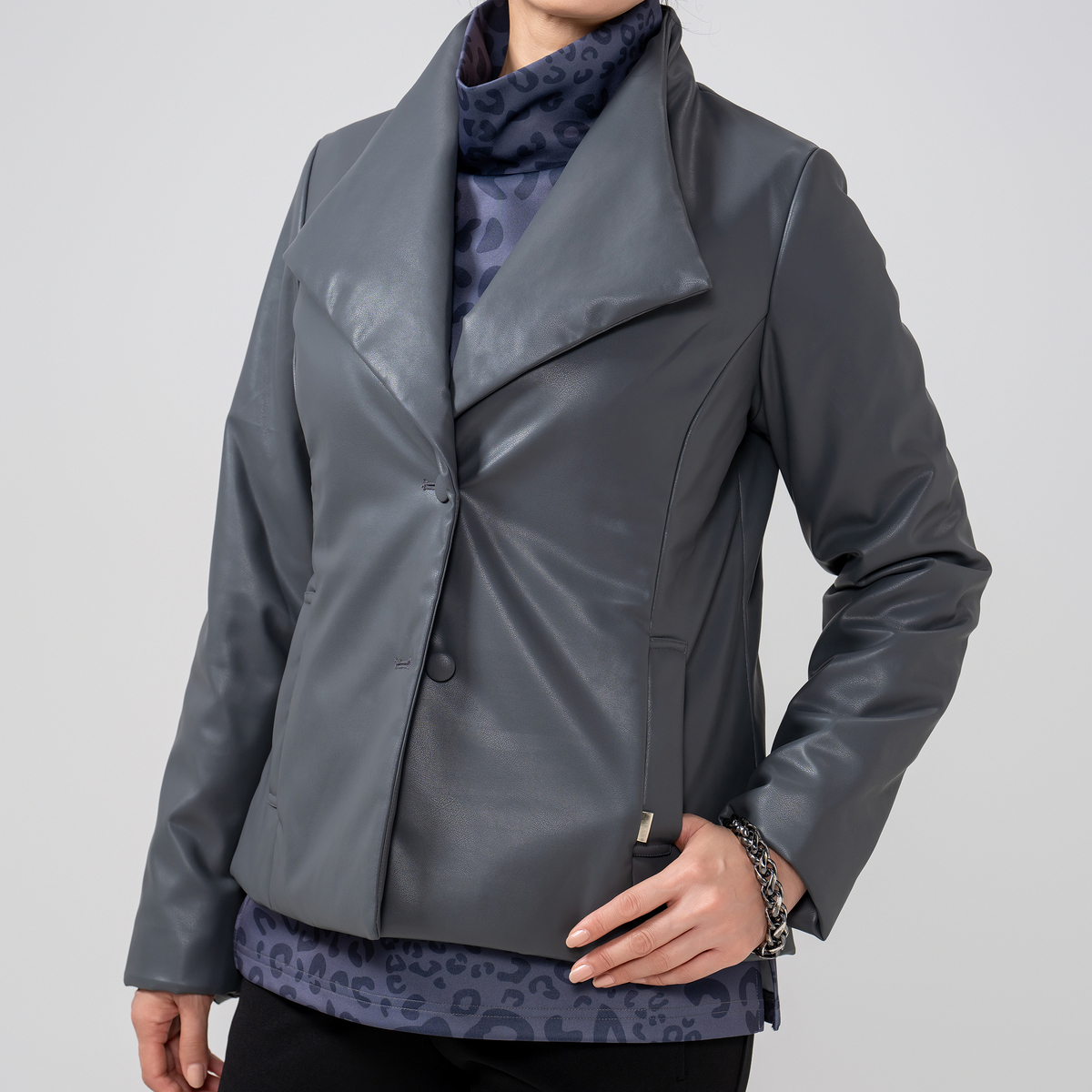 No. 745900 BOUTIQUE JUNKO フェイクレザー中綿ジャケット