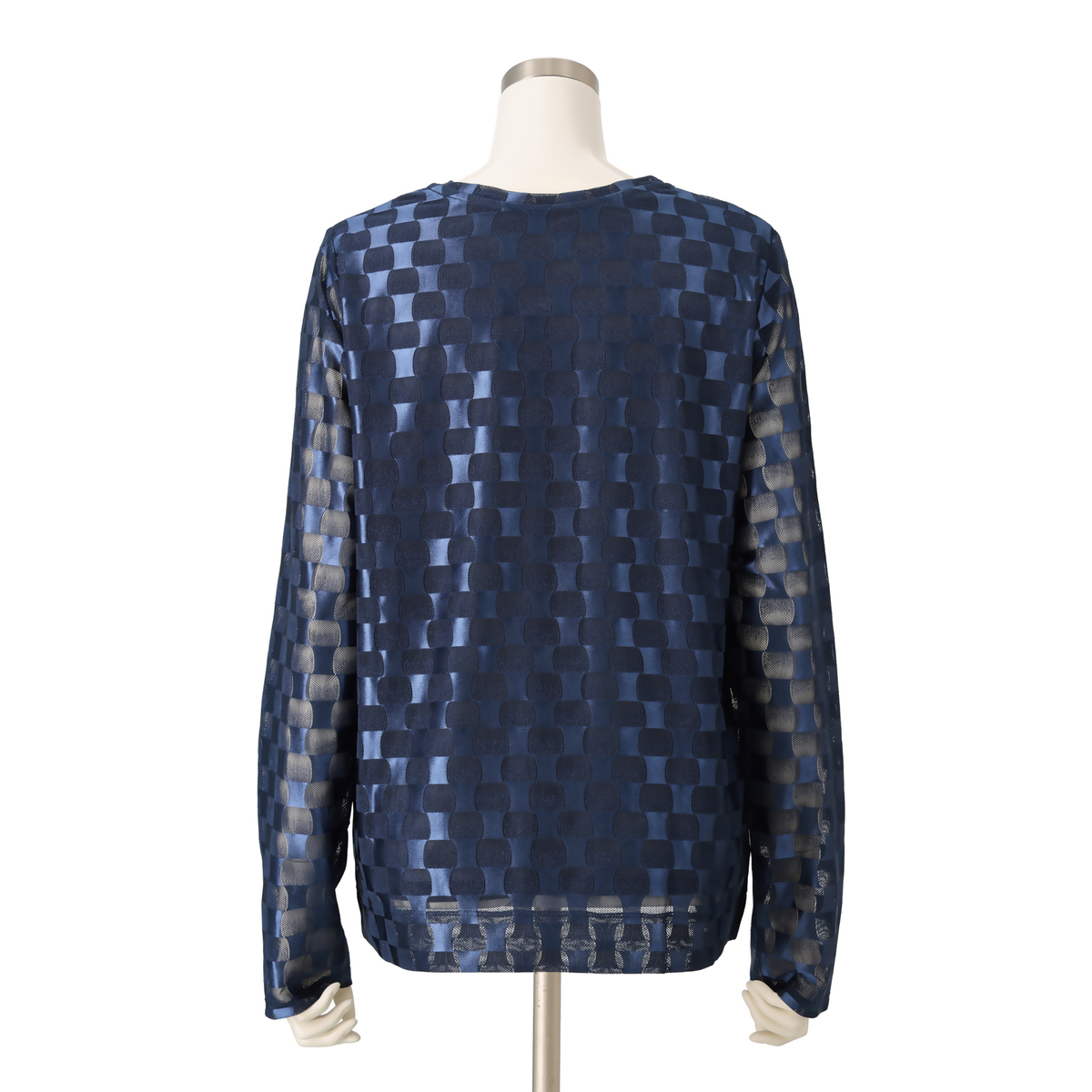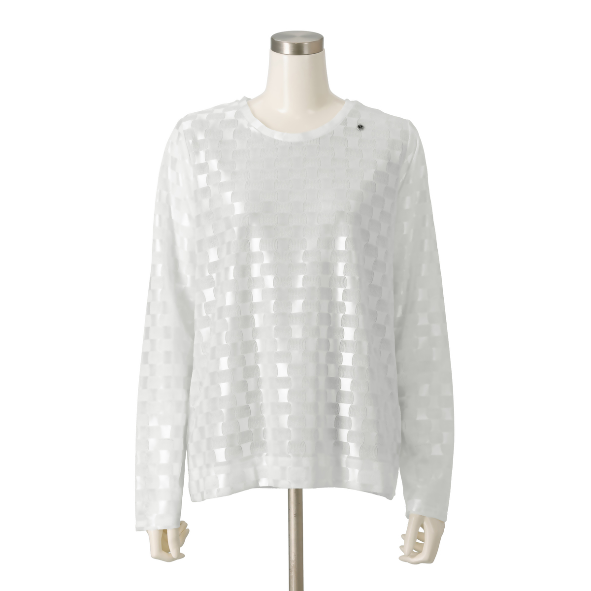 透け感のあるジオメトリック柄のカットソープルオーバー。ブランドらしいモード感とエレガンスを兼ね備え、コーデの主役になってくれる存在感のあるアイテムです