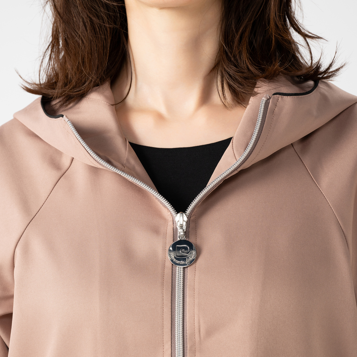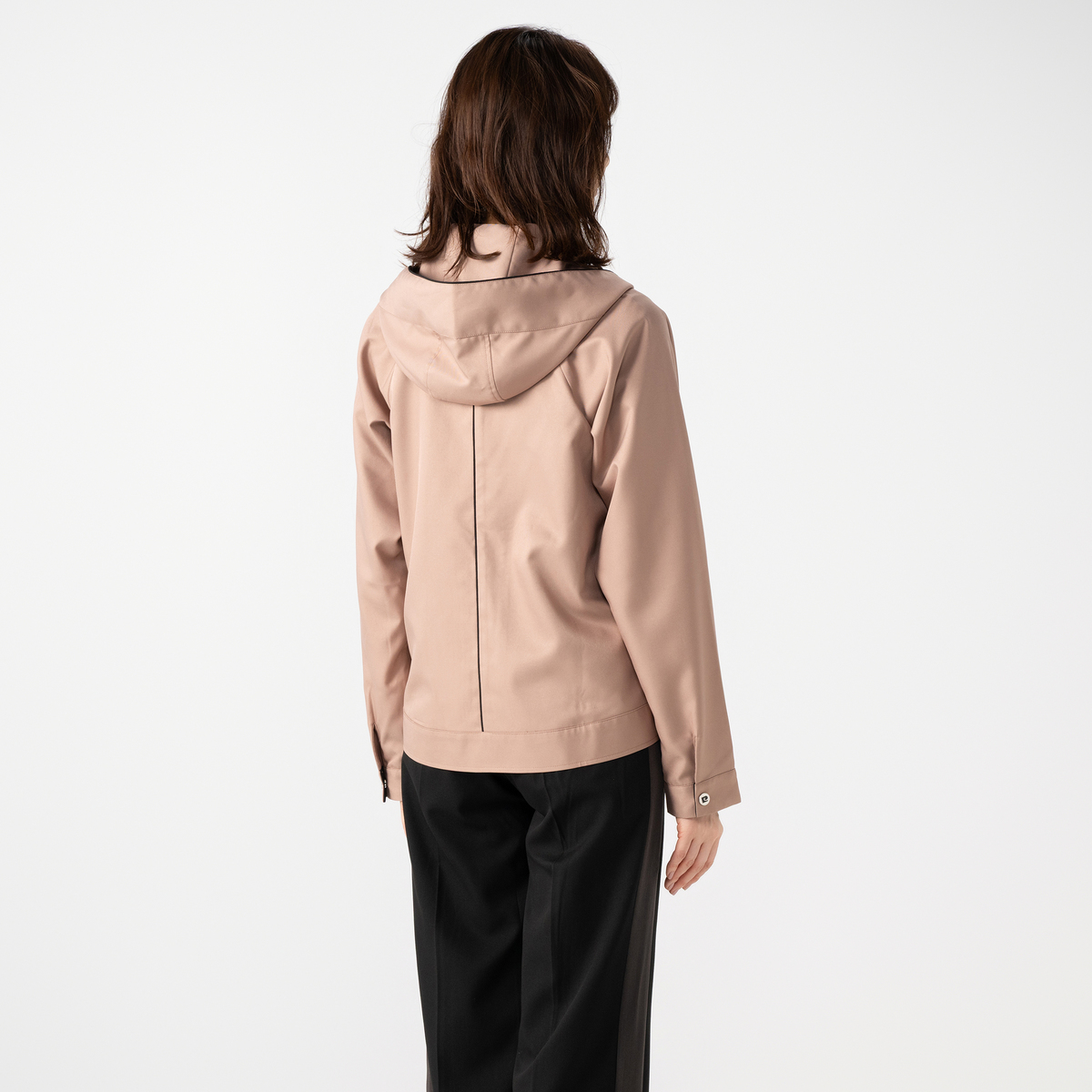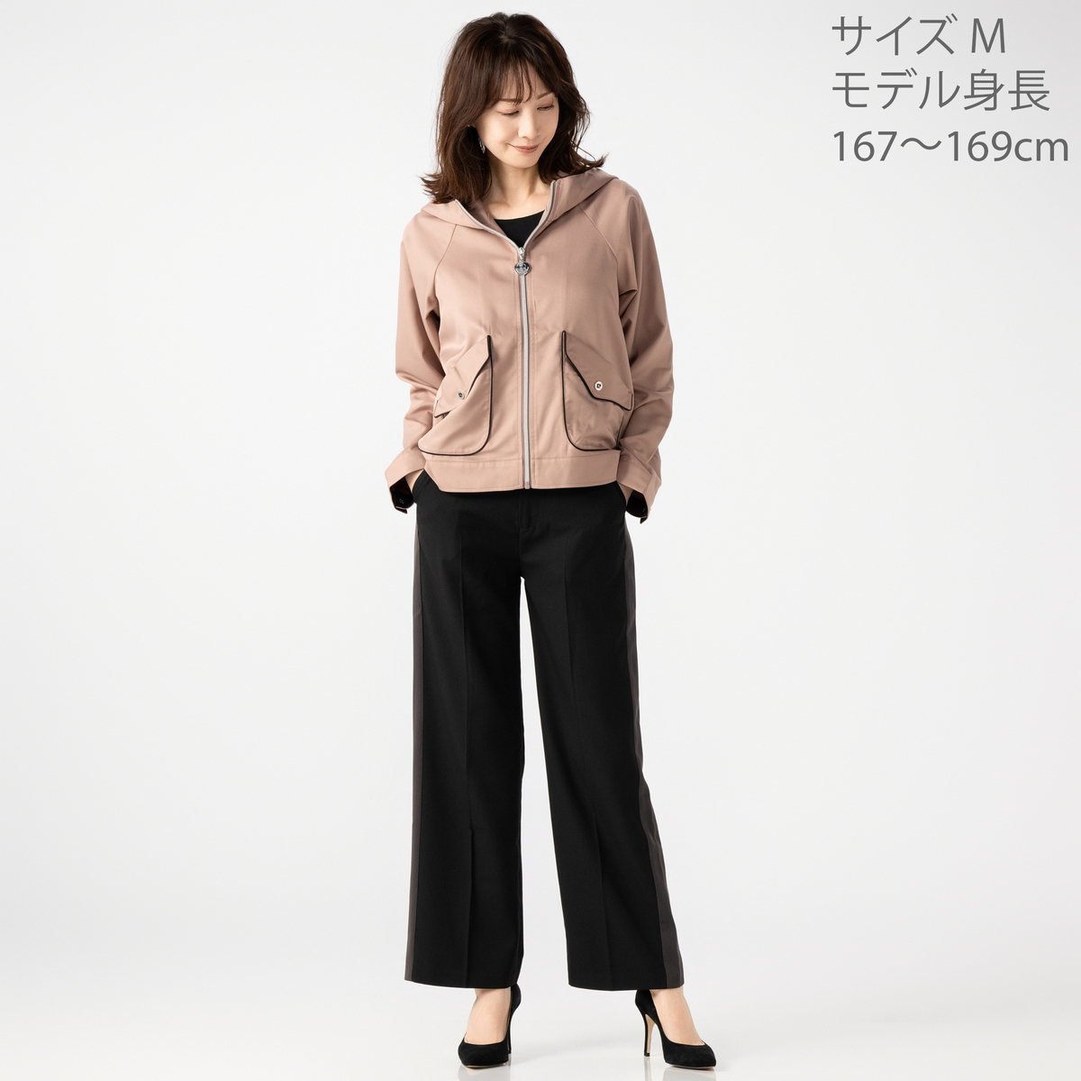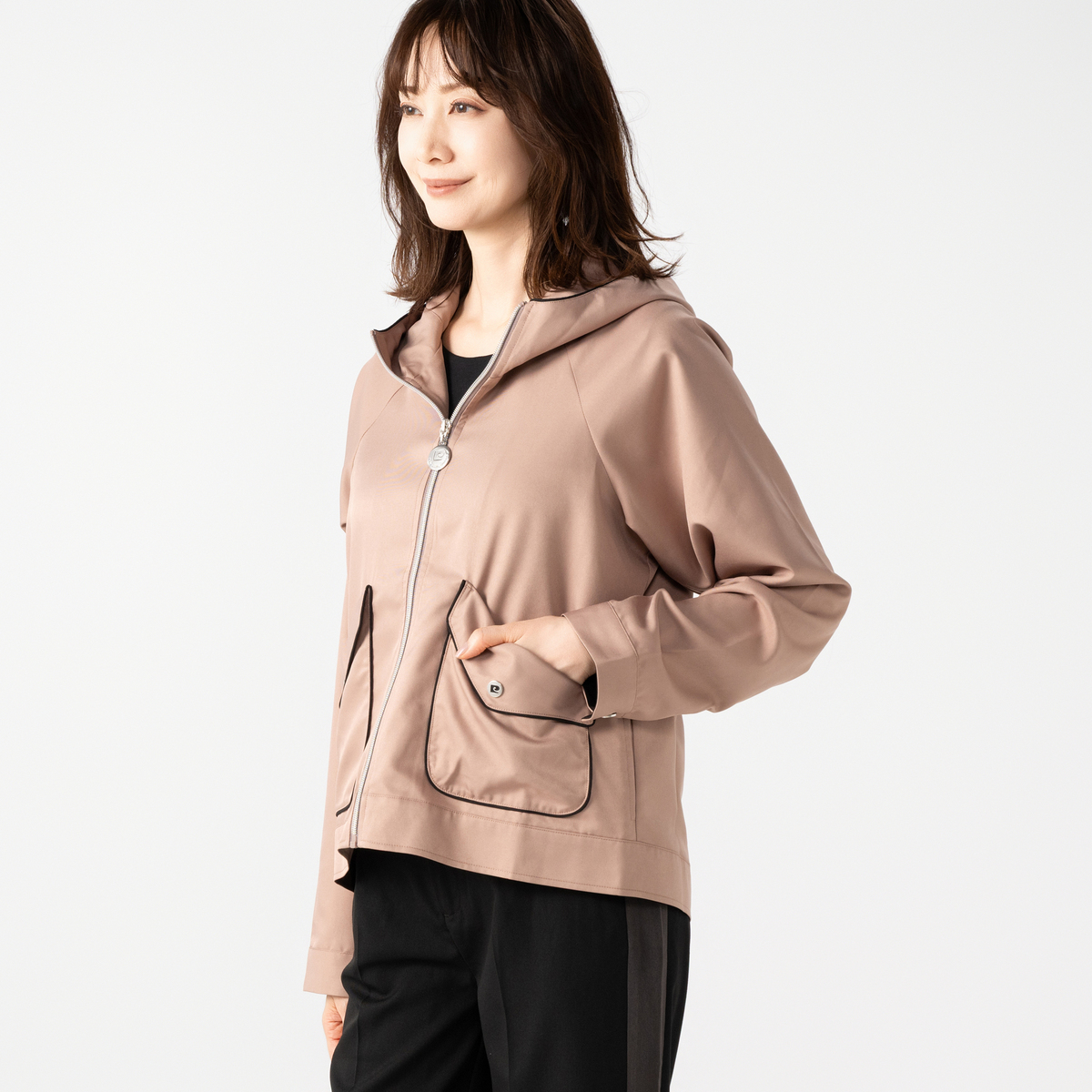 クラシカルなツイル調の織り柄がある布帛素材を使い、軽やかさと品の良さを両立したライトブルゾンです。肌触りがさらっとしていて快適な着心地。適度なハリと落ち感で、体型をすっきり見せる効果も期待できます