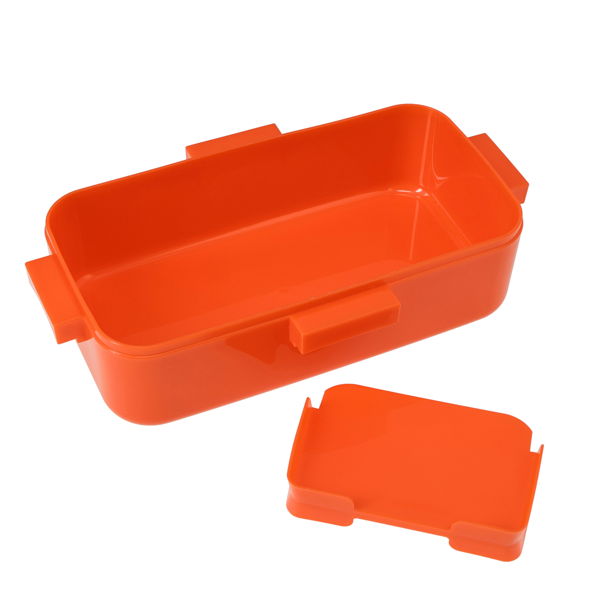 片手で持てるスリムタイプの弁当箱。高い仕切り付きでおかずが片寄りにくく、4箇所のロックでしっかりフタを固定し、汁漏れしにくい構造。電子レンジ(*)、食洗器対応です