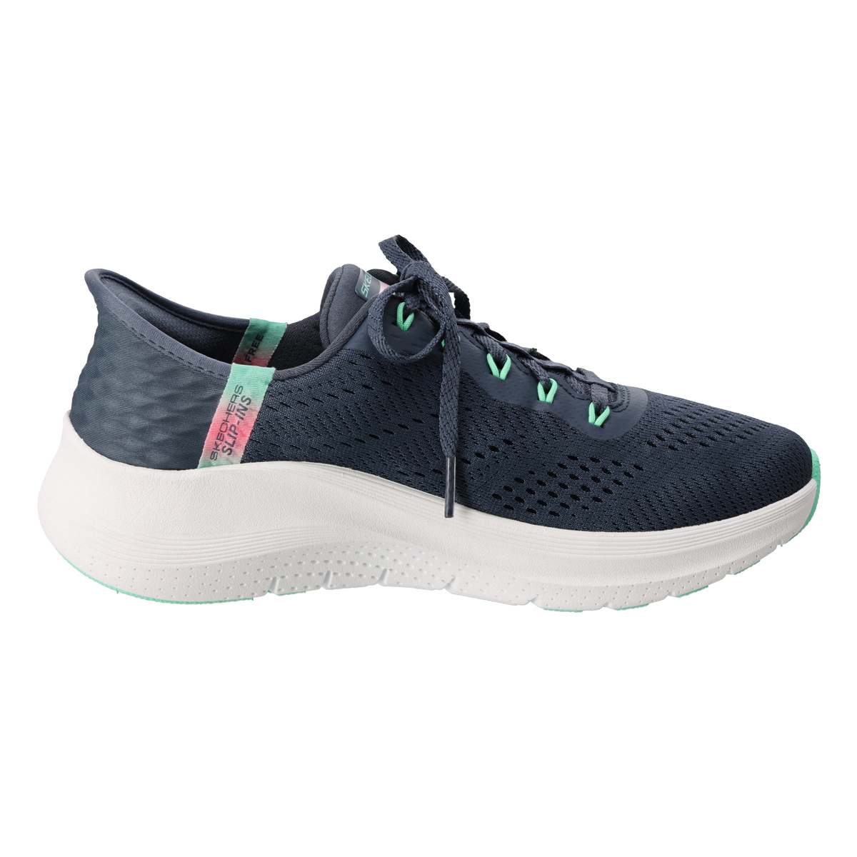 ヒール部分にはスケッチャーズ ハンズフリースリップインズ機能を搭載。手を使わずに簡単に着脱可能です。また、洗濯機で洗えるマシンウォッシャブル機能を搭載し、汚れても簡単にお手入れしていただけます
