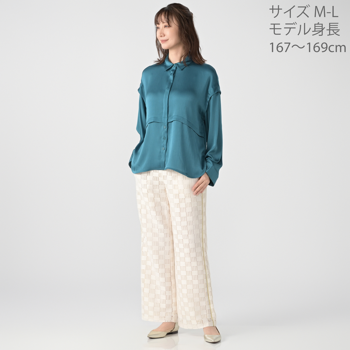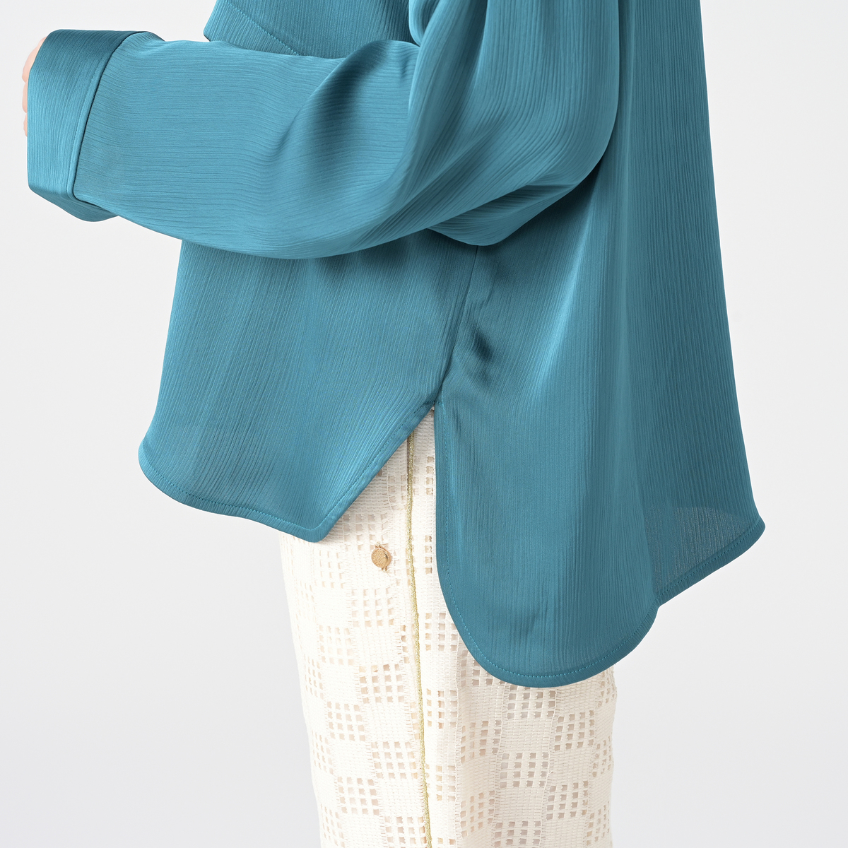 脇裾にはスリットを入れ、後ろはお尻を隠す丈にしました。軽く羽織れて、季節の変わり目や冷房対策用としても活躍します。シャツ衿なのでオフィスから普段使いまで幅広く組合せを楽しめます