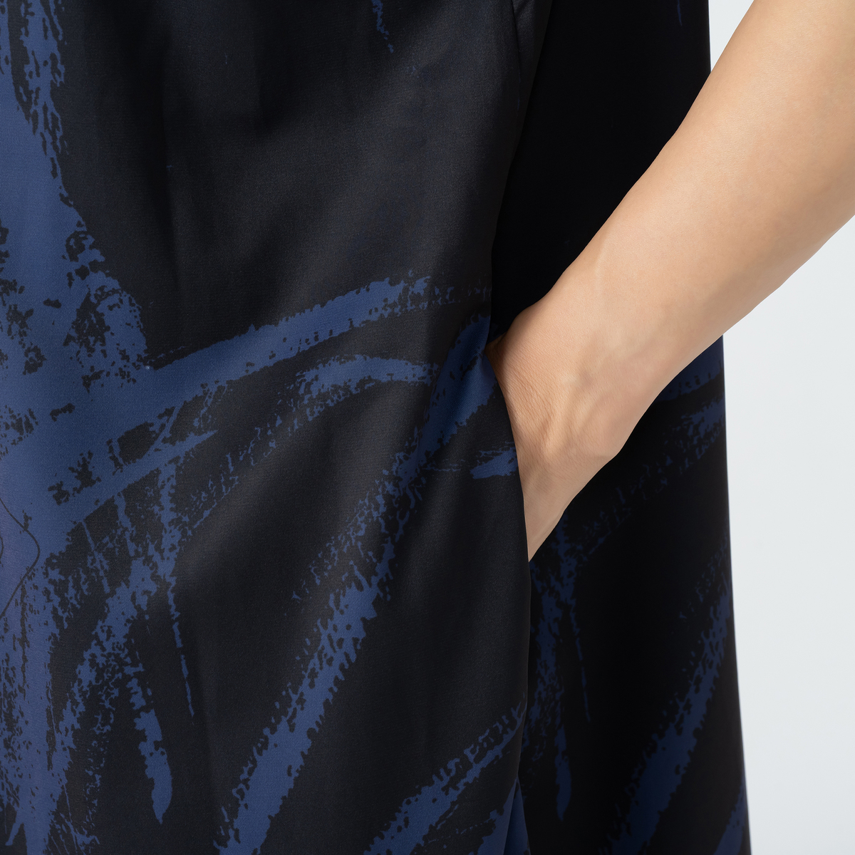 シックな線画プリントを使ったジャンパースカート。ポップなモダンアート感を意識して、プリントの中にモーンマジロゴのM/O/R/N/M/A/G/I/Eの英文字を入れました*。シックな中にも遊び心あるデザインです