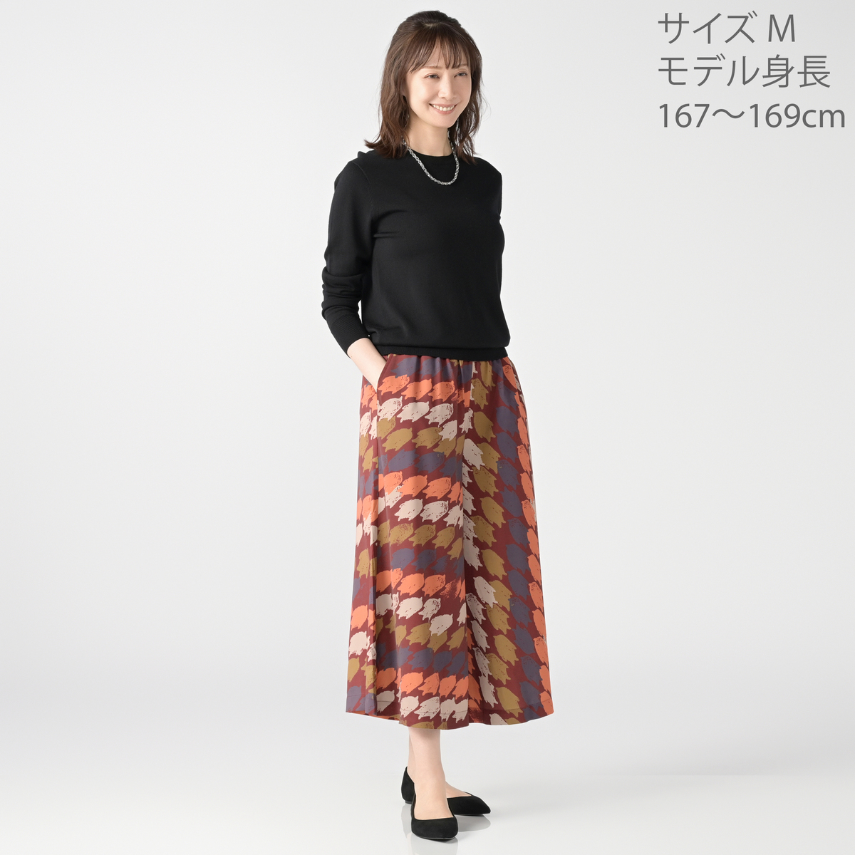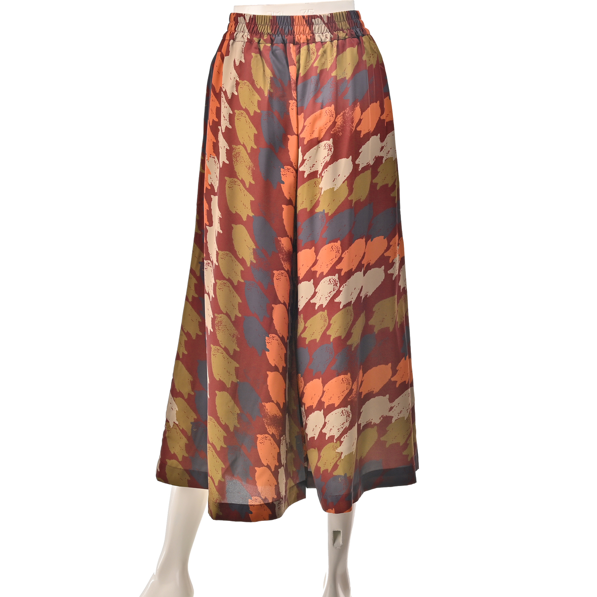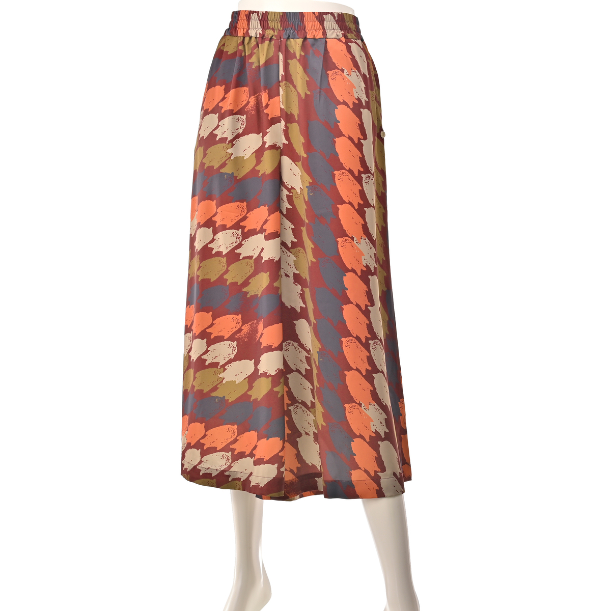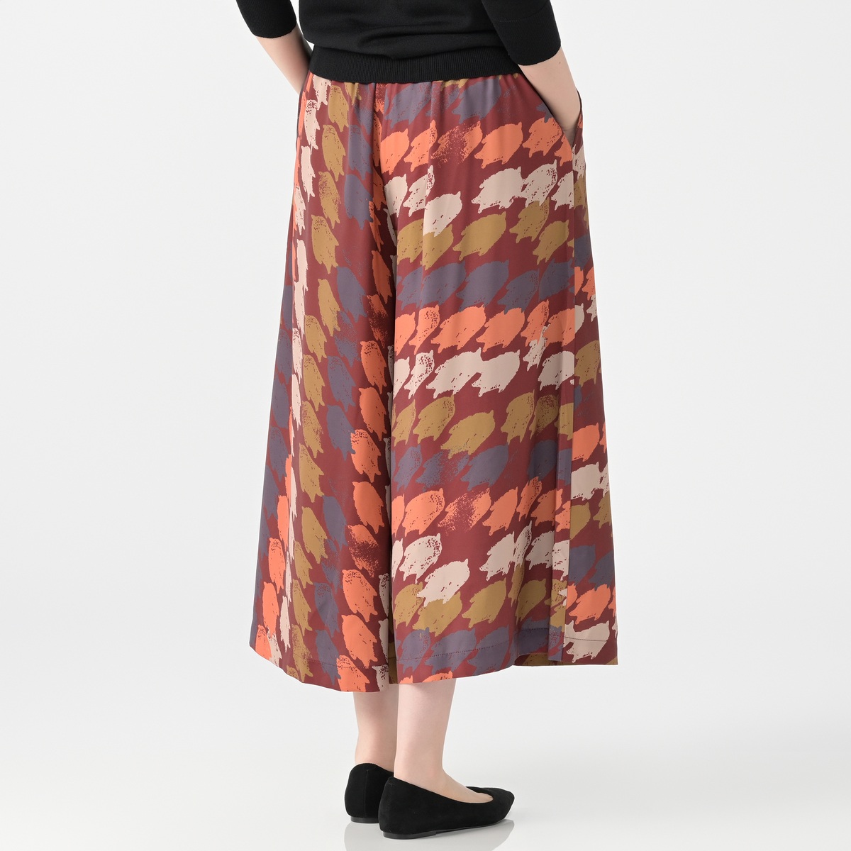 ポリエステルデシン素材で、軽やかでキレイめな雰囲気に。スカートのようなシルエットで、パンツが苦手な方にもおすすめです。ウエストは総ゴム仕様で、両脇には便利なポケットが付いています