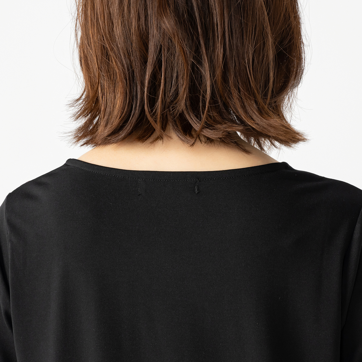 ビジュー付きの襟元がお顔まわりを品良く演出。アクセサリーなしでも首元がきれいに映え、忙しい朝もさっと着るだけで上品な印象を与えます