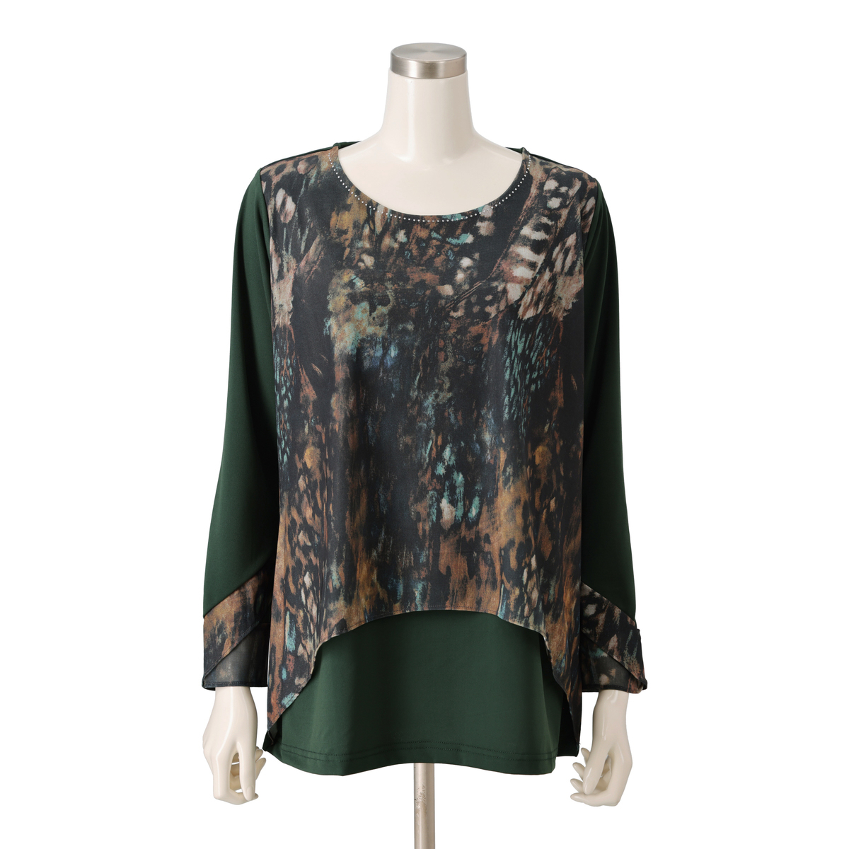 No. 745997 Monte Milano プリントシフォン長袖カットソープルオーバー
