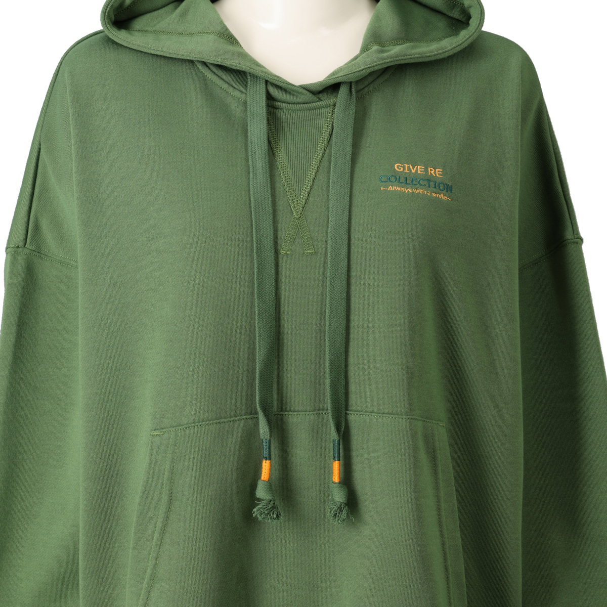 左胸に配色カラーのロゴ刺繍を施したパーカー。大きめフードとフロントのカンガルーポケットがアクセントに。ドロップショルダーのこなれたゆったりシルエットで、カジュアルに着こなしていただけます