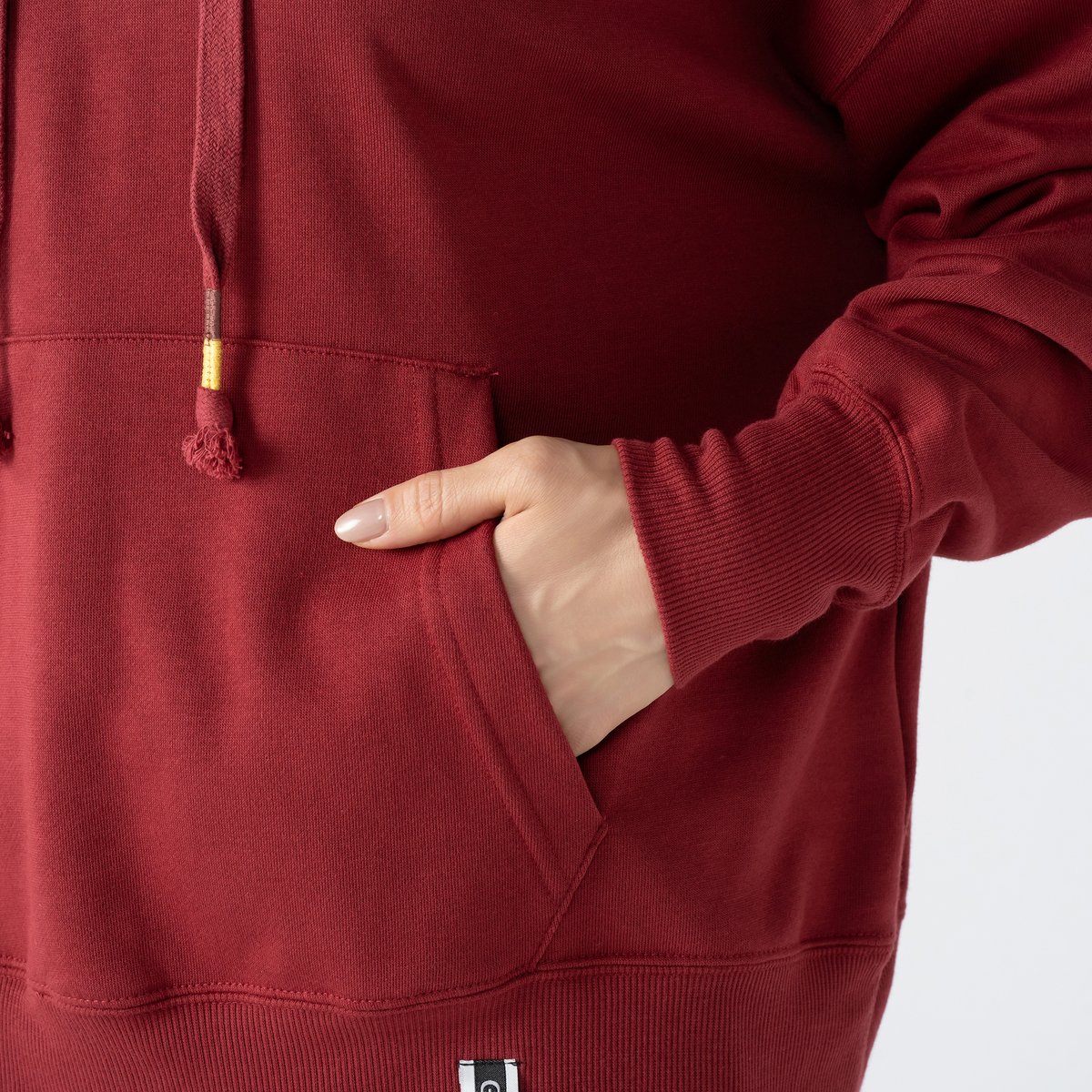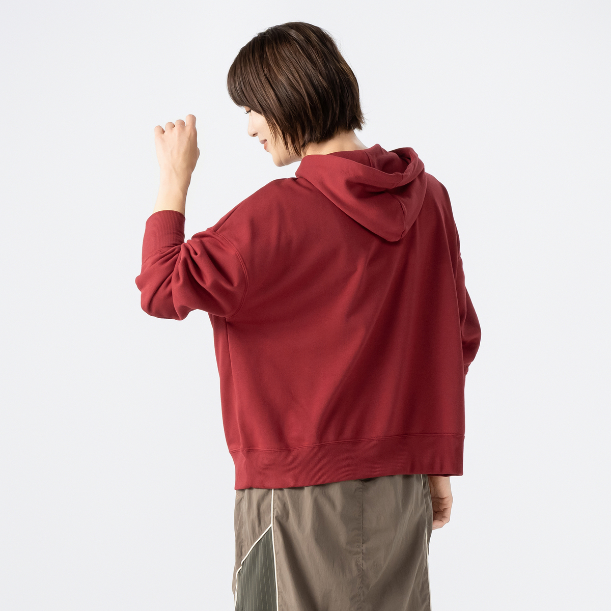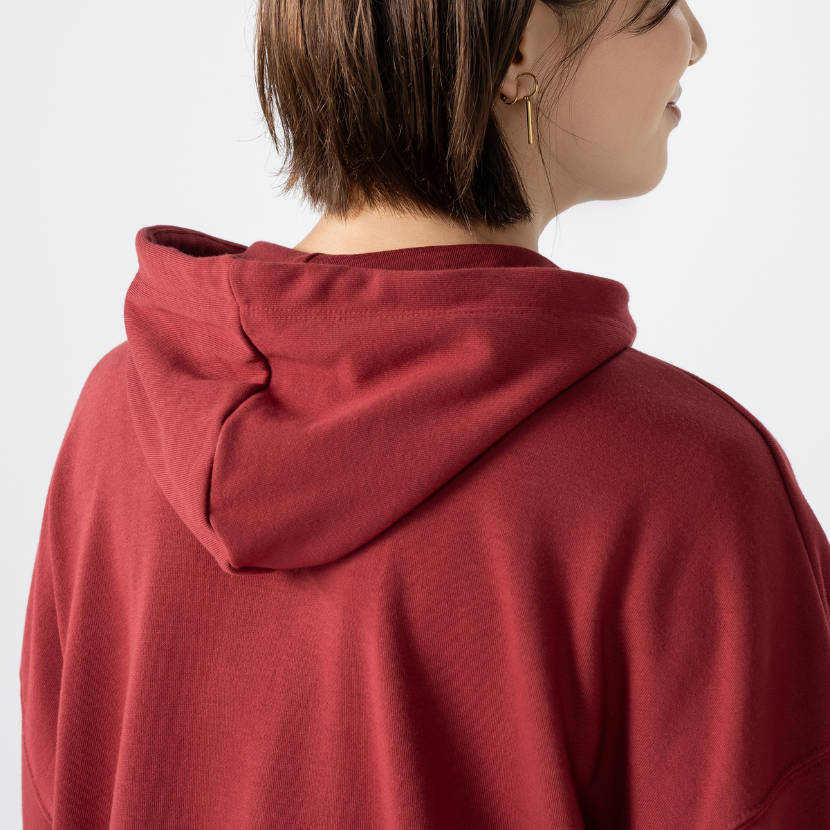 柔らかな風合いが特徴の程よい肉感の裏毛素材を使用。アウターを羽織ってもモコモコしづらいやや薄手のライトなスウェット生地なので、レイヤードにはもちろん、季節の変わり目に1枚でも着やすい素材感です