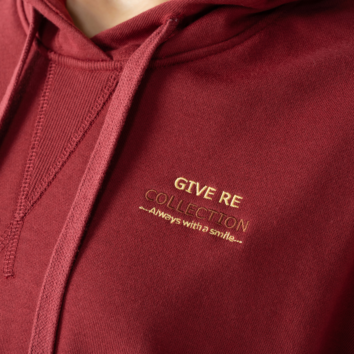 いいお色です。紐先のイエローもいい仕事をしています。薄手の裏毛なので、重ね着も楽しみたいと思います。ギブリと出会って増えたのが、パンツ着用と見せる重ね着です。