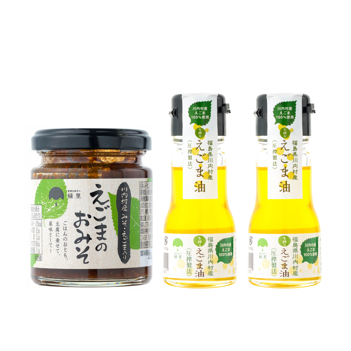 [アレルギー物質特定原材料8品目] 小麦 [セット内容] ・福島県川内村産えごまのおみそ100g ・福島県川内村産生絞りえごま油小30g×2 [保存方法] <福島県川内村産えごまのおみそ> 開封前・開封後:直射日光高温多湿を避け、常温で保存 <福島県川内村産生絞りえごま油小> 開封前:直射日光を避け、常温で保存してください 開封後:開封後は冷蔵庫で保管し、お早めにお召し上がりください [お召し上がり方] <えごまのおみそ> ご飯のおともに 豆腐、大根、揚げナスの薬味として。スティック野菜にディップして。クリームチーズに添えて <生絞りえごま油> 毎朝食時にティースプーン1杯をそのままお召し上がりください。サラダのドレッシングに。納豆の薬味に。カレーやスープに混ぜて。ヨーグルトにかけて [原料原産地] えごまのおみそ:みそ(大豆を含む、国内製造) 生絞りえごま油小:食用えごま(福島県川内村) [原産国] 日本 [原材料] 福島県川内村産えごまのおみそ: みそ(大豆を含む、国内製造)、砂糖、発酵調味料、えごま、和風調味料(米発酵調味料、水飴、魚介エキス、その他)(小麦、さばを含む)、食用油(大豆油、なたね油)/ 調味料(アミノ酸等) 福島県川内村産生絞りえごま油小: 食用えごま(福島県川内村)