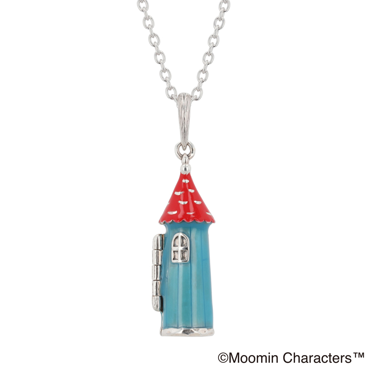 ムーミン80周年記念したアイテム。ムーミン一家が暮らす青い円柱状の建物、ムーミンやしきをモチーフにしたロケットペンダントです。お客さんが大勢来るために増築し3階建てに。ムーミンパパは自分の手で建てた丈夫なこの家が大変誇りです