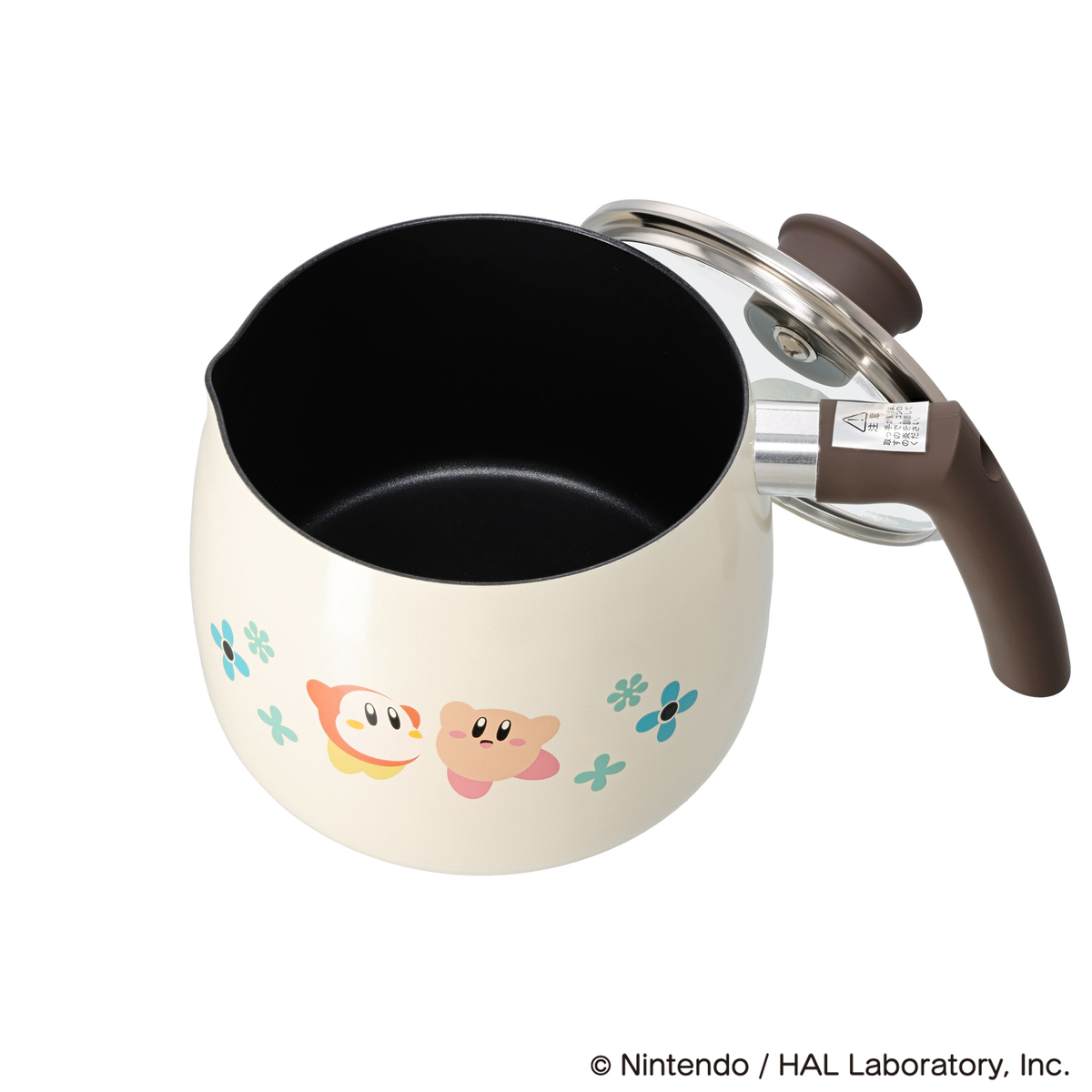 本体側面に星のカービィのキャラクターたちをあしらったマルチクックパン。ちょっとした茹でもの、煮物、スープにもちょうどいい小型サイズです