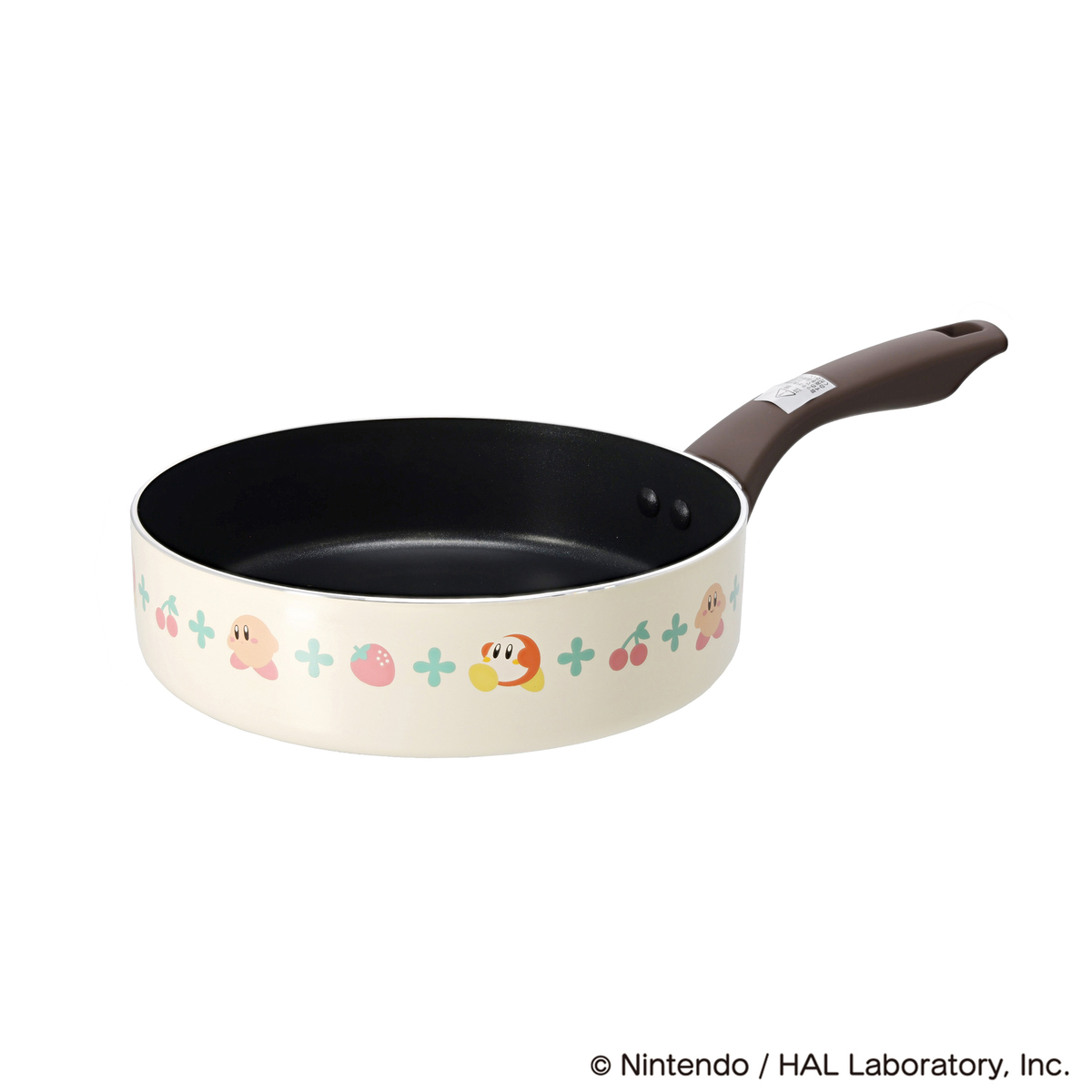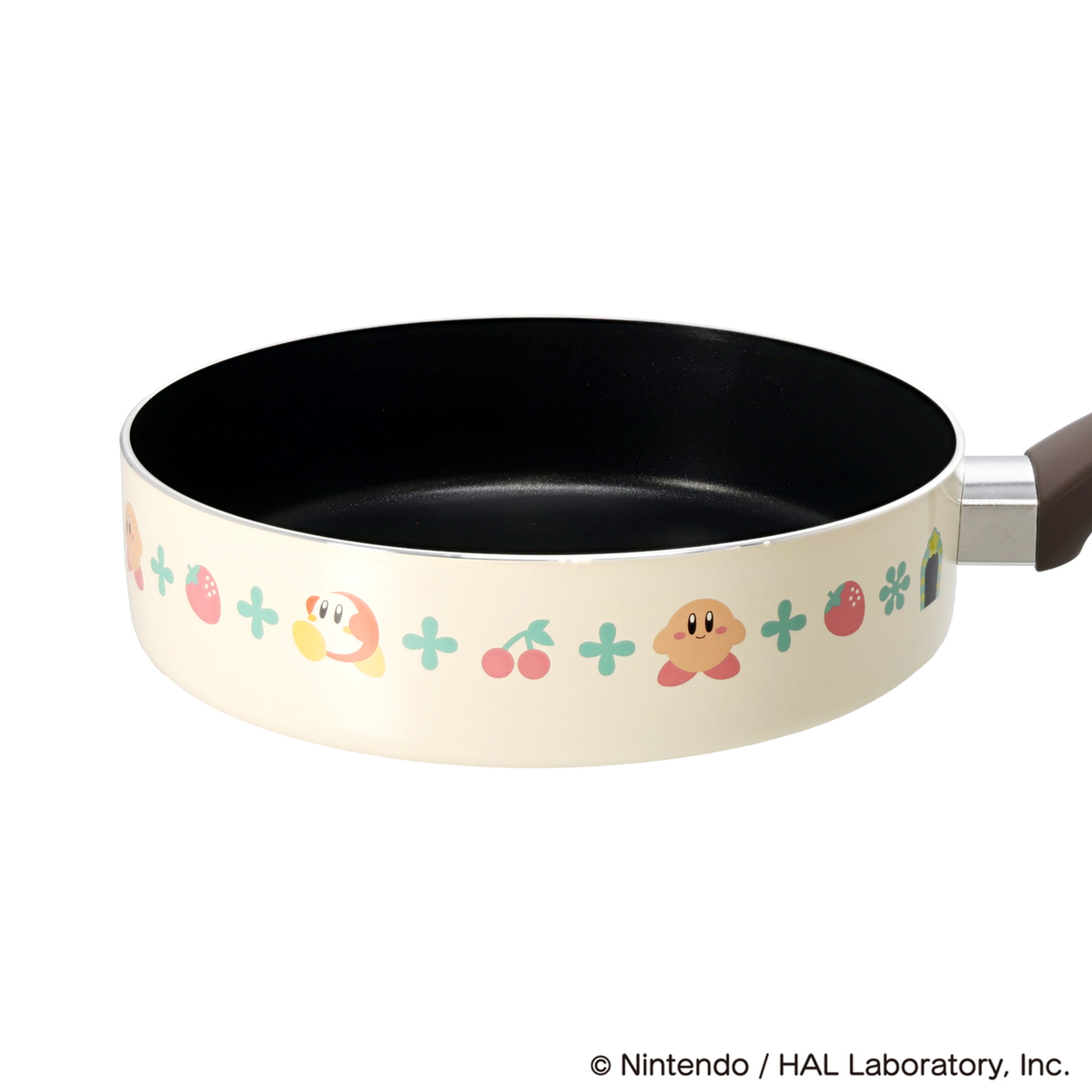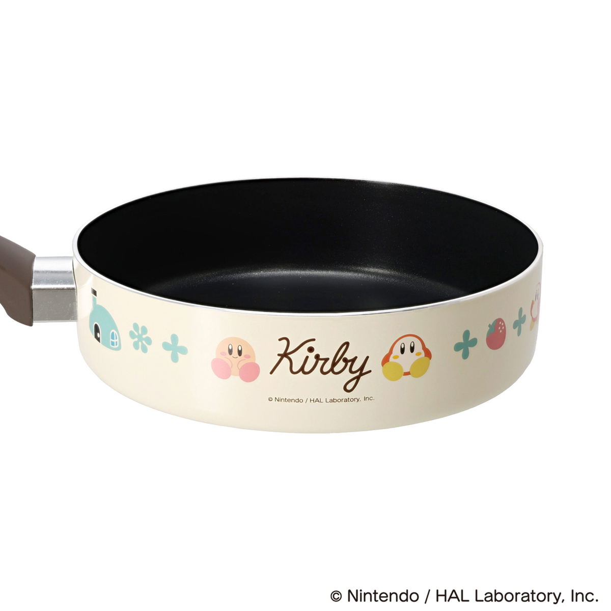 星のカービィのキャラクターたちが本体側面にデザインされたフライパンです。愛らしいデザインが、キッチンに遊び心をプラスします