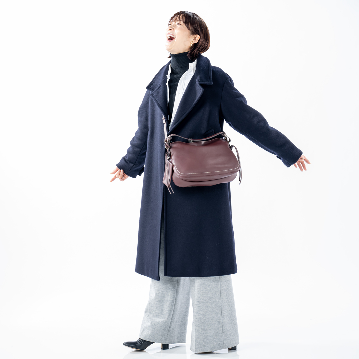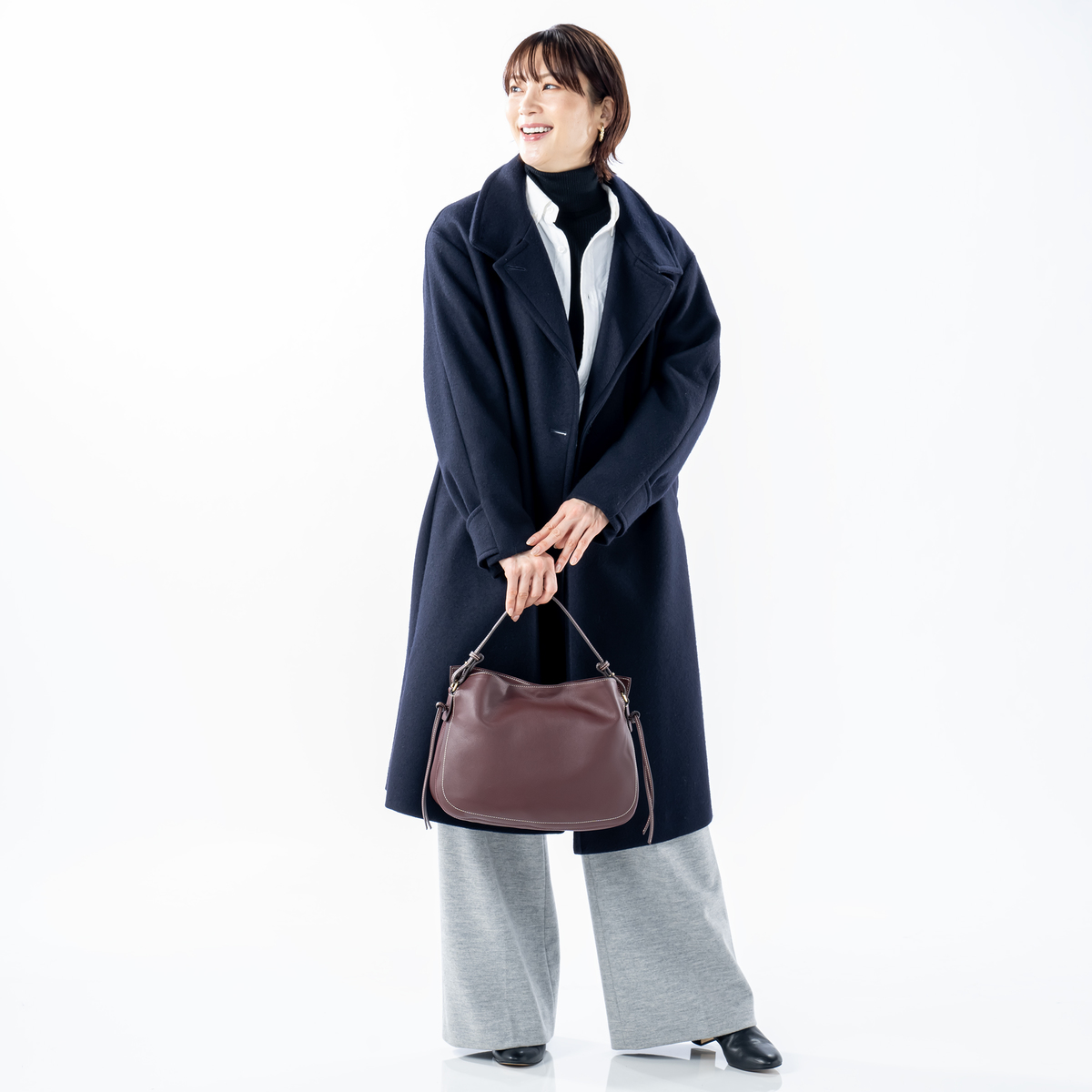 ハンドバッグ・ショルダーバッグ・斜めがけの3通りで使え、通勤やお出かけ、旅行までさまざまなシーンで活躍します。内側には仕切り兼ファスナーポケットやオープンポケットがあり、細かな荷物もすっきり整理できます