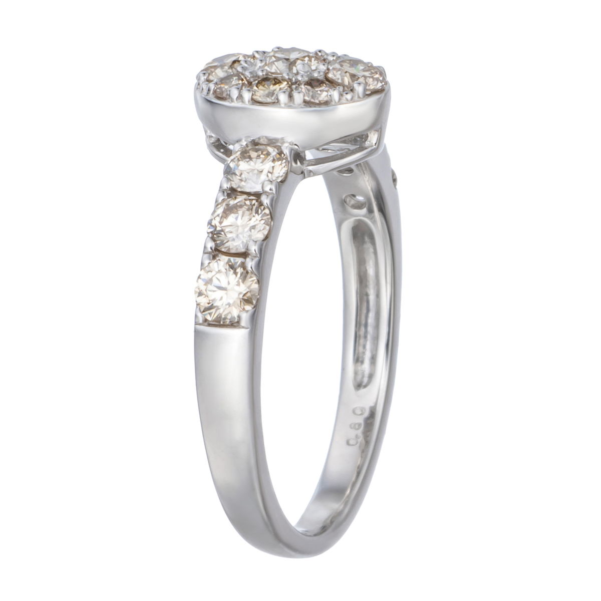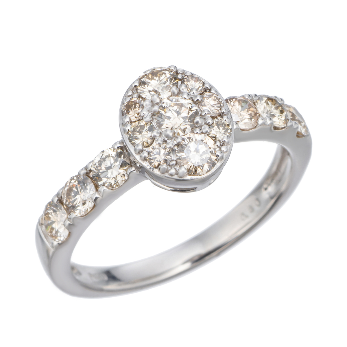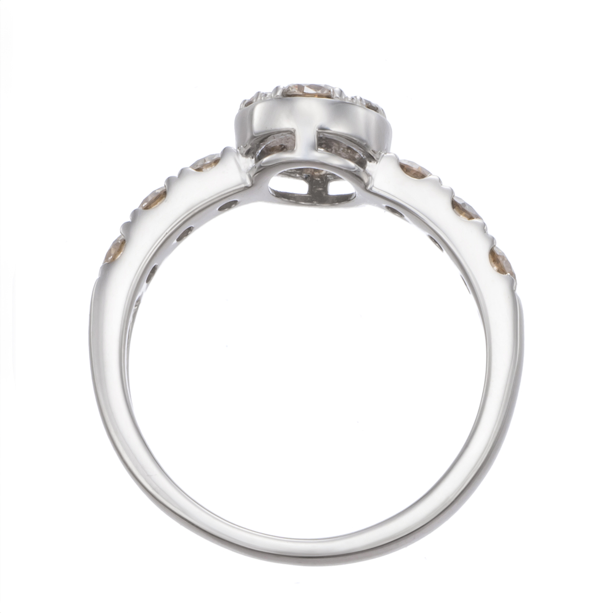 テリにこだわったシャンパンカラーダイヤモンドを使用したリング。日光のもとではもちろん、絞ったライトのもとでも美しく輝きます