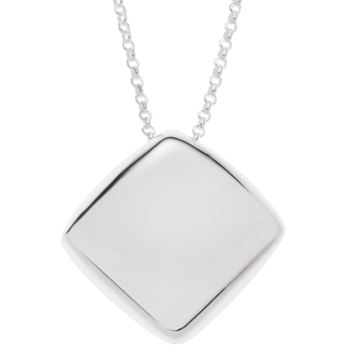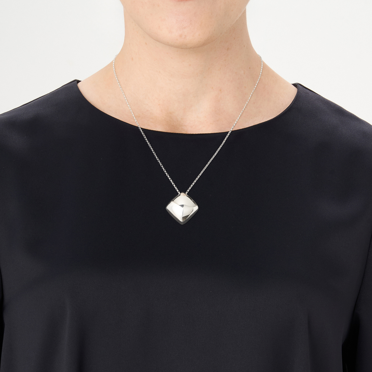 銀の光の輝きの意味を持つ"Lumina di Argento (ルミナ・ディ・アルジェント)"。膨らみのあるスクエアモチーフが美しいペンダントです。磨き上げられた鏡面が艶やかな煌めきを放ちます